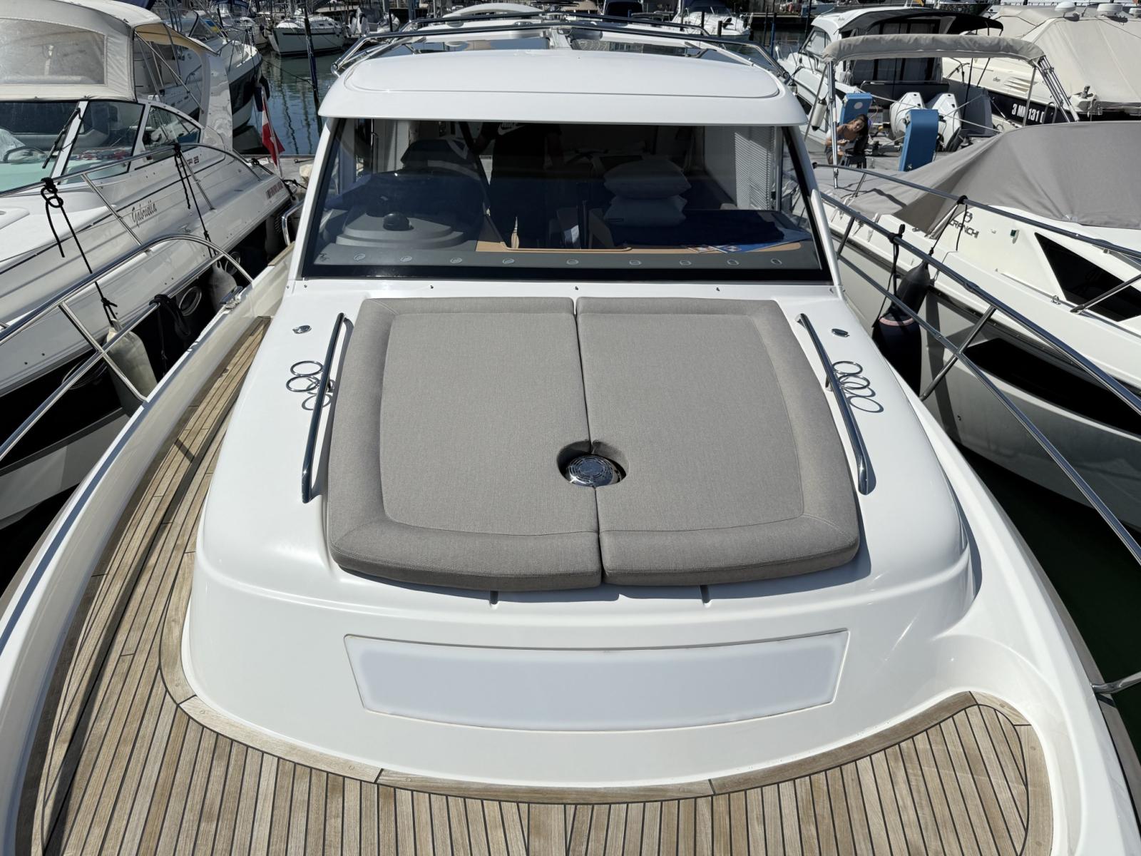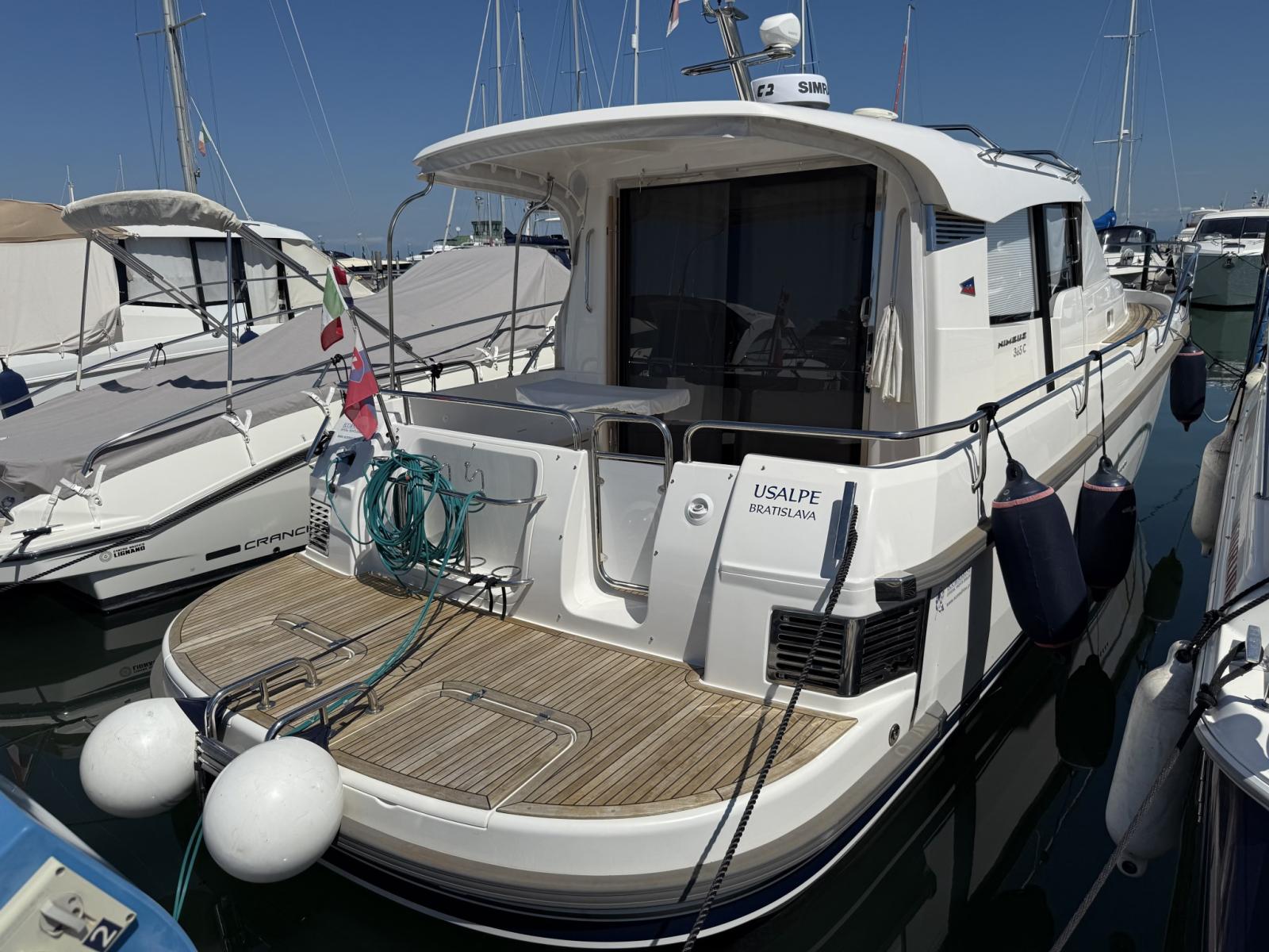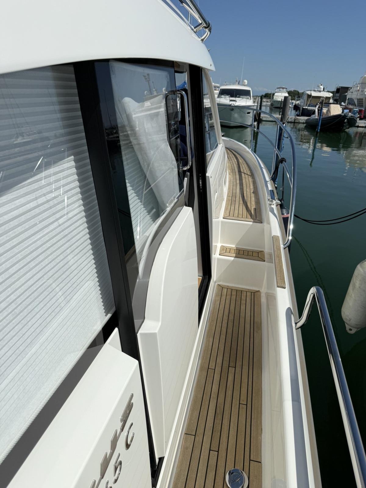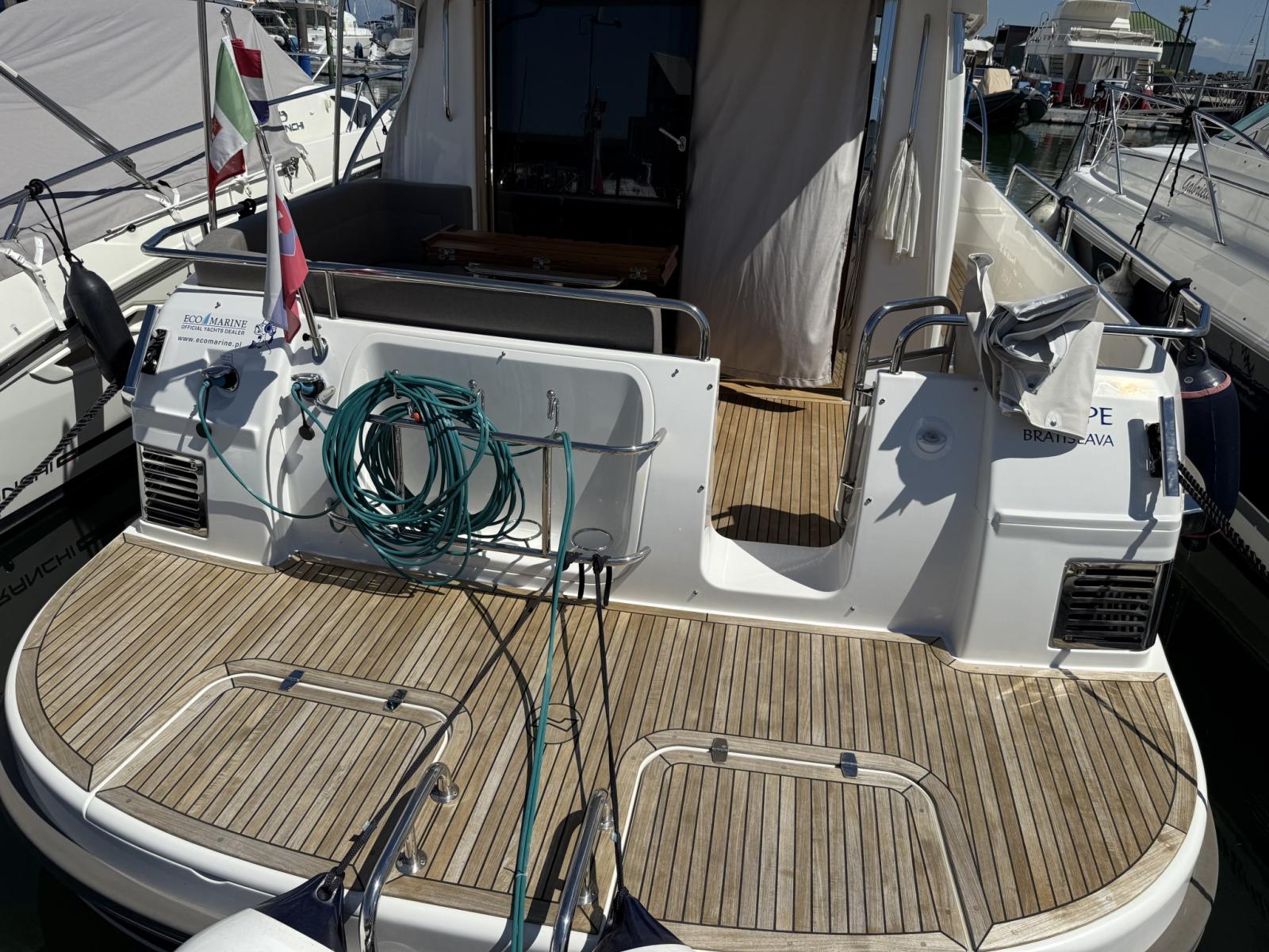 Engine Alarm, Bilge Alarm, Water pressure pump, Deck Shower, Directional Spotlight, Electric Flaps (Humphree), Flaps Indicators, Courtesy Lights, Platform, Automatic Bilge Pump, Teak deck, Side door, Teak Cockpit, Shorepower connector, Electric Windlass, swimming ladder, cockpit table, Horn.