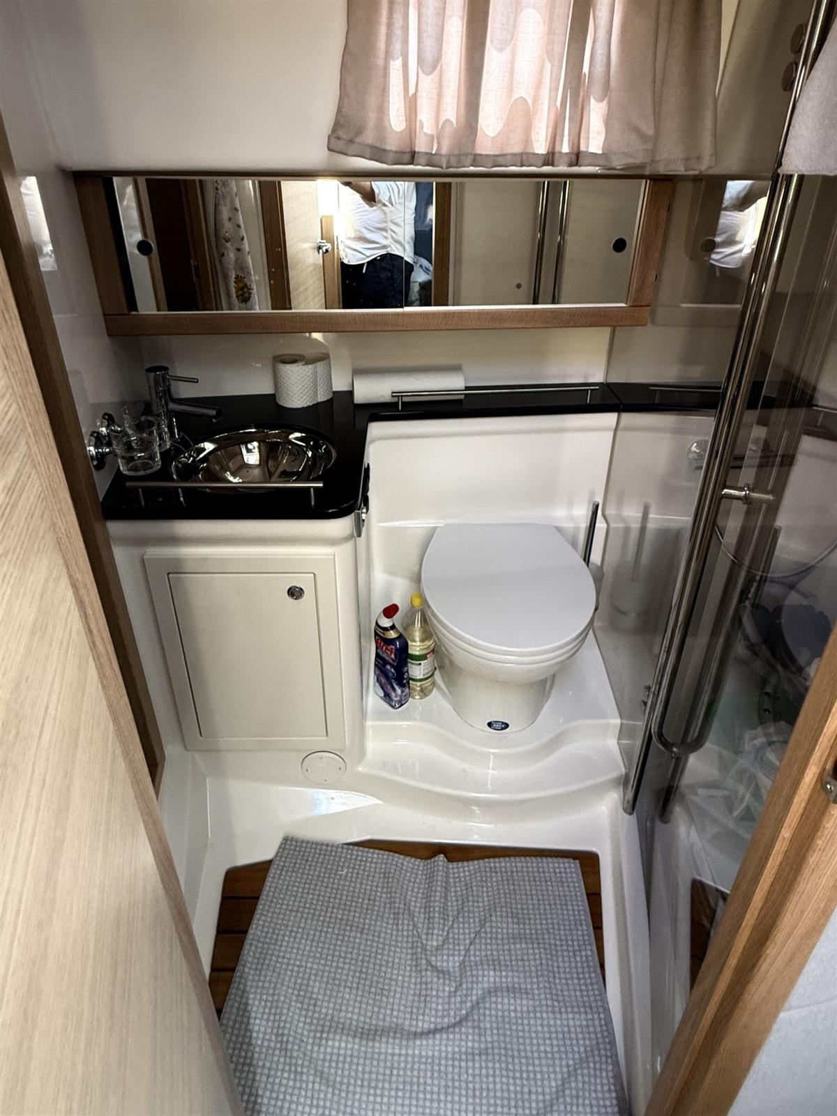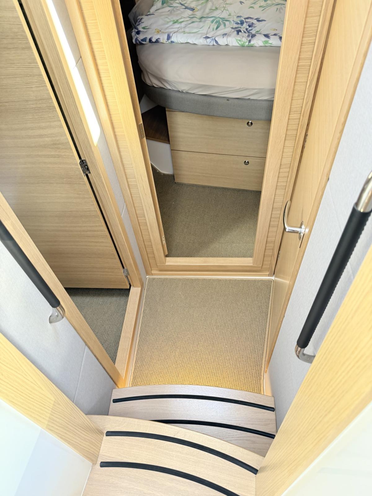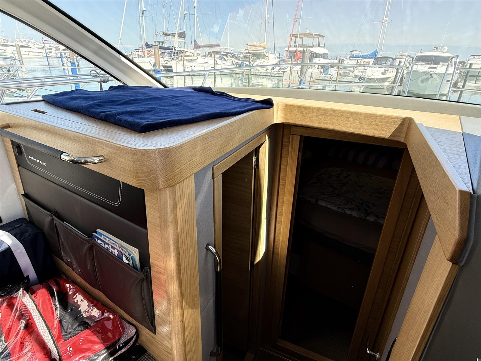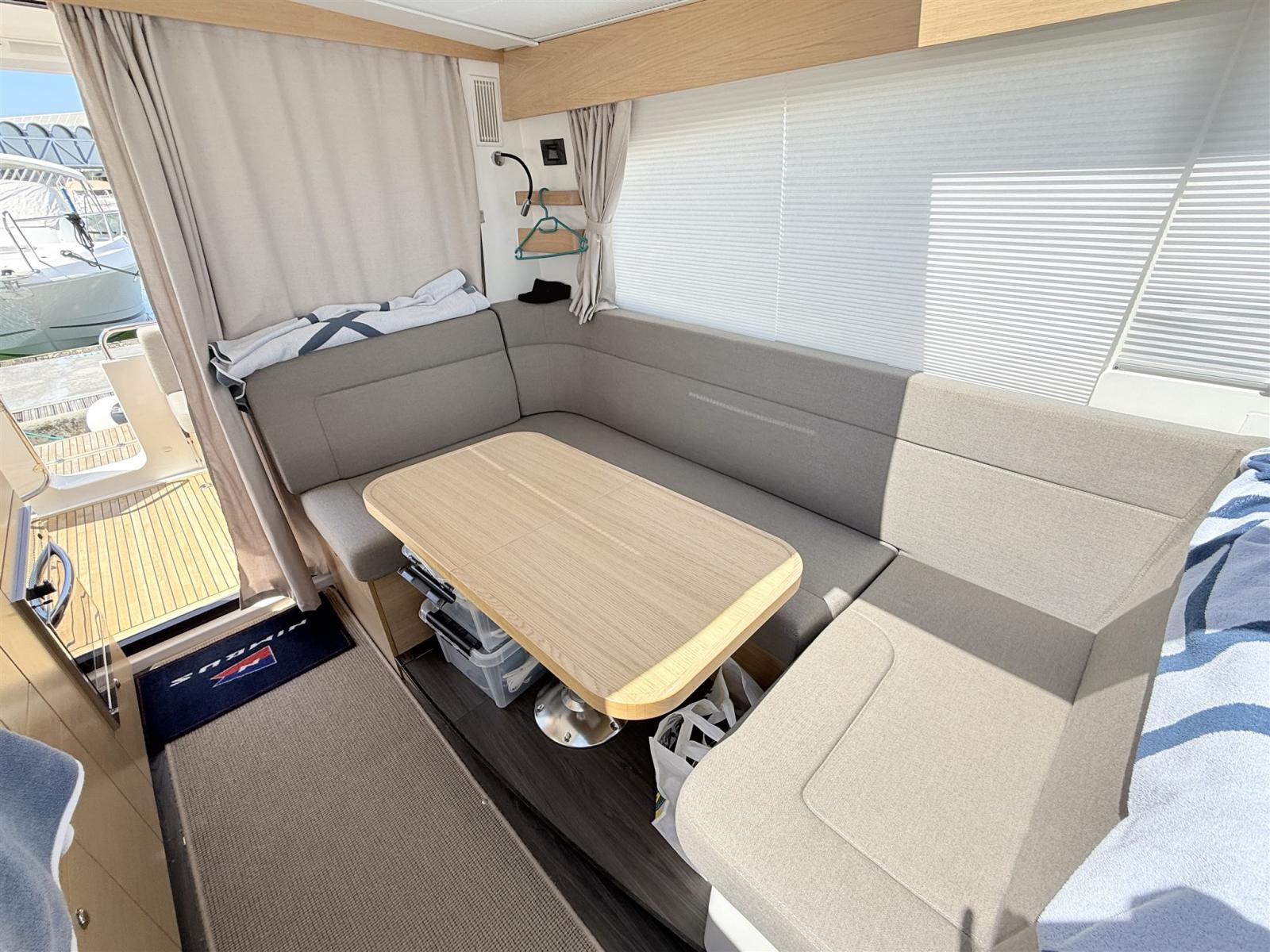 Engine Alarm, Bilge Alarm, Water pressure pump, Deck Shower, Directional Spotlight, Electric Flaps (Humphree), Flaps Indicators, Courtesy Lights, Platform, Automatic Bilge Pump, Teak deck, Side door, Teak Cockpit, Shorepower connector, Electric Windlass, swimming ladder, cockpit table, Horn.