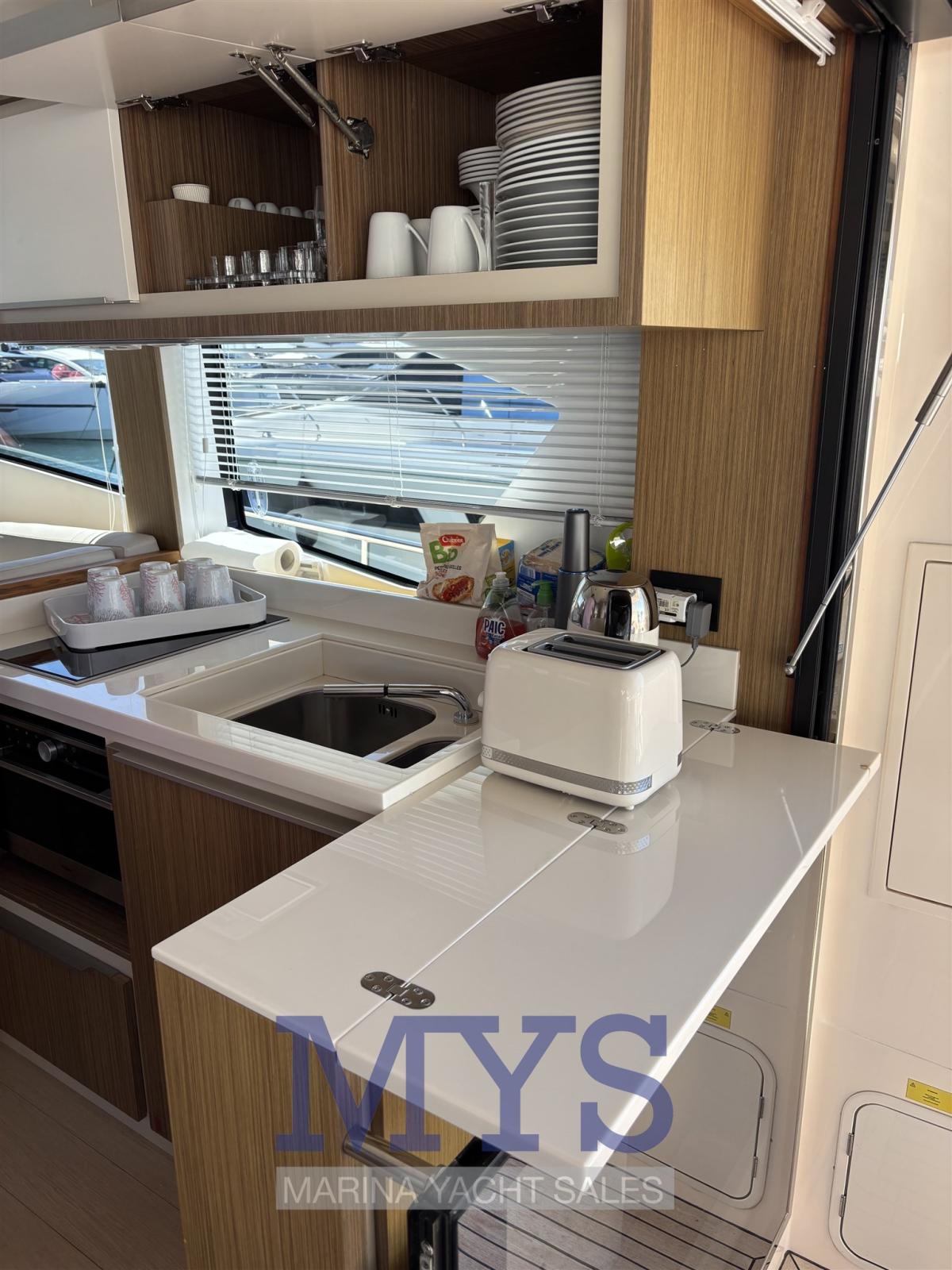 Galley, Deck Refrigerator, ICE Maker, Washer dryer, Dishwasher, Ceramic hot plate.