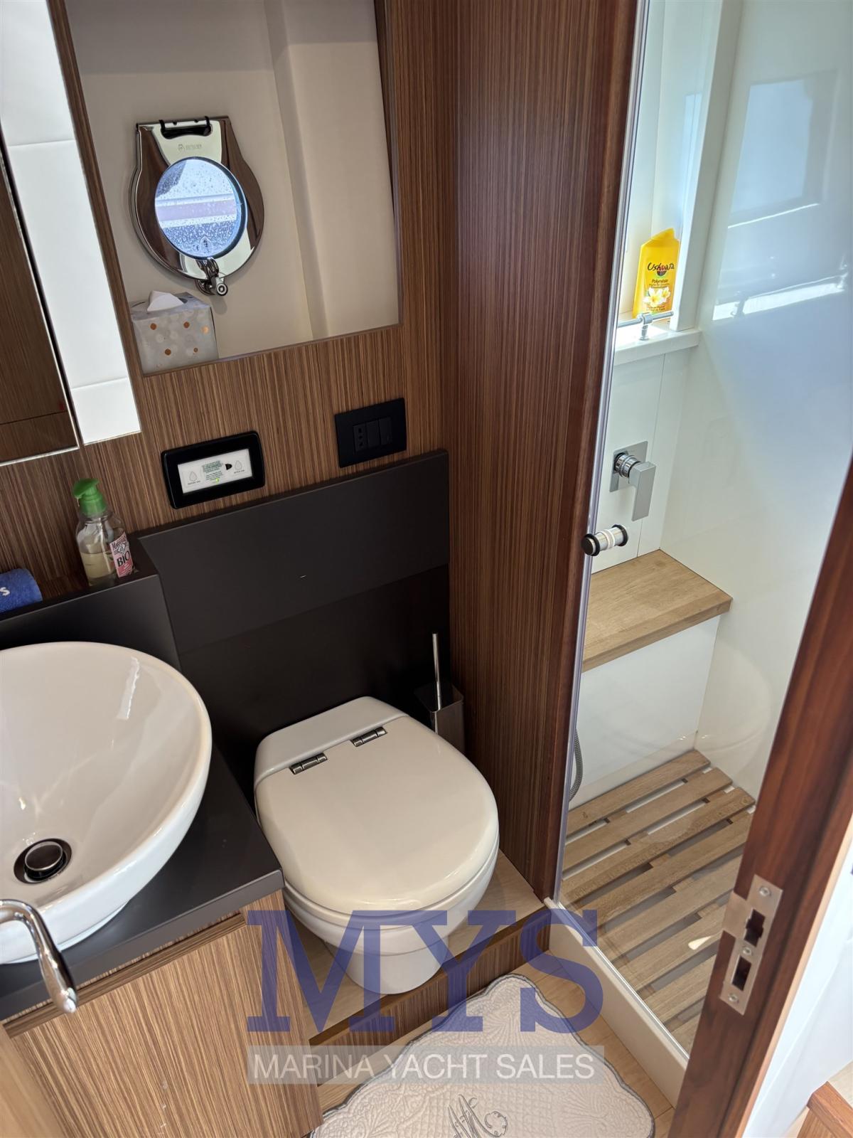 1 full-beam aft master double cabin with bathroom complete with sink, shower and electric marine toilet