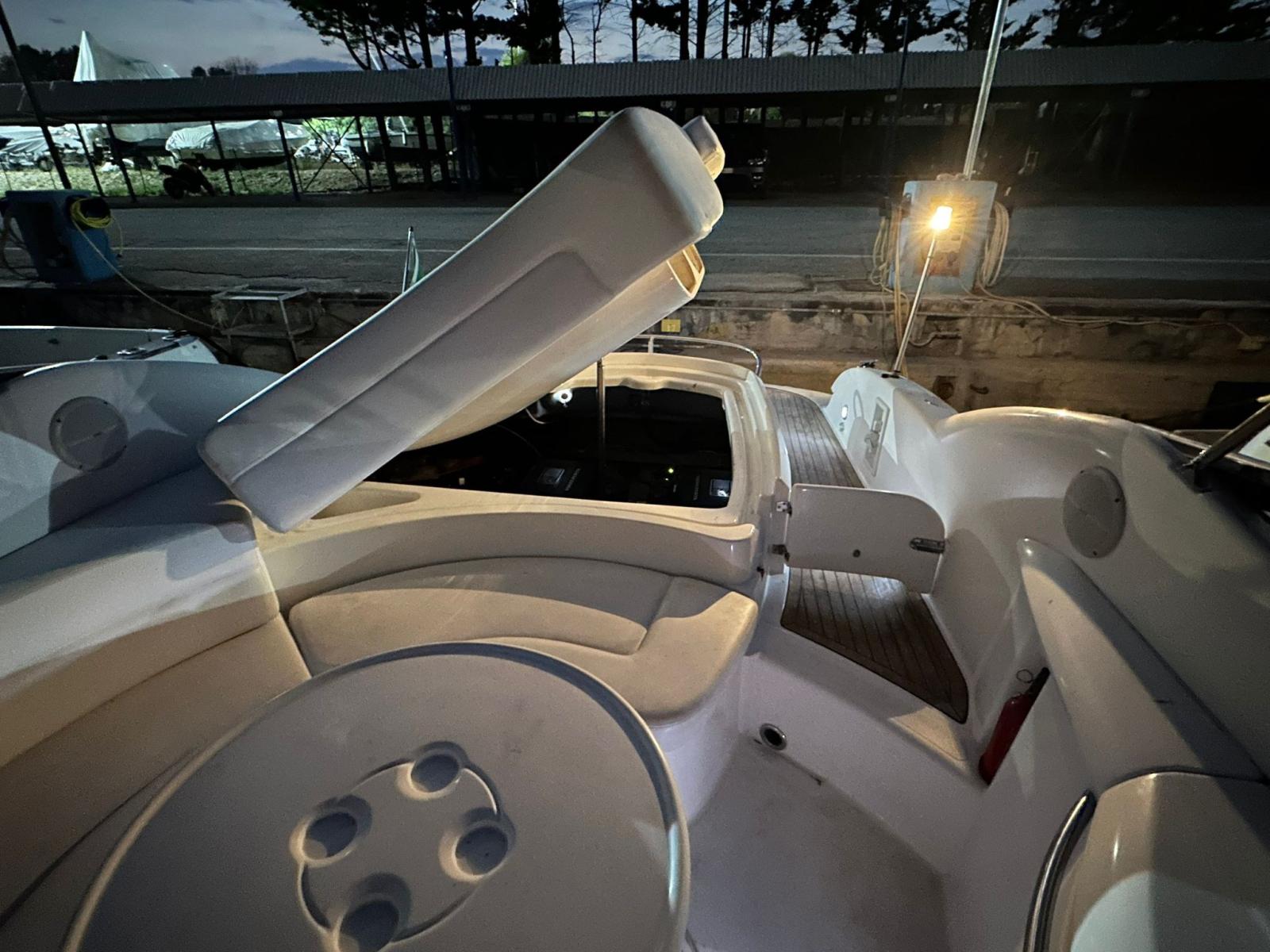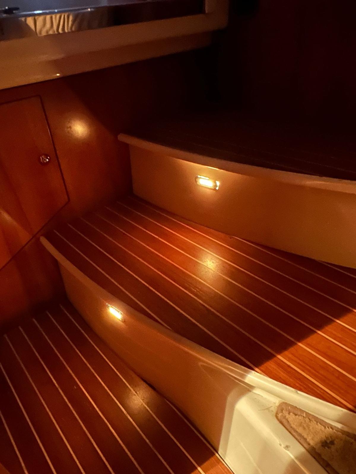 Hydraulic Flaps (N°2), Washbasin in the cockpit, Automatic Bilge Pump, Teak Cockpit, Shorepower connector, Electric Windlass, swimming ladder, cockpit table.