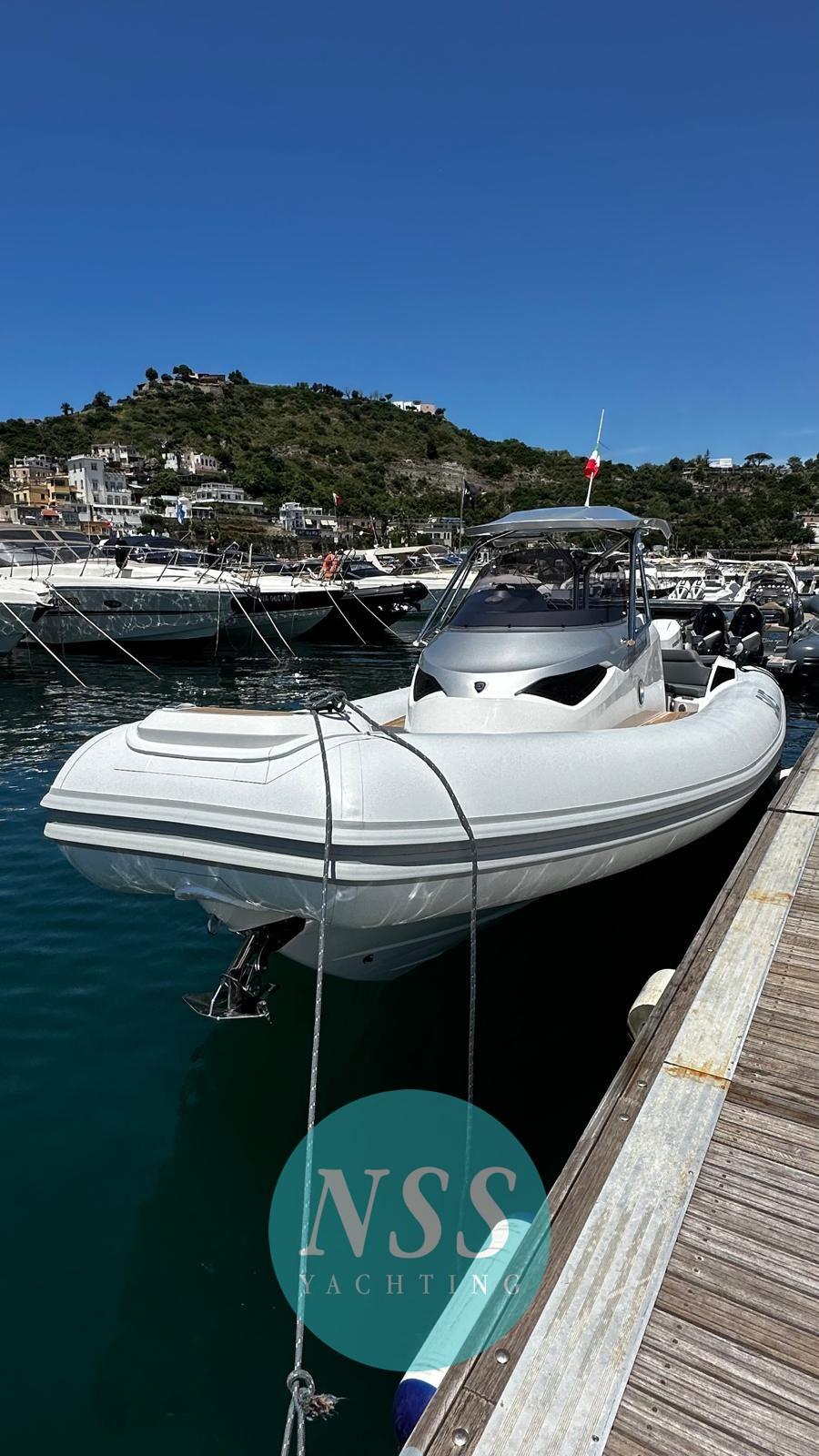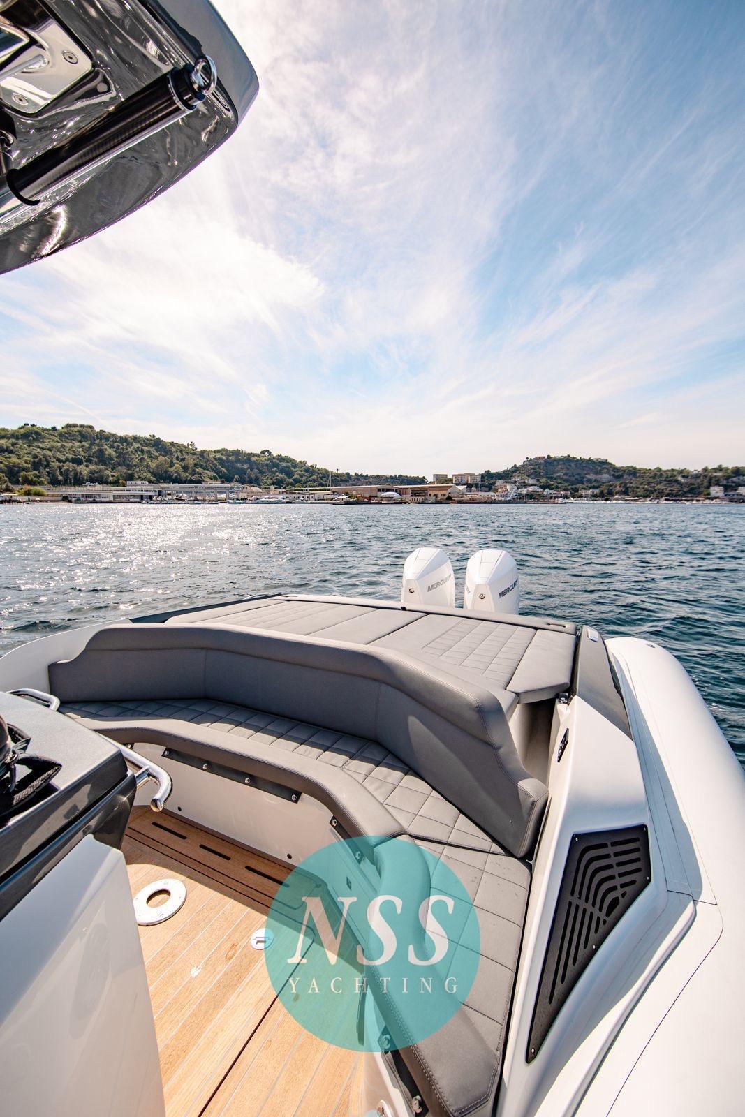 Specifically, this unit delivered in June 2023 is in impeccable condition: equipped with two 400hp Mercury with joysticks, it reaches a maximum speed of 48 knots. Elegant, complete with an excellent range of accessories, it is a splendid solution for those looking for a versatile boat, which stands out, but also functional and sporty.