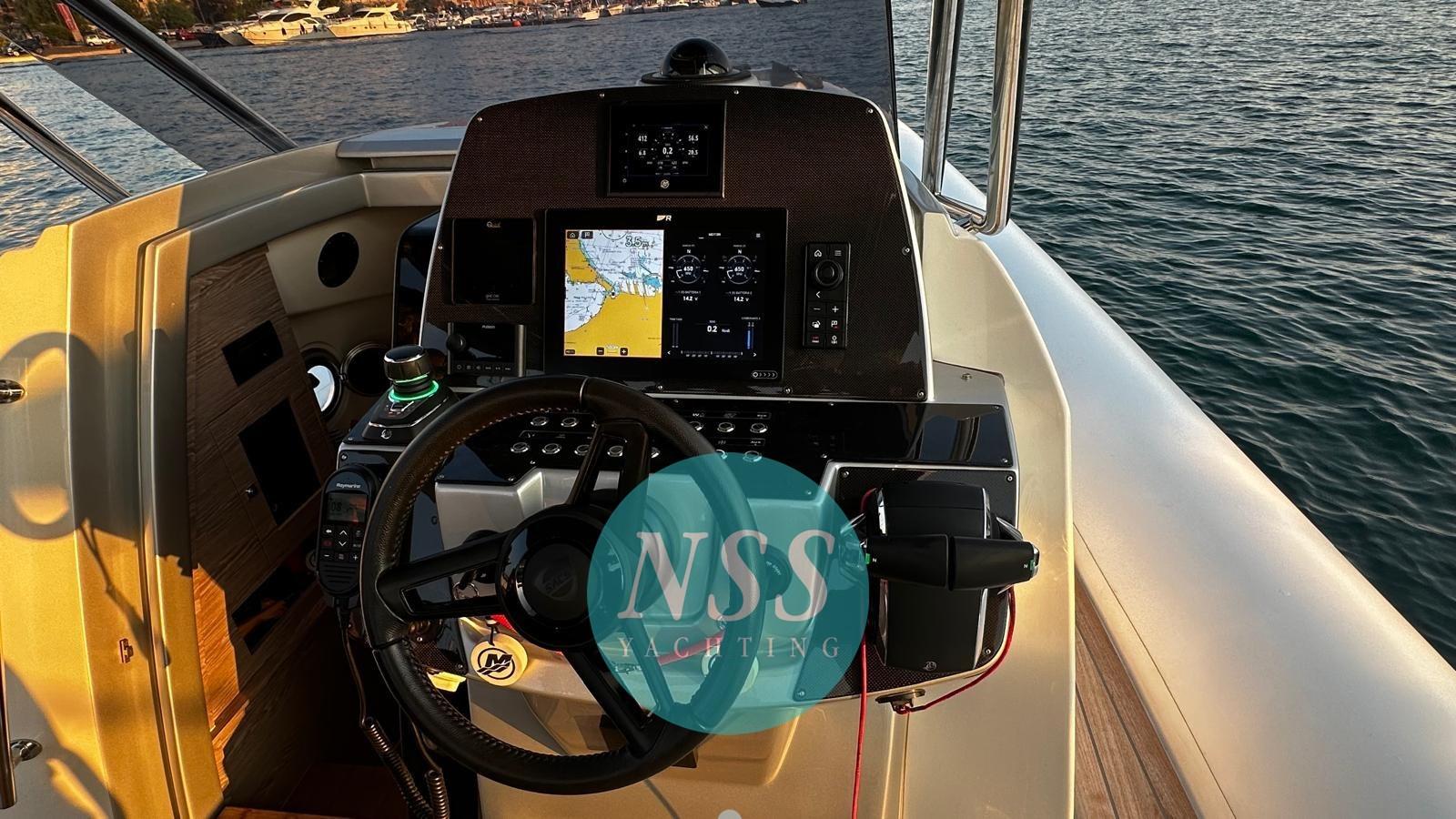Chain counter (Quick), DSC vhf (Raymarine RAY90), Joystick, Consumption monitor, Plotter with GPS antenna (Raymarine Axiom +12), Control panel, Co-pilot seat, Sonar.
