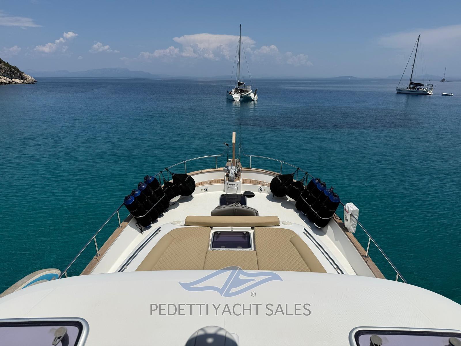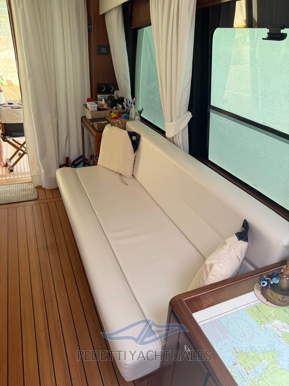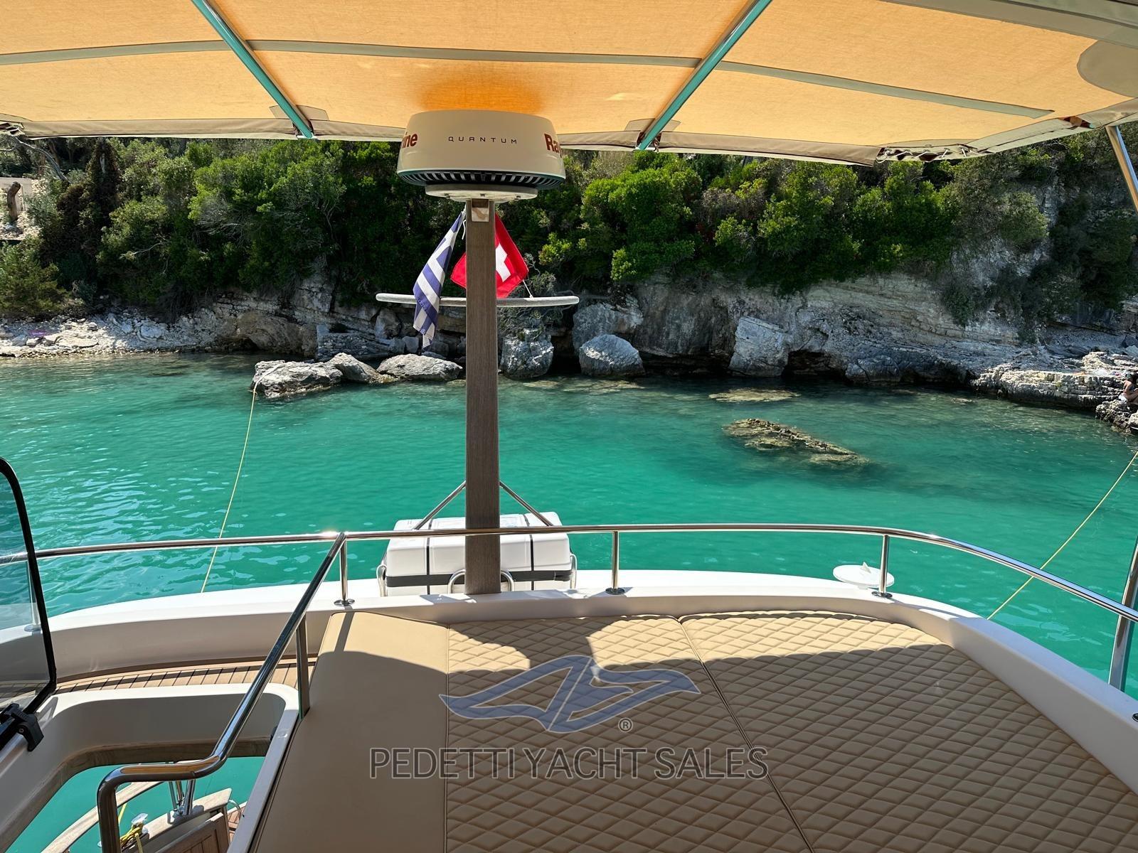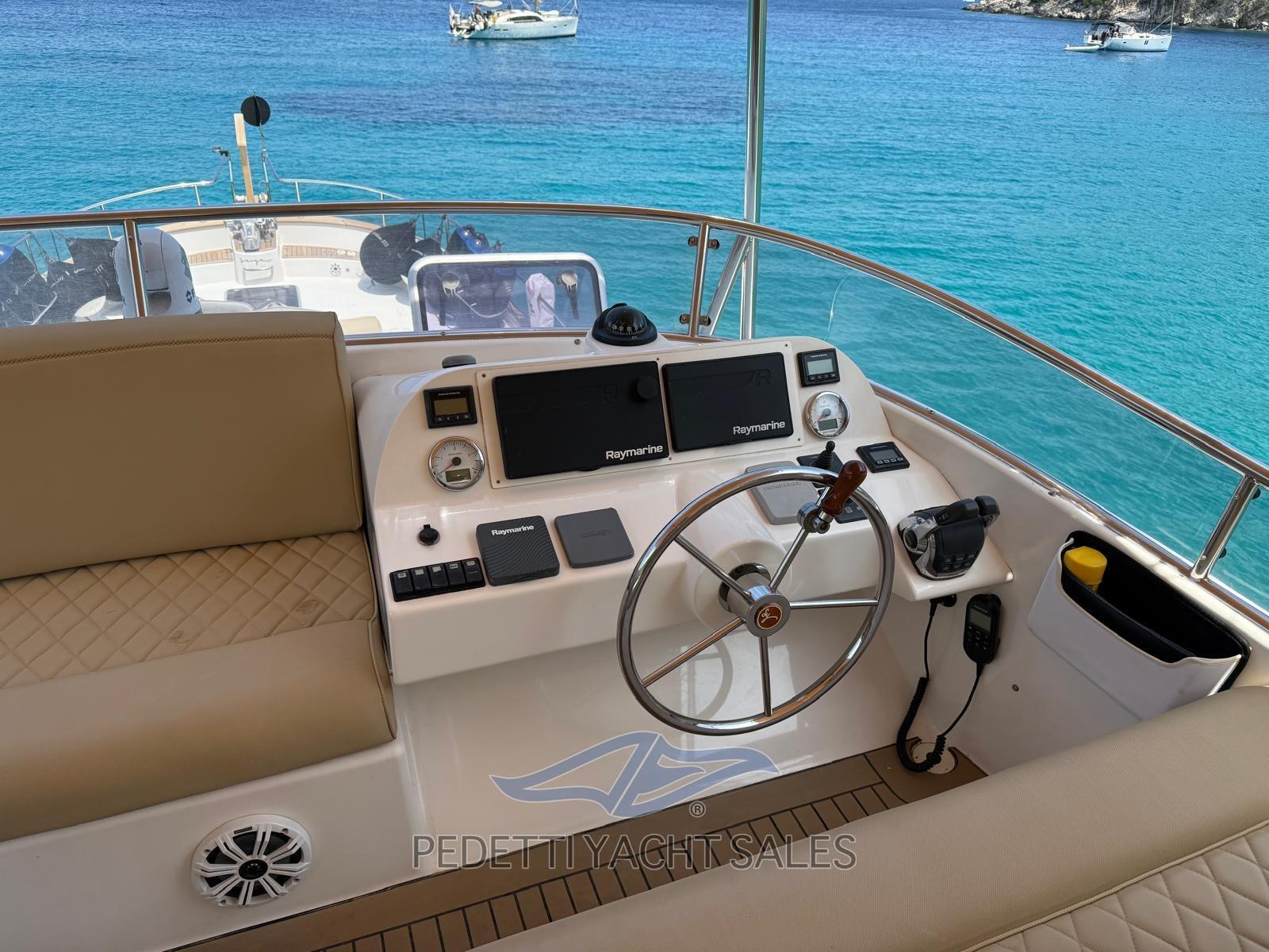 2xVolvo Penta 435 Hp with 1,400 engine hours, completely overhauled (including the generator) in 2025 with invoices available, Humphree electric dynamic stabilizers with two battery packs and 2 dedicated chargers, walkable solar panels on high-performance fly bridge, 140 lt/h watermaker, safety equipment, EPIRB, complete raymarine electronics with radar and wind instruments with double screen in the wheelhouse and on the flybridge, autopilot remote control, anchor chain meter counter, hydraulic stern platform, retractable hydraulic gangway, 10 Kw generator, bow and stern thruster, air conditioning, retractable TV in the saloon, stereo system with external and internal speakers with fader control, Yacht controller, cushions 10exterior new 2023, Custom fly bridge awning, bow awning, cockpit tenalines, FLIR stern and bow cameras with augmented reality, teak in the cockpit, natural teak exterior doors, grill cabinet with sink and refrigerator on the flybridge, table on the fly bridge, aft sofa in the cockpit, with lockers, Ultramarine steel anchor, underwater lights at the stern, 3 refrigerators (galley, saloon and fly bridge), cockpit freezer in the galley, dishwasher, washer-dryer, three-burner gas stove with pot holder, port water intake, fresh water outlet at the bow, new external shower with support, carvbonio fiber tender with 20hp outboard, Prospeed treatment of axles and propellers.