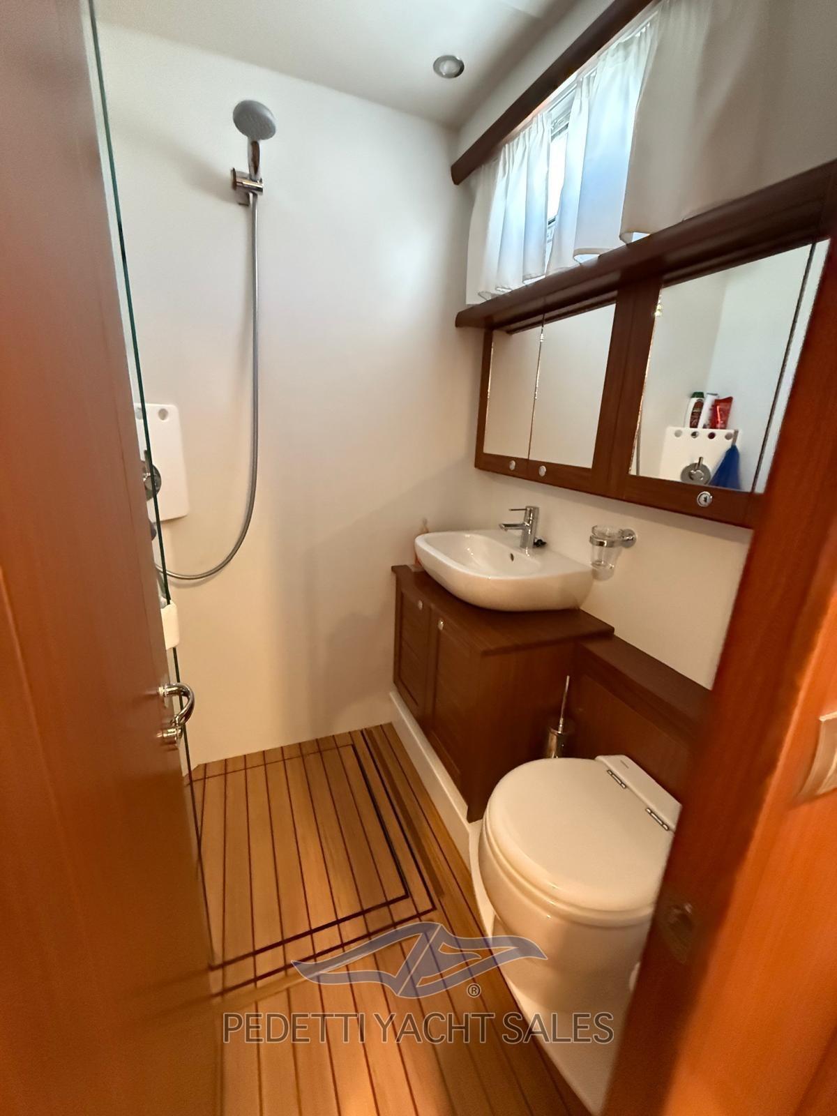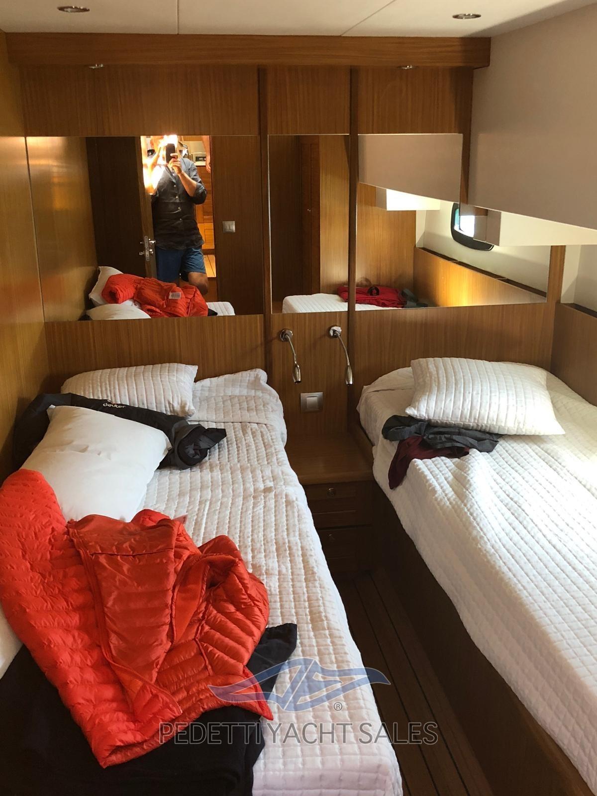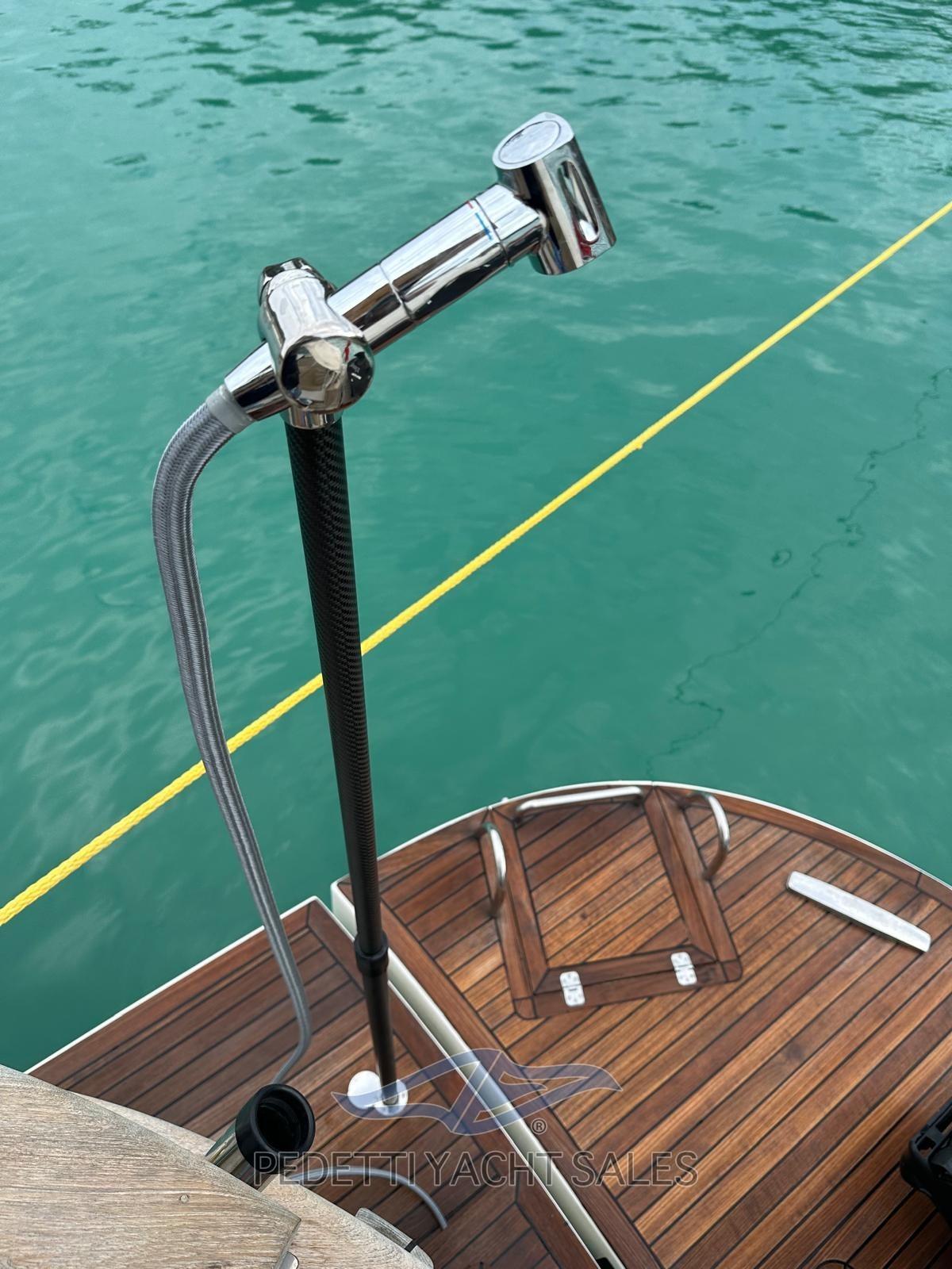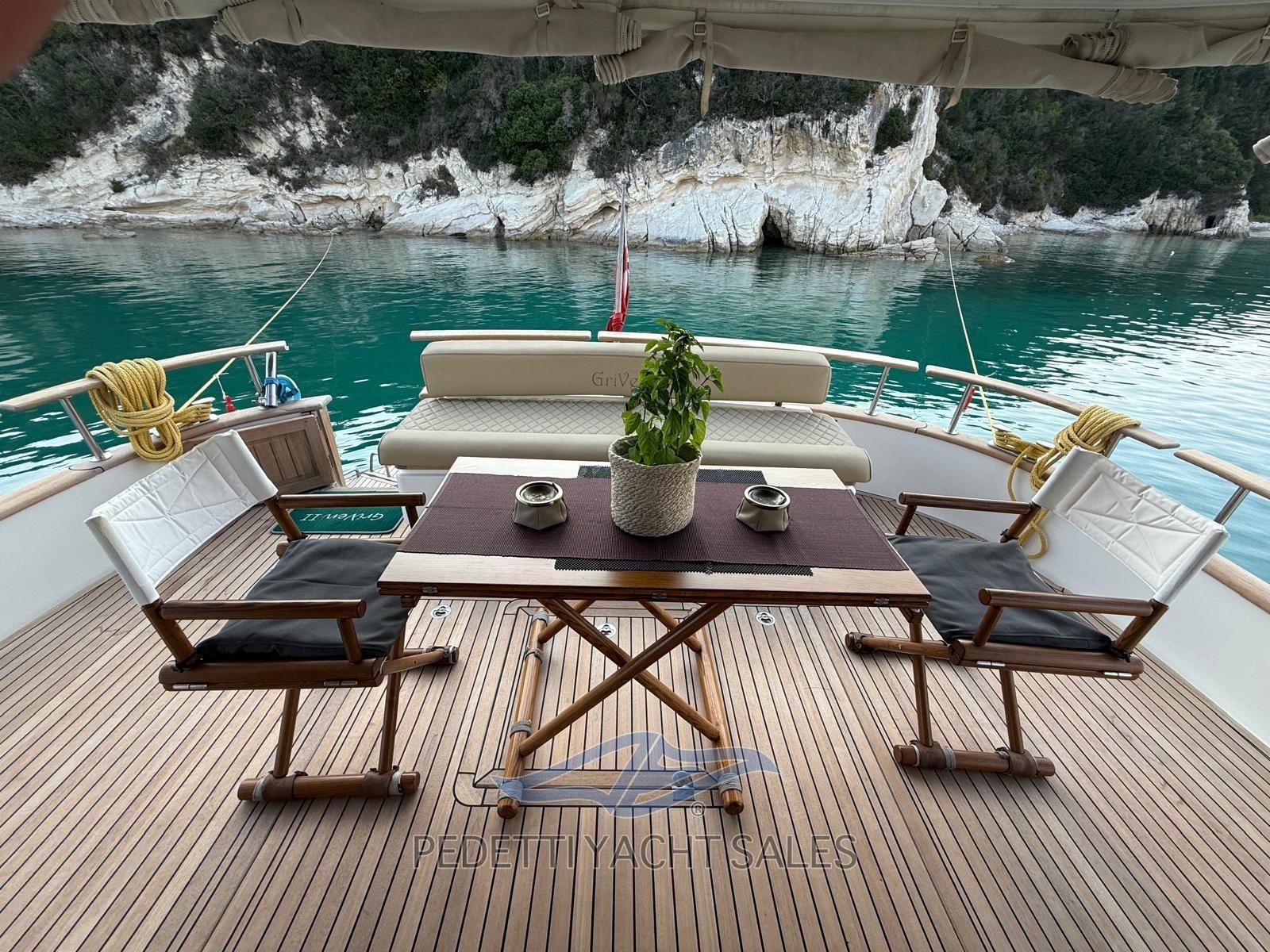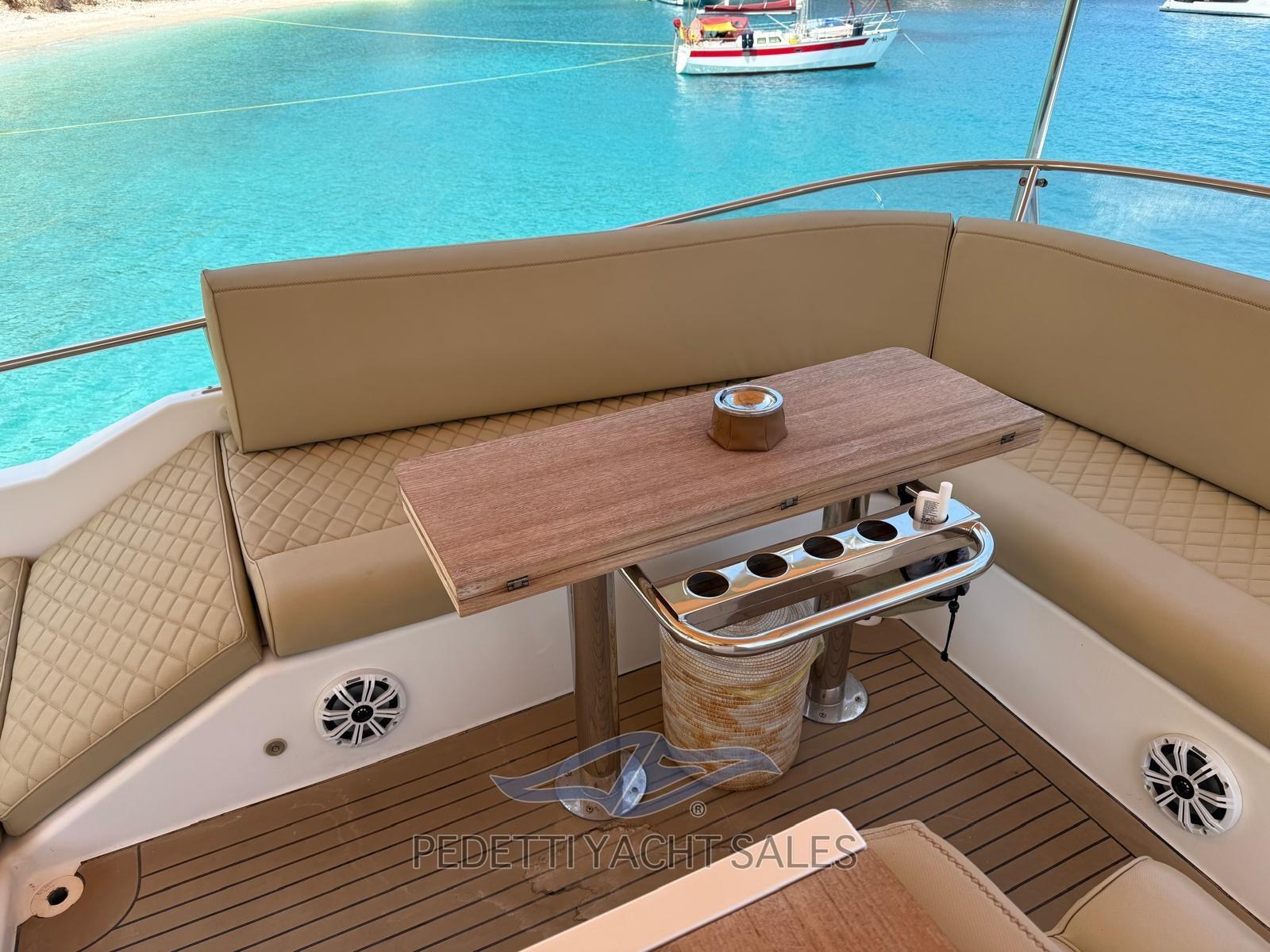 2xVolvo Penta 435 Hp with 1,400 engine hours, completely overhauled (including the generator) in 2025 with invoices available, Humphree electric dynamic stabilizers with two battery packs and 2 dedicated chargers, walkable solar panels on high-performance fly bridge, 140 lt/h watermaker, safety equipment, EPIRB, complete raymarine electronics with radar and wind instruments with double screen in the wheelhouse and on the flybridge, autopilot remote control, anchor chain meter counter, hydraulic stern platform, retractable hydraulic gangway, 10 Kw generator, bow and stern thruster, air conditioning, retractable TV in the saloon, stereo system with external and internal speakers with fader control, Yacht controller, cushions 10exterior new 2023, Custom fly bridge awning, bow awning, cockpit tenalines, FLIR stern and bow cameras with augmented reality, teak in the cockpit, natural teak exterior doors, grill cabinet with sink and refrigerator on the flybridge, table on the fly bridge, aft sofa in the cockpit, with lockers, Ultramarine steel anchor, underwater lights at the stern, 3 refrigerators (galley, saloon and fly bridge), cockpit freezer in the galley, dishwasher, washer-dryer, three-burner gas stove with pot holder, port water intake, fresh water outlet at the bow, new external shower with support, carvbonio fiber tender with 20hp outboard, Prospeed treatment of axles and propellers.