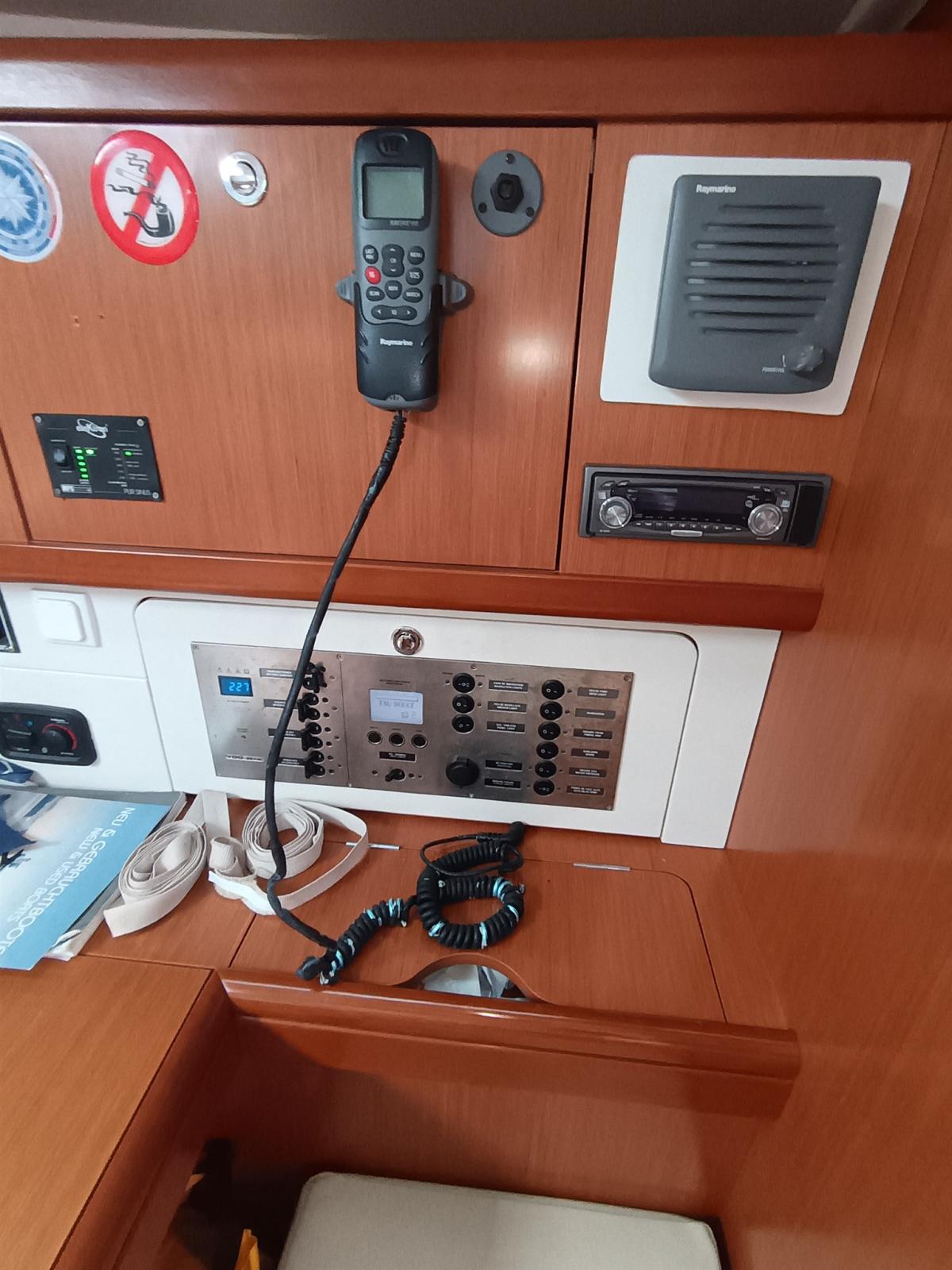 Rudder angle indicator, Radar Antenna, Electronic engine control, On-Board Computer, Chain counter, Display, GPS (Raymarine Axiom 11" 2023), Control panel.