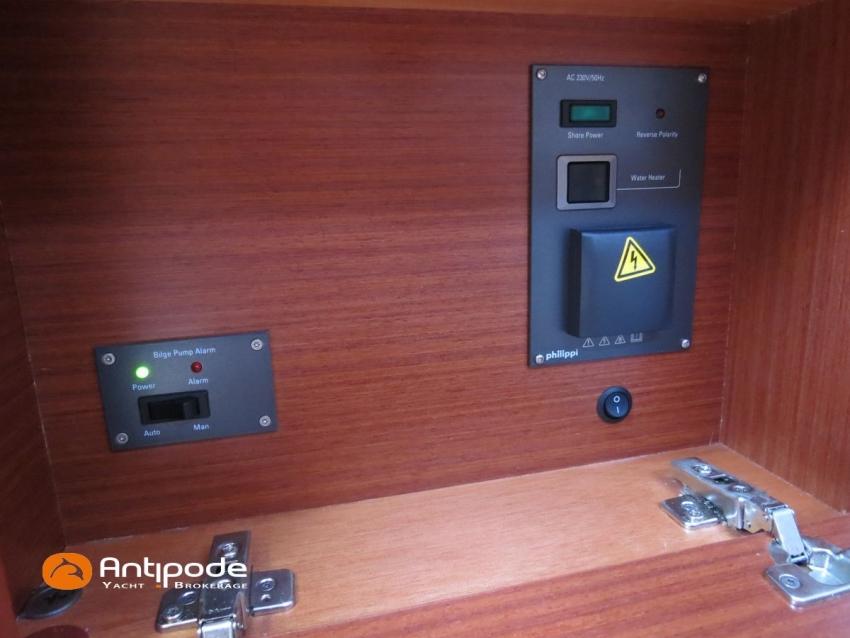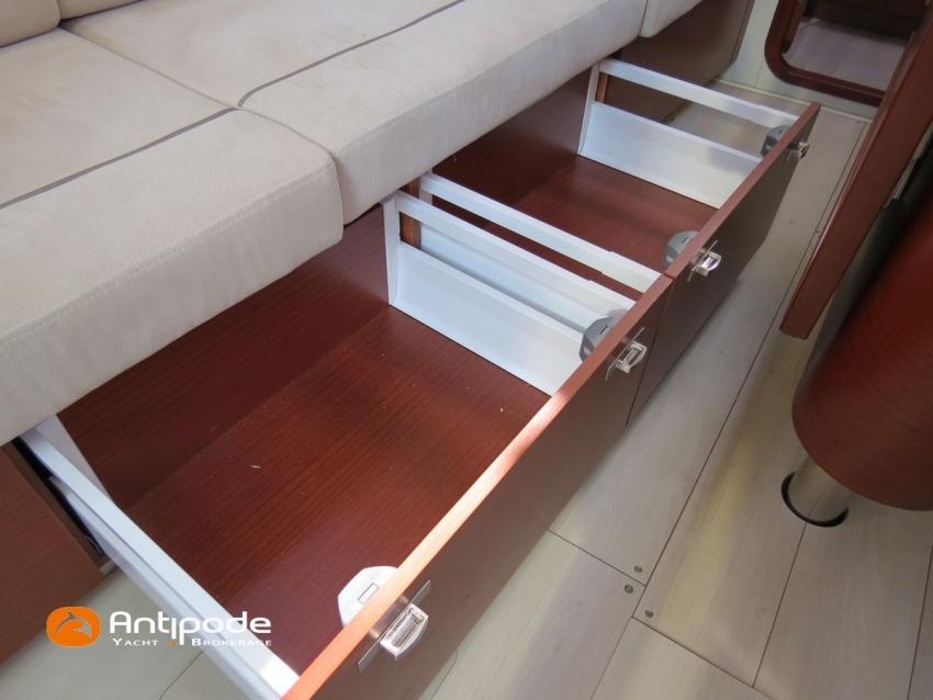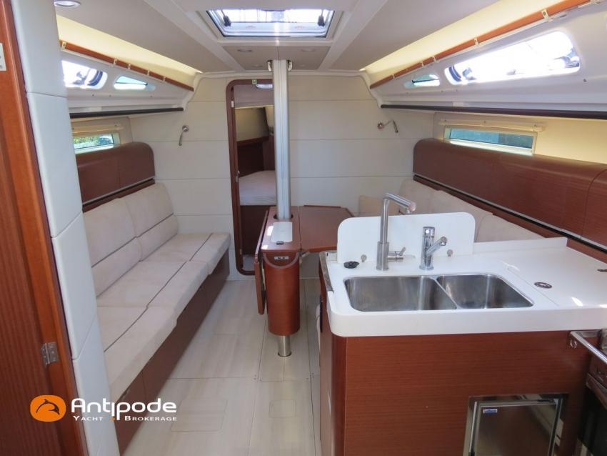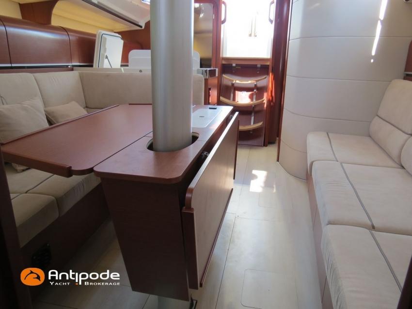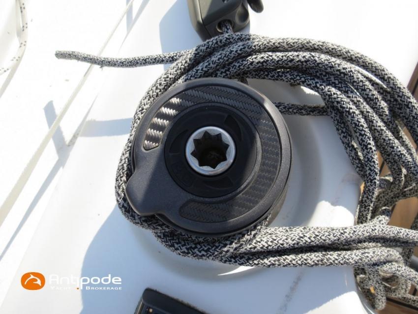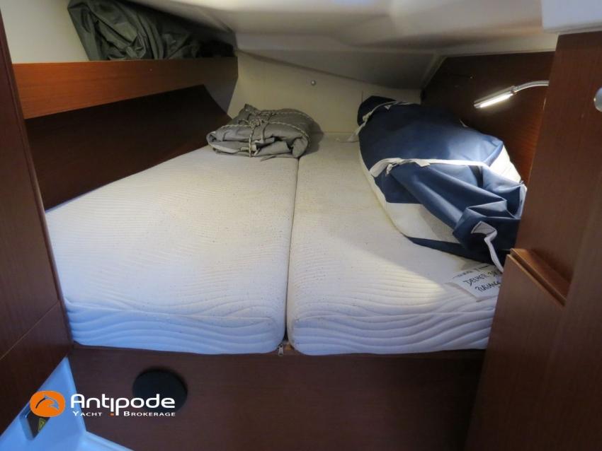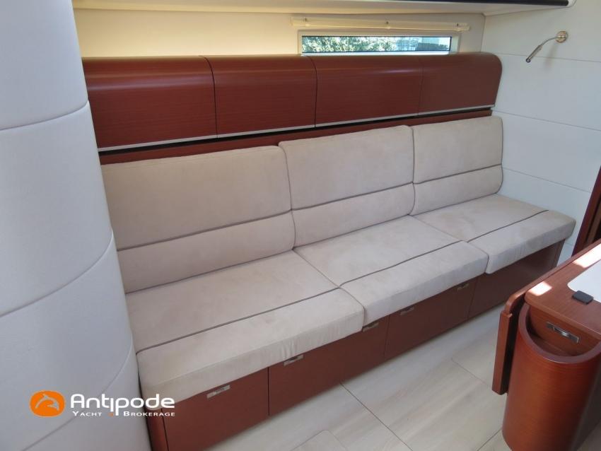 DEHLER 38 SQ, 2021, VOLVO D2-40, 40 hp (346 hrs), Bow thruster, Interior layout version 1 forward cabin, 2 aft cabins, 2 cockpit primary genoa winches - Lewmar 46ST, 2 cockpit mainsail sheet winches - Lewmar 40ST, 2 roof winches for adjustment and sail handling (1 electrical) - Lewmar 40ST, bowsprit, Stern pulpit deck support, Flexyteek top roof, Flexyteek slatted cockpit floor, Flexyteek cockpit seats, Flexyteek covered removable bathing platform, Removable cleats, Stainless steel bow & bowsprit protection, Cockpit table (wood) with 2 folding leaves, Twin steering composite wheels, Cockpit sprayhood, Cockpit bimini top, Electric windlass - Quick 800W, Aft cockpit roll bar & davits, Opening life lines, Gangway, Outboard engine bracket, Full cockpit enclosure, Keel stepped aluminium classic mast and boom - Selden, Rod standing rigging, Square top full batten main sail - Quantum, Main sail lazy bag, Main sail lazy jacks, Genoa roller furling with above deck drum - Furlex 204S, Furling genoa - Quantum, Furling staysail (never used) & Facnor FX+1500 furler, Twin adjustable backstays, In board autopilot - B&G, Navigation system - B&G, 3 x Cockpit repeaters, 2 x GPS and chartplotter (cockpit) (one per wheel station), Electronic navigation charts, Radar - Simrad, AIS Transponder CLASS B (emission and reception), DSC VHF + wireless unit - B&G V60, Fusion RA70N audio system + cockpit remote control + speakers, Fridge unit 12 V (top & front opening doors), Freezer 12 V, Lithium service batteries, 12 V to 220 V Inverter, Battery controller, Heating system EBERSPACHER, Holding tank, Solar panels - Solara 4 x 125W, Hot and cold cockpit shower, Sea water electrical pump in kitchen, Leds navigation lights, Leds interior lights, Liferaft (serviced in december 2025), 16kg delta anchor + 50m lenght of chain (2025) + rope, Fenders and warps, Dinghy (2.50m), 4 str 2.3Hp Honda outboard engine (2024), Located Brittany. For more information or to make an appointment for a visit, contact : Jean-Baptiste Lemaire +33 6 10 25 00 03 - jb@antipode-yachts.com
