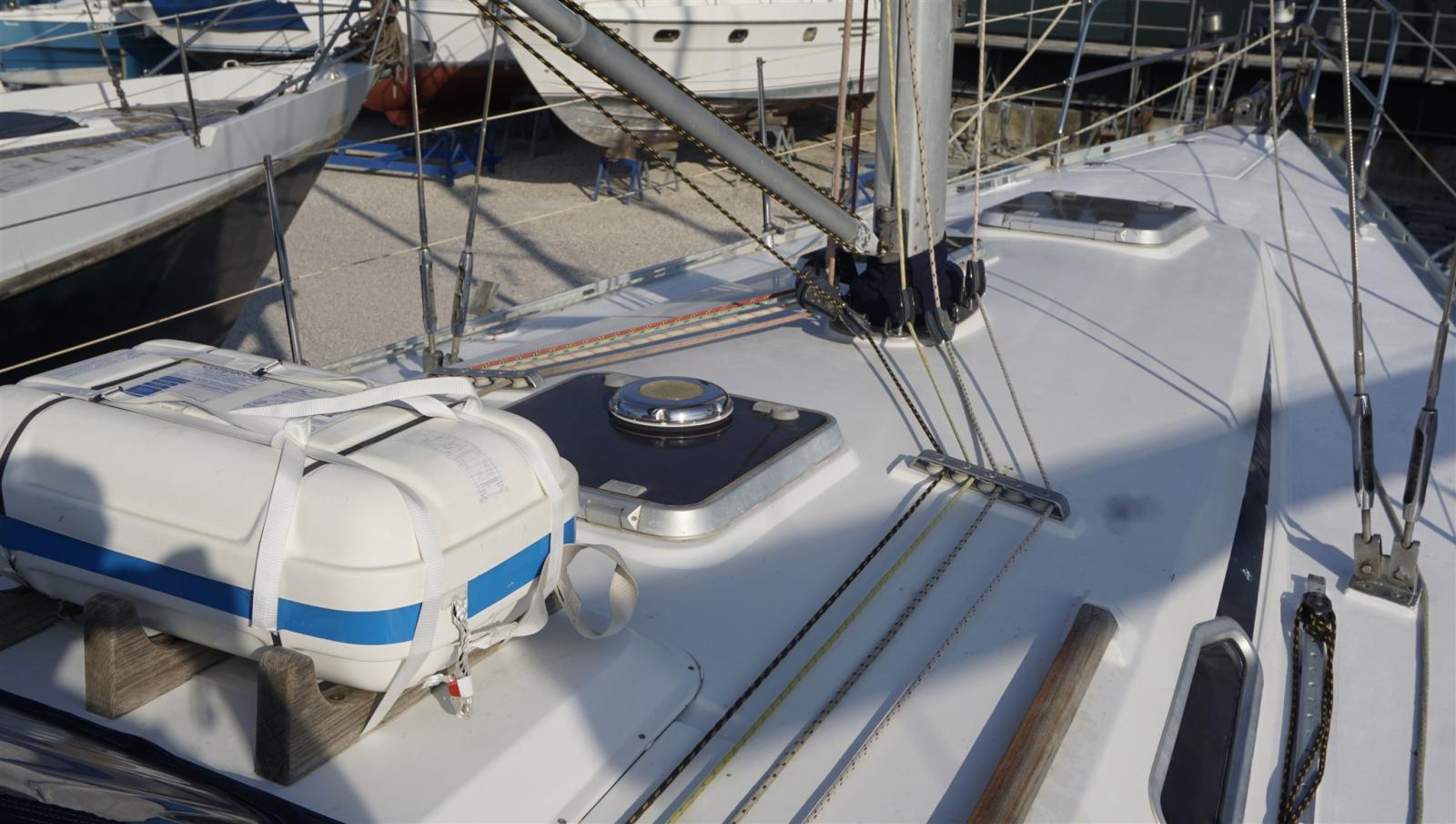 Jib Furling System, Bowsprit, Ball bearing slider mainsail, Lazy Bag, Lazy Jack, Backstay tensioner, Mainsheet traveller, Vang.