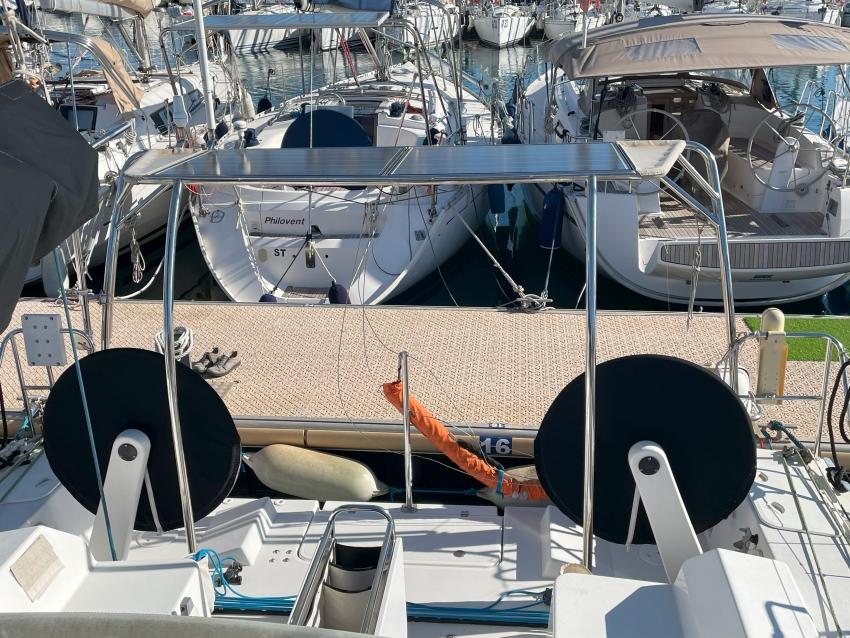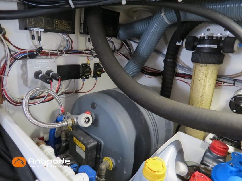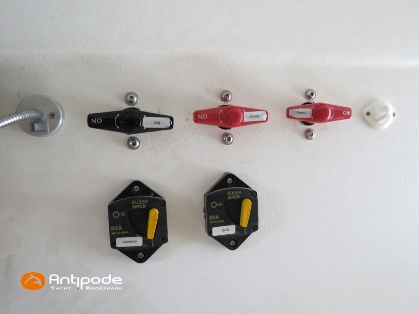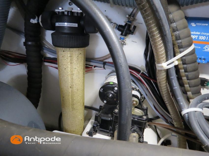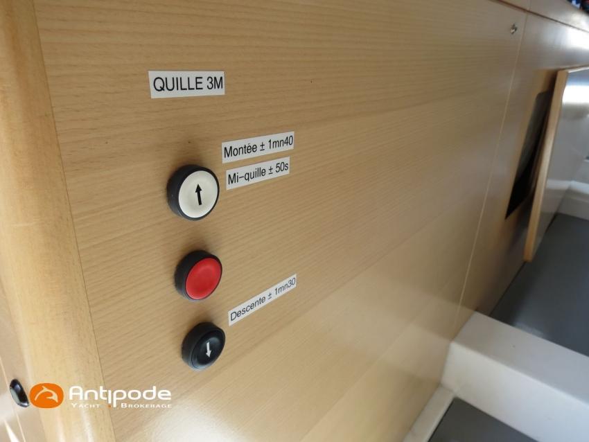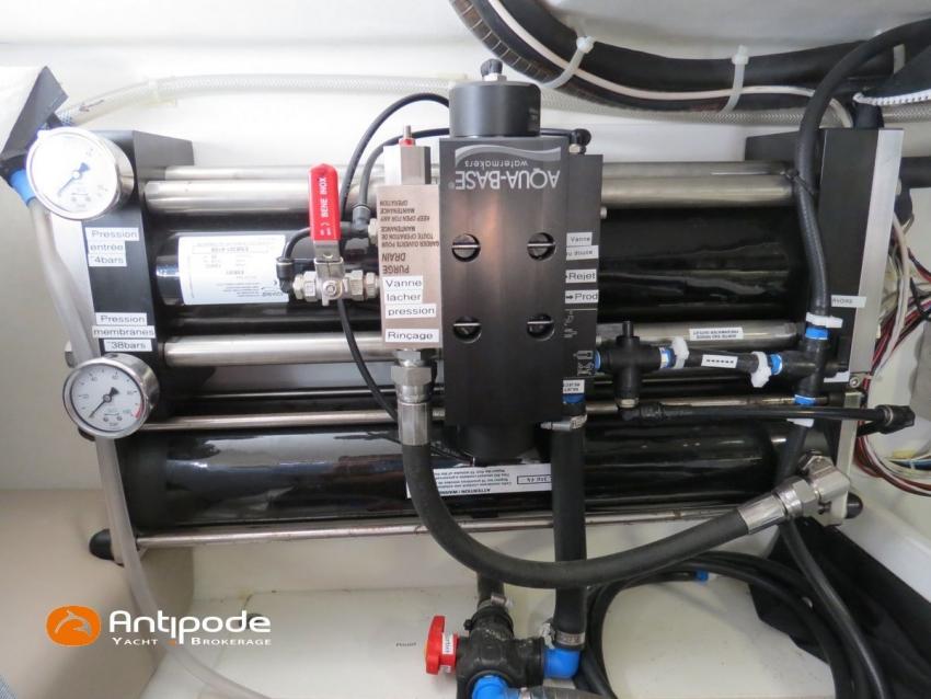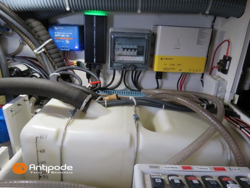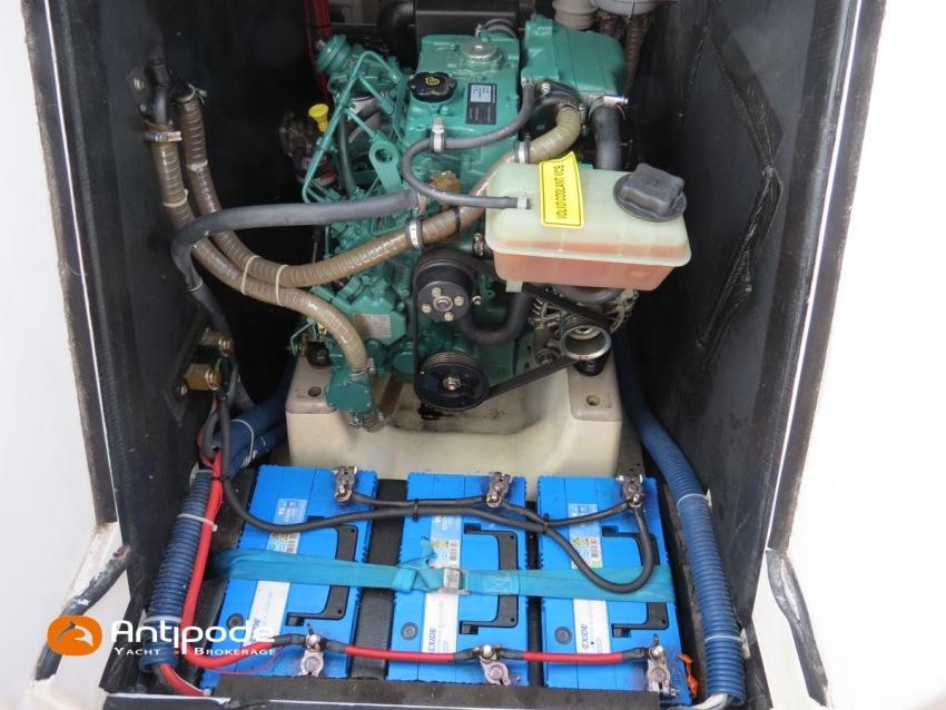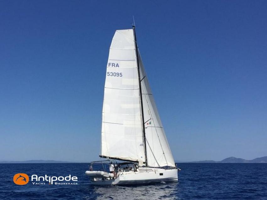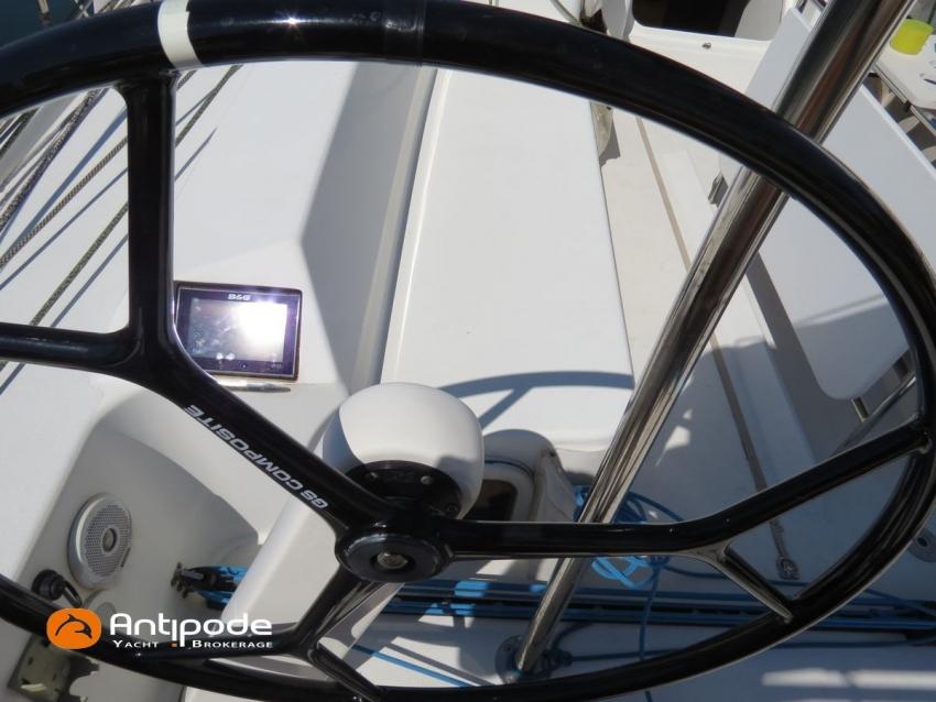 POGO 1250, 2015, VOLVO D1-30 F, 27 hp (1016 hrs), Interior layout version 1 forward cabin, 2 aft cabins, 1 heads (toilets + shower), 1 head (shower), Silvertex Extra comfort cabins upholstery, Anti roll canvas in saloon & aft cabins, UV protection on roof windows, Removable carbon bowsprit, Stern pulpit deck support, GRP cockpit table with 2 folding leaves & locker, Twin steering composite wheels, Cockpit sprayhood (renewed 2022) with UV protection on windows, Sun awning, Quick electric windlass (renewed in 2023) with counter of chain remoter control, Cockpit electric windlass remote control, Aft cockpit roll bar (2018), Outboard engine bracket, Carbon mast, Dyform cable standing rigging (from 2015, checked in 2018), Set of sails from 2015 : Square top mainsail (full batten) + asymetric spinnaker (140sqm) + staysail + lazybag, Set of sails from 2018 Quantum : 3 reefes mainsail 57.23sqm full batten MC6500 + A0 92.30sqm (code 0) + Jib top CZ90 54.91sqm + Staysail MC6000 21.80sqm + storm jib 12.97sqm + Genoa MC6500 42.47sqm + mainsail cover + lazy jacks + lazybag for sailing with halyards bags, Main sail mast track + batten cars + Karver square top system, Double lines main sail reefing system, Genoa roller furling with above deck drum - Facnor Flatdeck (2022), Genoa anti-UV protection cover, Karver F5 furler for A0 & Gennaker, Karver F2 furler for staysail & storm jib, Dyneema running rigging, Running backstays (2018), 2 x in board autopilot tillers : Raymarine & Lecomble & Schmidt, 2 x Calculator Gyropilot 2 NKE, Switchs for the 2 automatic inboard tillers or the 2 NKE Gyropilot (second autopilot works only with compas), 2 x Gyrographics on starboard + 1 on port (for the second NKE unit) + 1 at chart table, NKE Wifi box , HF GPS + HR wind sensor + HR100 barometer - NKE, True wind mode, NKE Regata compas for bus n°1 et Fluxgate for bus n°2, GPS and chartplotter (cockpit) - B&G Vulcan 7 pouces, Electronic navigation charts - C-Map for Europe, Radar with radome radar fitted on mast - Koden (2018), Echomax radar system, AIS Transponder CLASS B (emission and reception) - Icom MA500-TR, DSC GPS VHF at chart table - Icom , Fusion Hi-Fi audio system + speakers, PC + windows + TimeZero, 100 db alarm, Distress beacon - Ocean Signal (exp. Sept 2029), Fridge unit 12 V (top opening door), Hot and cold pressurized water, 2 burners cooker + oven, 220 V shore power + battery charger - Cristec 12 - 40A, 3 x Service batteries - Exide 3 x 95Ah (2022), 12 V to 220 V Inverter on chart table, Interior 220 sockets, Battery controller - Victron, Heating system EBERSPACHER, Watermaker 12 V - Aquabase 35L/h (2018), Holding tank, Solar panels - Solara - 2 x 150W + MPPT Victron (2018), Water turbine Watt & Sea 600W (2018), Hot and cold cockpit shower, Leds navigation lights, Liferaft - Seasafe 6 men - Next service date May 2026 , Offshore french safety equipments for 4 men (excl portative VHF), 15 Kg Spade anchor + 50m lenght of chain, Fenders and warps, Dinghy : Zodiac Fastroller Cadet 325, Yamaha 9.9Hp outboard engine, Actual second owner, same owner till 2018, never chartered, Located Mediterranean. For more information or to make an appointment for a visit, contact : Jean-Baptiste Lemaire +33 6 10 25 00 03 - jb@antipode-yachts.com