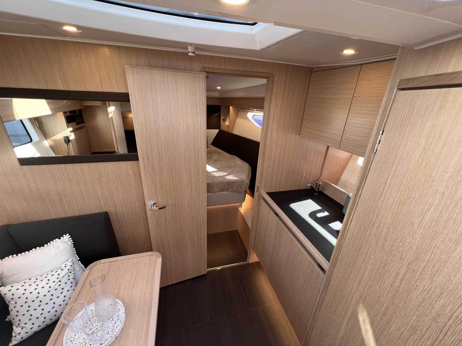 This well-equipped Hard-Top version will meet the most demanding expectations: Engine: 2 x 300 hp Volvo Penta D4, Autopilot, Large swim platform, Sunbathing areas at the bow and in the cockpit, Air conditioning, Generator, Fully equipped outdoor kitchen