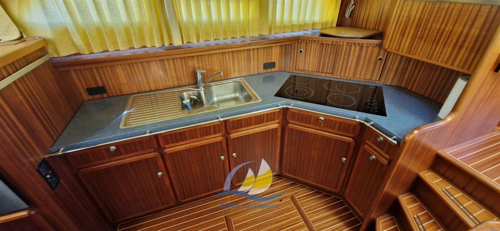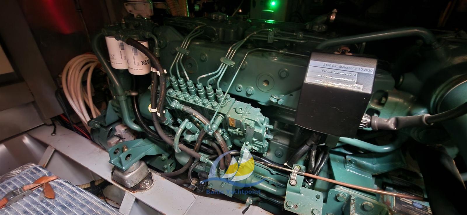 Technically, the yacht impresses with the Volvo Penta TAMD 41P diesel — a seaworthy 6-cylinder engine with 230 hp that ensures reliable driving performance and good ranges. The machine is easily accessible for maintenance and service.