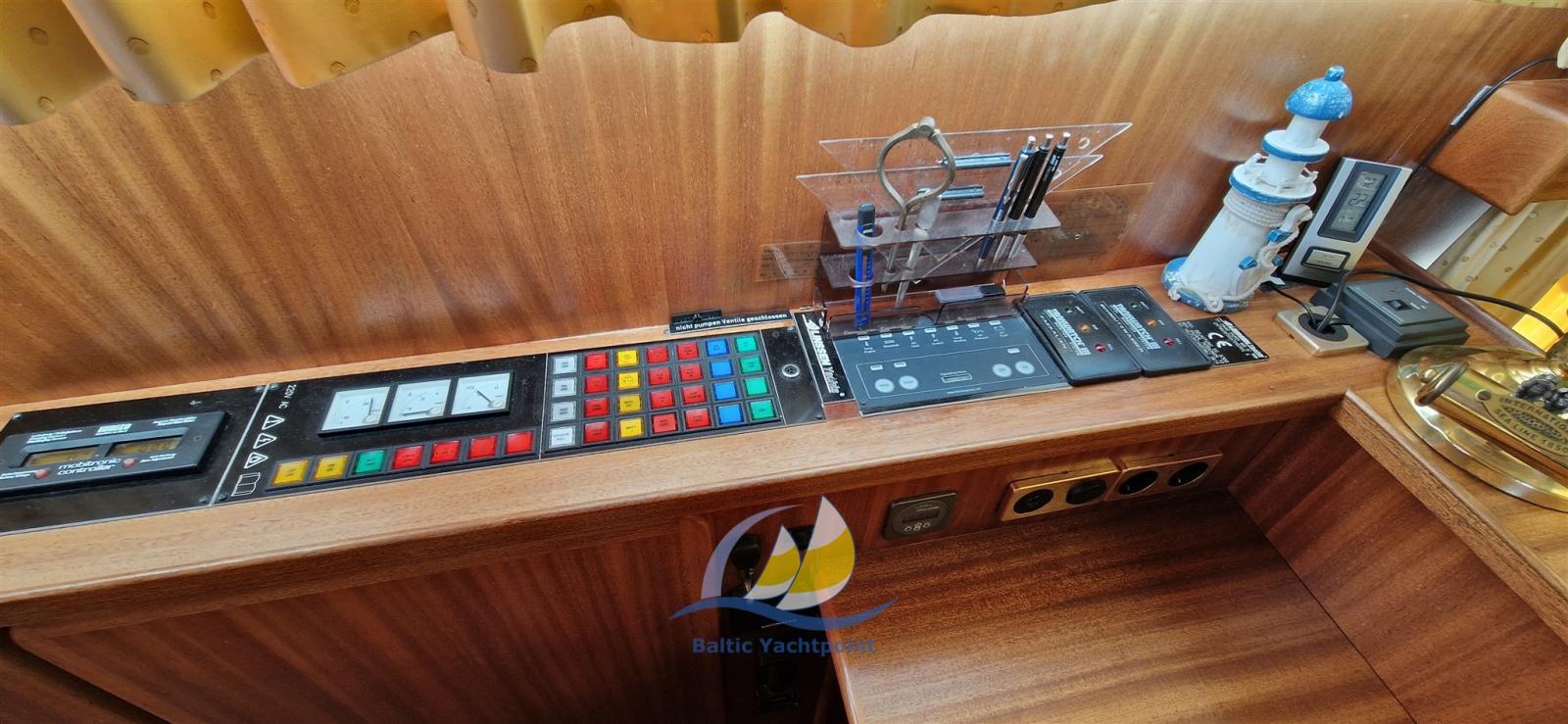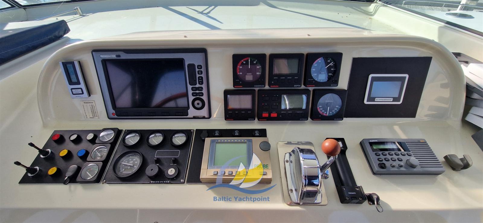 Rudder angle indicator, Radar Antenna, Display, DSC vhf, Turn indicator, MeteoFax, Wind pilot, Plotter with GPS antenna, Engine Measuring Instruments.