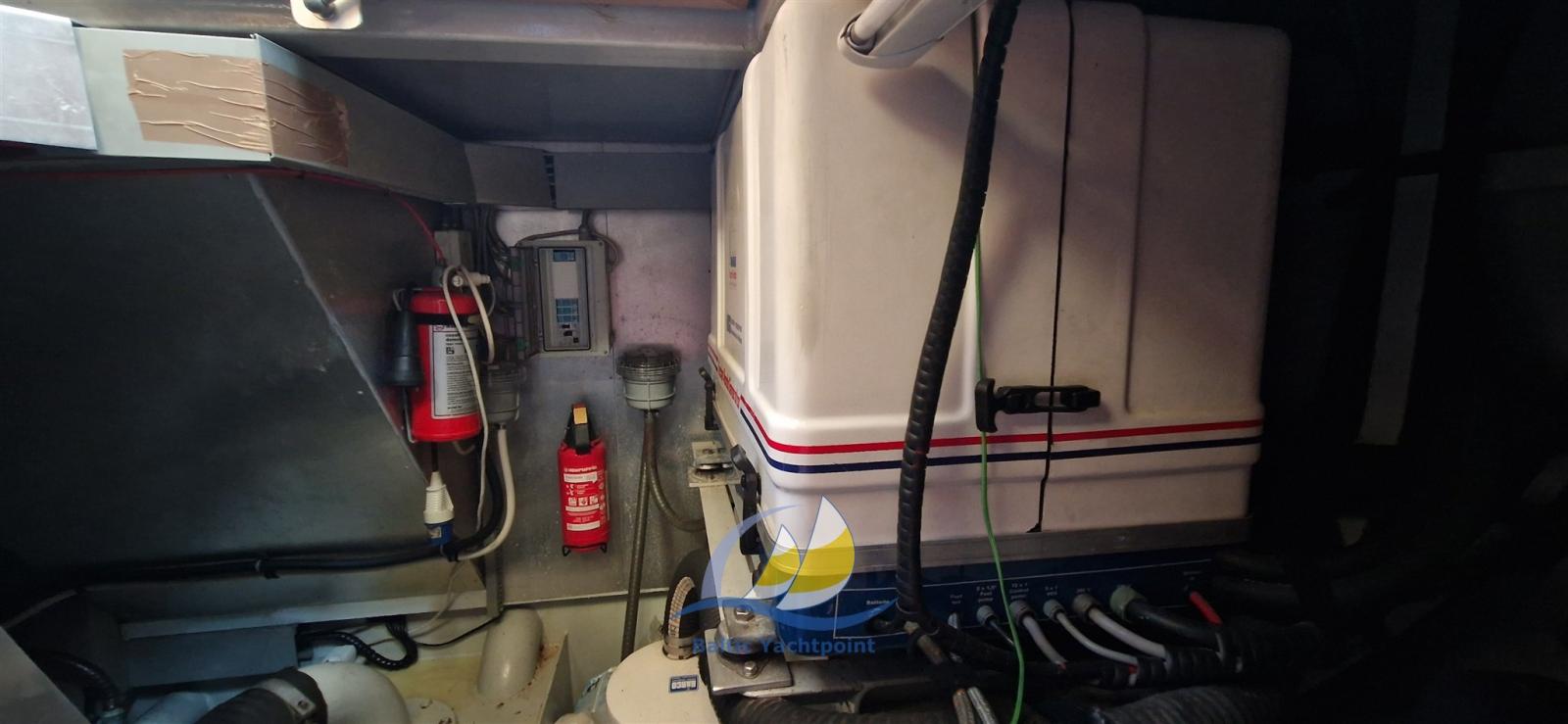 Engine Alarm, Bilge Alarm, Alternator (Fischer Panda 4KW), Water pressure pump, 8 Batteries, Teak Side Decks, Shore power cable, Guard rail, Deck Shower, Anchor mount, Jet-Ski Crane, Davits for tender on fly, Courtesy Lights, Outboard engine for tender, Fenders, Waste Water Tank Drain Pump, Automatic Bilge Pump, 3 Electric Bilge Pump, Deck Wash Pump, Teak deck, Entry door, Teak Cockpit, Shorepower connector, Water harbor connector system, Electric Windlass, swimming ladder, Stabilizers, Tender, guard rails with gates, Horn.