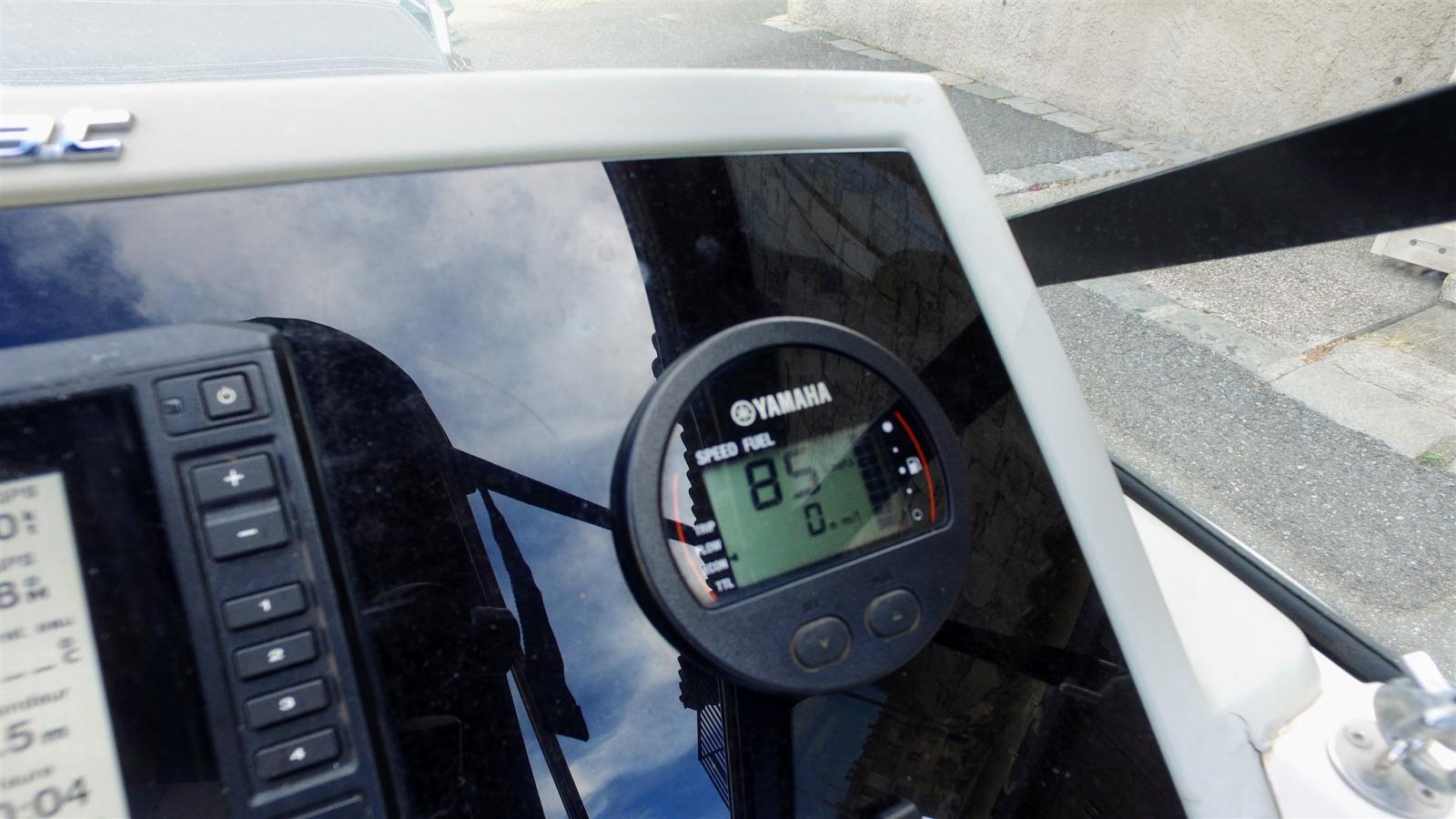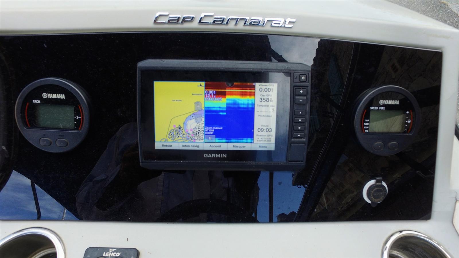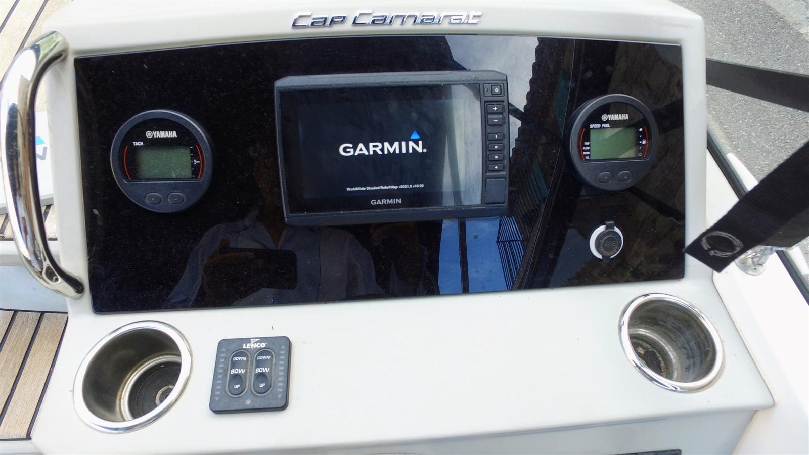 Depth Sounder (Garmin), Log (Yamaha), Plotter with GPS antenna (Garmin), Sonar (Garmin).