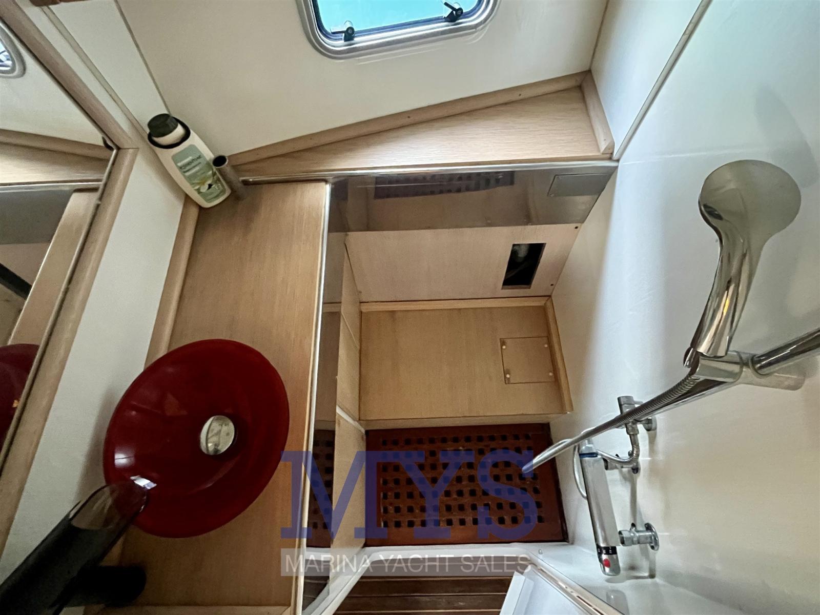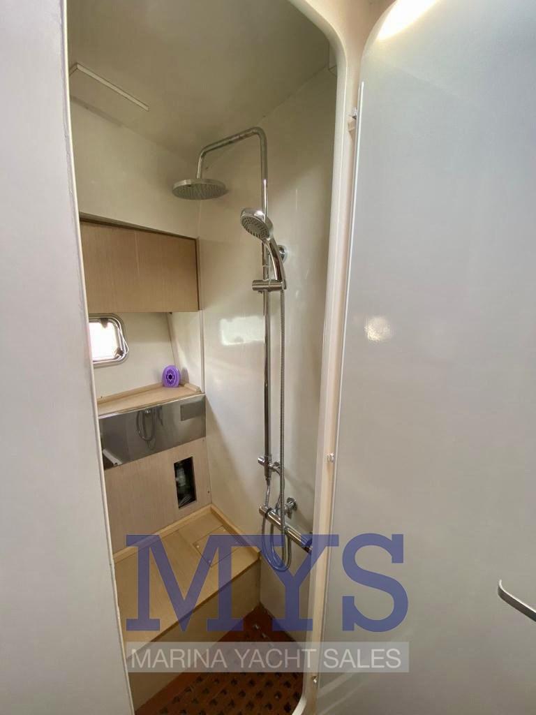 Water pressure pump, 3 Batteries, Deck Shower, 2 Solar panels, Teak deck, Teak Cockpit, Shorepower connector, Water harbor connector system, Electric Windlass, swimming ladder, cockpit table.