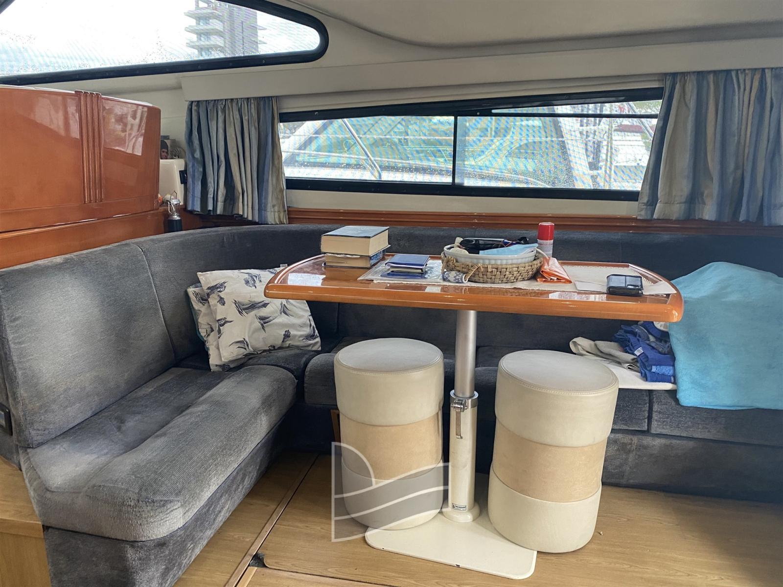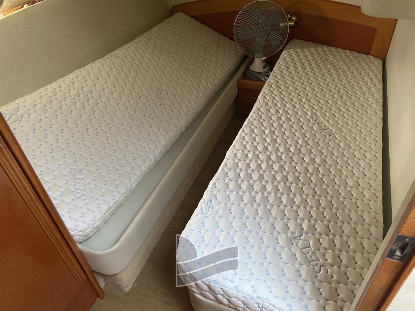 Engine Alarm, Water pressure pump, Deck Shower, Twin Steering, 2 Electric Flaps, Fire Extinguishing System, Gangway (Idraulica), Platform (di poppa in teak), Entry door, Teak Cockpit, Rollbar, Electric Windlass, swimming ladder, Horn.