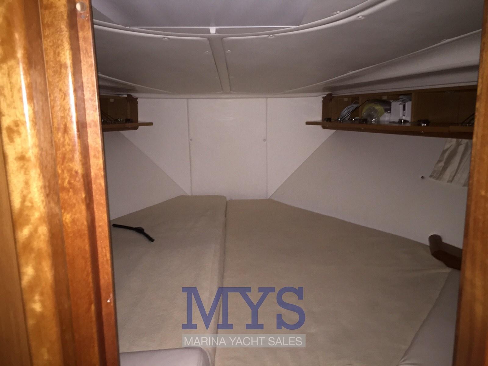 Owner's room in the bow with peninsula double bed