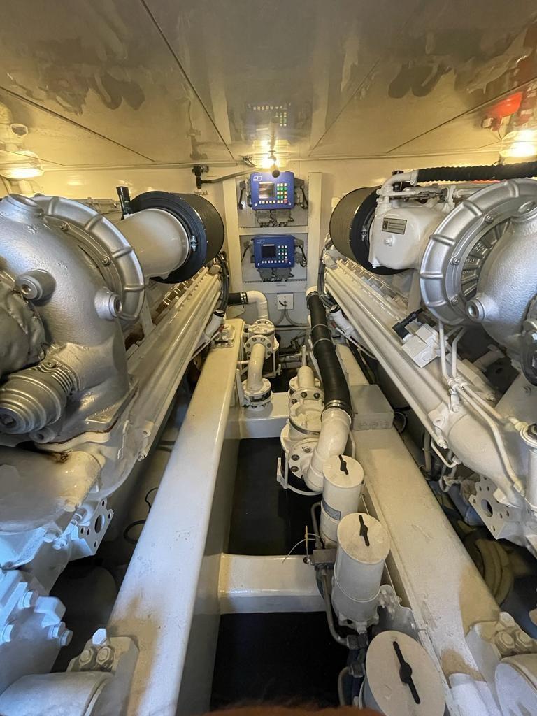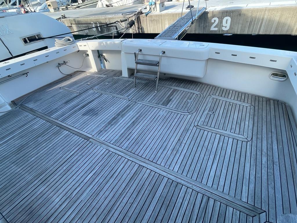 Fume/Gas Detector, Engine Alarm, Bilge Alarm, Water pressure pump, 20 Batteries (8 motori; 6 servizi nuove 05/2023; 2 elettronica; 2 generatori; 2 bow truster), Special Colour, Deck Shower, Hydraulic Flaps, Fire Extinguishing System, Flaps Indicators, Anchor Chain Washdown, Washbasin in the cockpit, Courtesy Lights, Gangway, 5 Automatic Bilge Pump, Entry door, Teak Cockpit, Shorepower connector, Water harbor connector system, Electric Windlass, swimming ladder, Horn.
