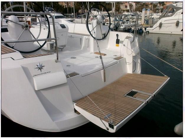 Engine Alarm, Water pressure pump, 4 Batteries, Deck Shower, Twin Steering, Platform, Manual Bilge Pump, Electric Windlass, swimming ladder, cockpit table.