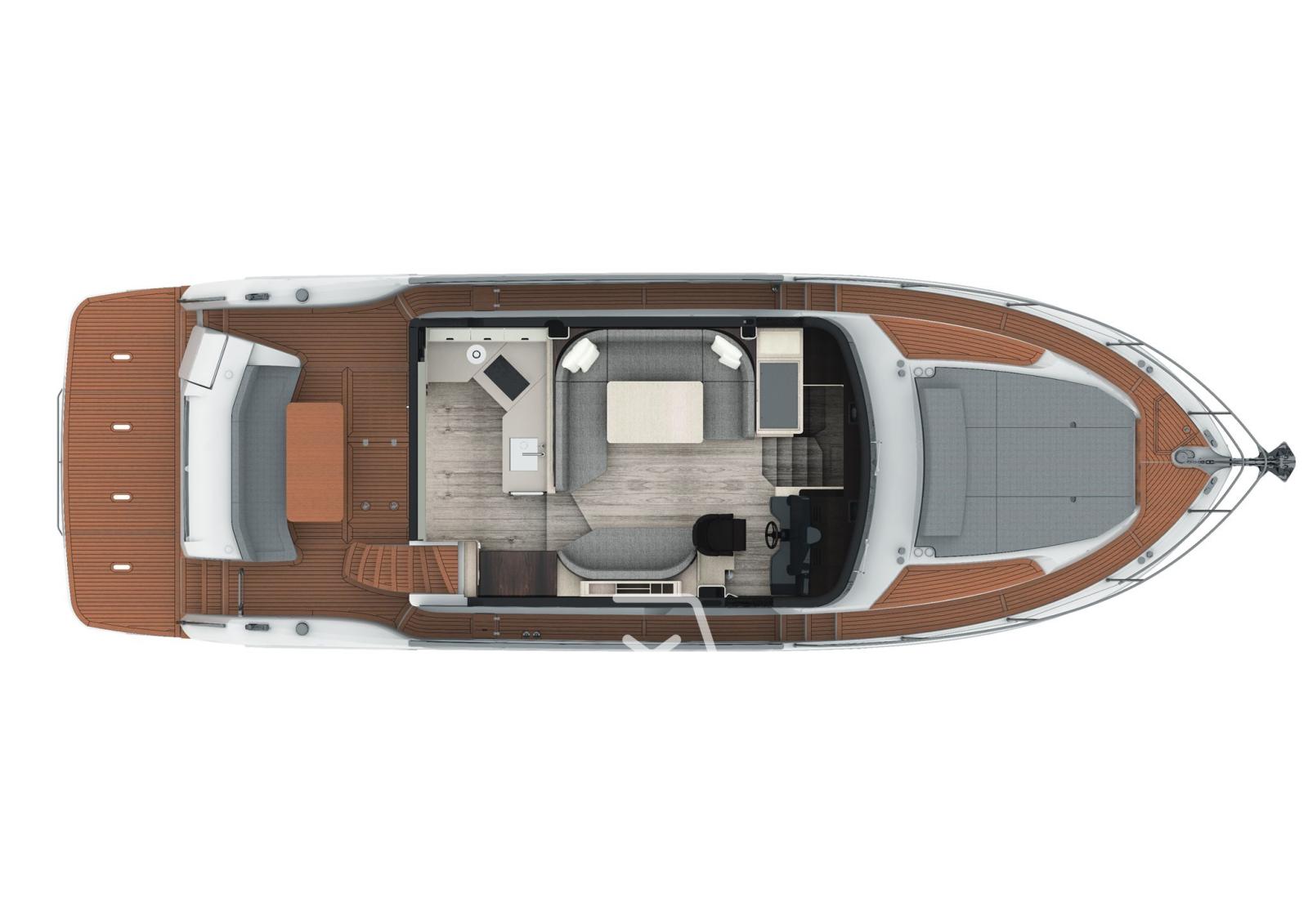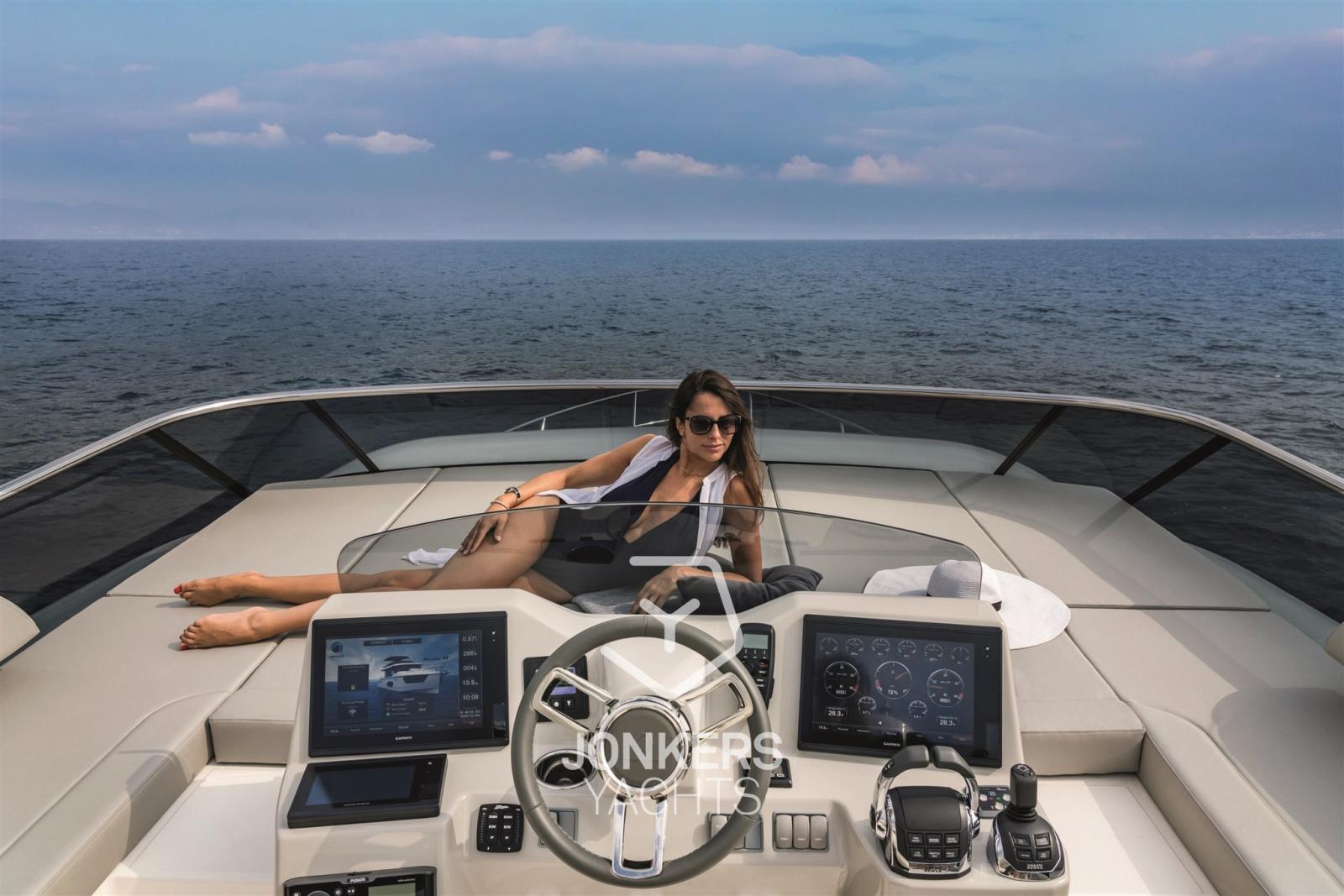 Moreover, the bow is easily accessible via walkways, protected by the cover of the fly itself, and offers a comfortable, modular relaxation area.
