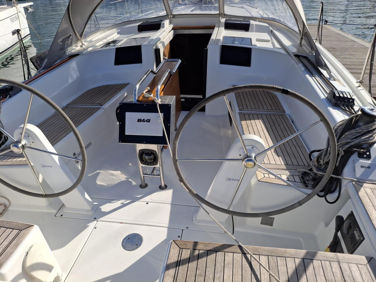 Engine Alarm, Water pressure pump, 2 Batteries, Battery charger (30 Ah), Deck Shower, Twin Steering, Platform, Manual Bilge Pump, Teak Cockpit, Electric Windlass, swimming ladder, cockpit table, 2 Winch (Lewmar 45 ST EVO).