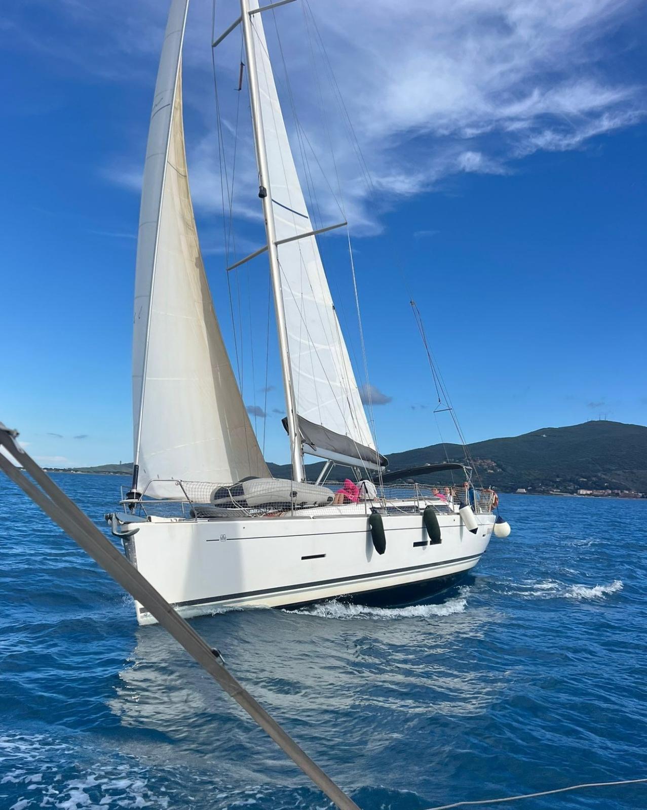 The Dufour 445 Grand Large The Dufour 445 Grand Large is a cruising sailing boat designed to combine elegance, comfort and excellent performance. Launched in 2010, it was designed to meet the needs of both cruisers looking for generous space and practical functionality, and those who want a high-performance boat that is easy to manoeuvre, even with a small crew. Design and Fairing Designed by the famous designer Umberto Felci in collaboration with the Dufour team, the Dufour 445 GL stands out for its balanced fairing and modern lines. The wide maximum beam extends towards the stern, offering greater stability and more generous interior spaces. (SVN)
