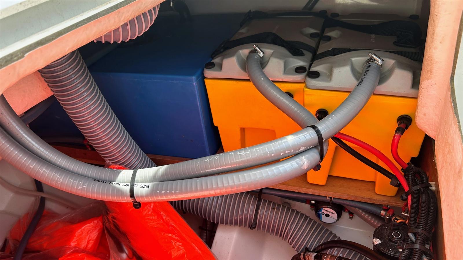 Engine Alarm, Water pressure pump, 2 Batteries (2025), Electric Flaps, Washbasin in the cockpit, Electric Windlass, swimming ladder, cockpit table (polyester et teck).
