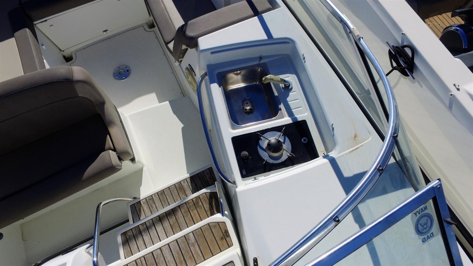 The 2014 Cap Camarat 7.5 WA is a safe bet for the Jeanneau brand, known for its elegant design and its marine hull offering comfort and safety. This model, perfect for outings with family or friends, combines sailing pleasure and comfort on board.