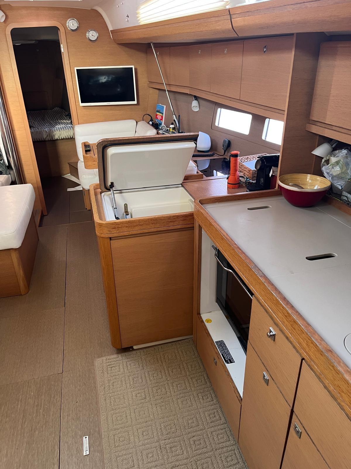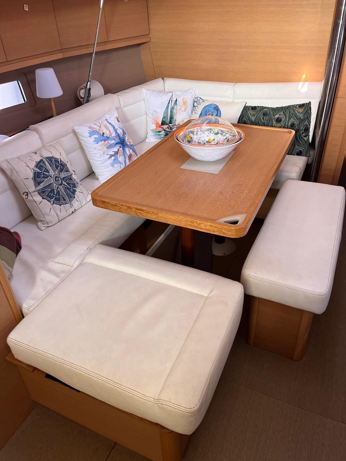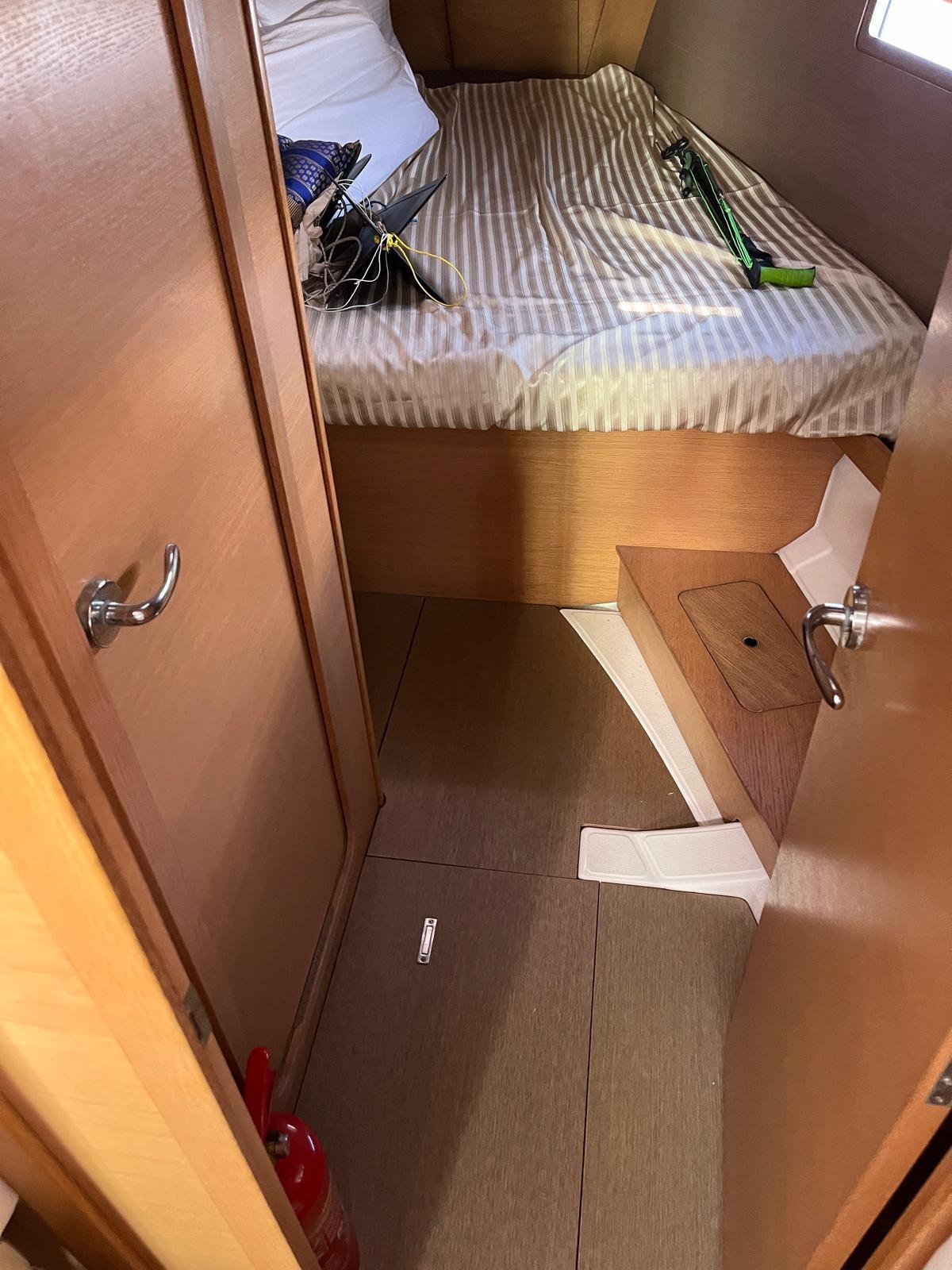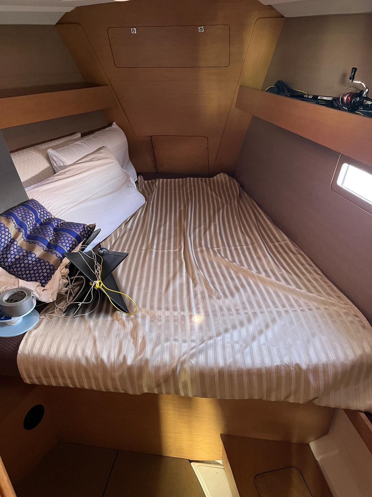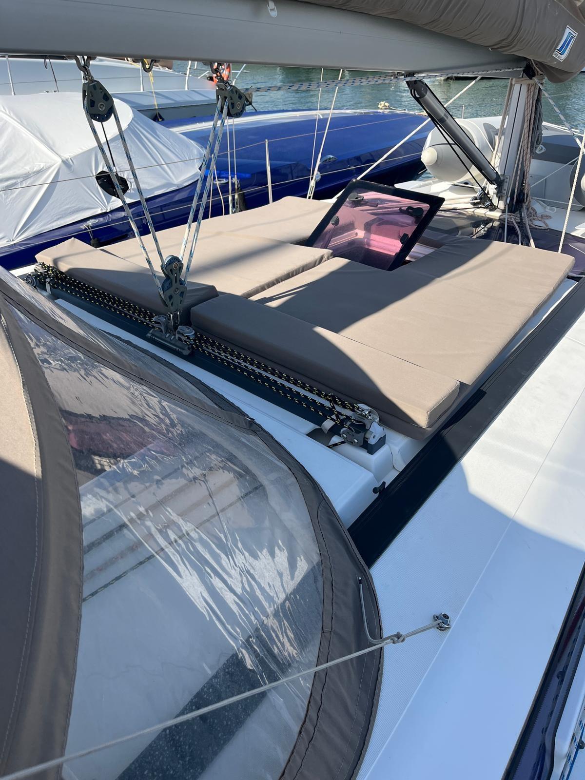 mainsail on trolleys; rudder covers and table covers; still respect; Tender again; salt water foot pump; 2024 NEW: cockpit and sundeck cushions, genoa sheets, tender and Suzuky 2.5 hp outboard; 2025 NEW: system and TV, pilot, wind station, bilge pump, microwave, mainsail halyard, windex, self-inflating, rockets, hull capacity to zero; mediation of 5% + VAT 22% to be paid by the buyer (VAT is calculated on the amount of the mediation).