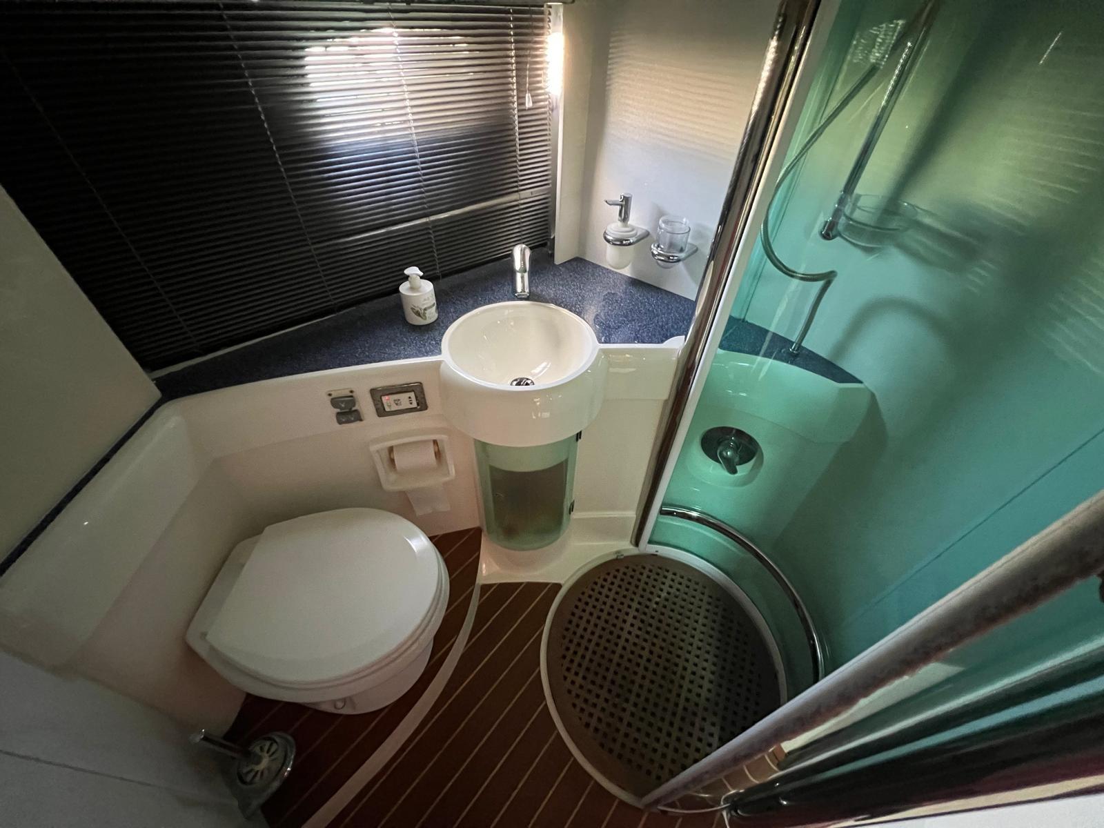 3 cabins and 2 bathrooms: a forward owner's cabin with en-suite bathroom and two guest cabins with double beds.