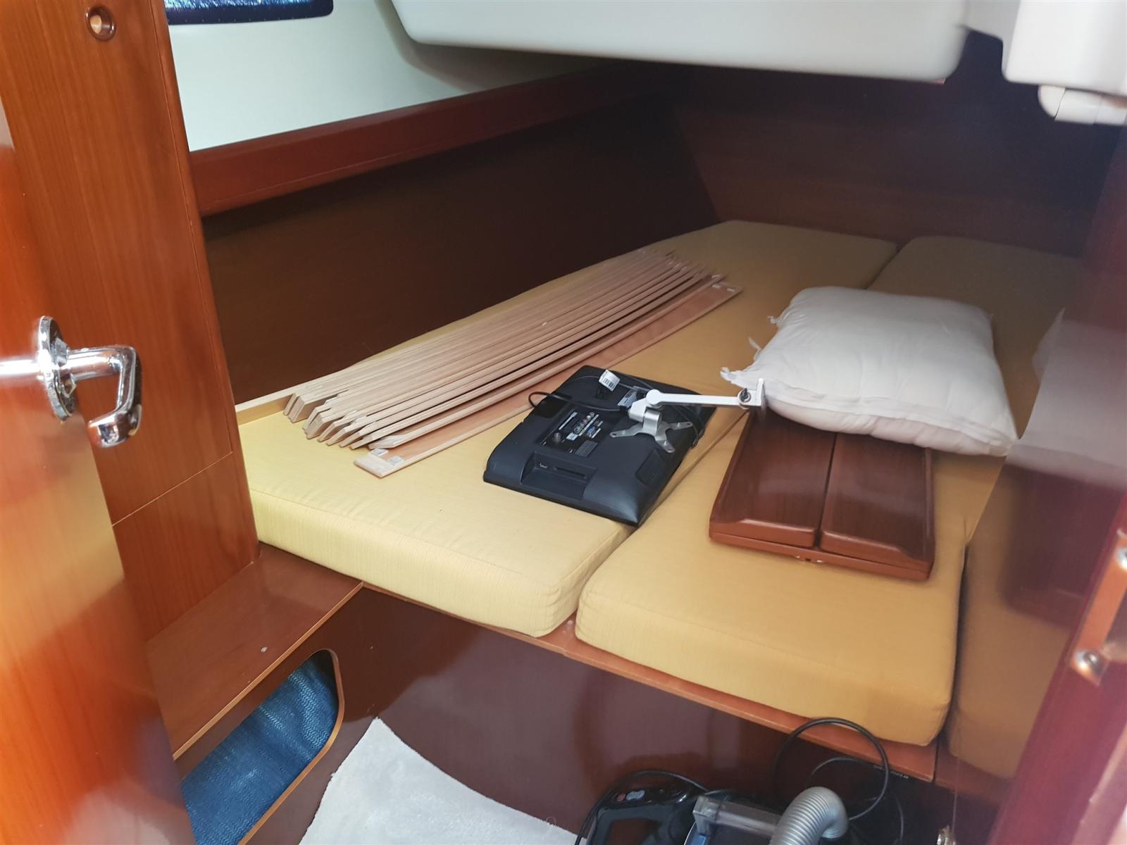 Engine Alarm, Water pressure pump, 3 Batteries (1 motore + 2 servizi), Deck Shower, Courtesy Lights, Gangway (legno/acciaio), Platform, Manual Bilge Pump, Shorepower connector, Water harbor connector system, Voltage Rectifier, Electric Windlass, Strand rigging, swimming ladder, Outboard Engine Support Bracket, cockpit table, 4 Winch.