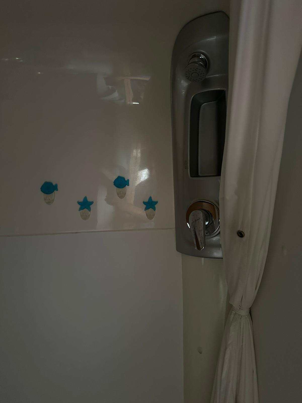 Fume/Gas Detector, Engine Alarm, Bilge Alarm, Water pressure pump, Deck Shower, Hydraulic Flaps, Tender Garage, Courtesy Lights, Gangway (idraulica a scomparsa), Automatic Bilge Pump, Shorepower connector, Water harbor connector system, Voltage Rectifier, Rollbar, Electric Windlass, swimming ladder, 2 cockpit table.