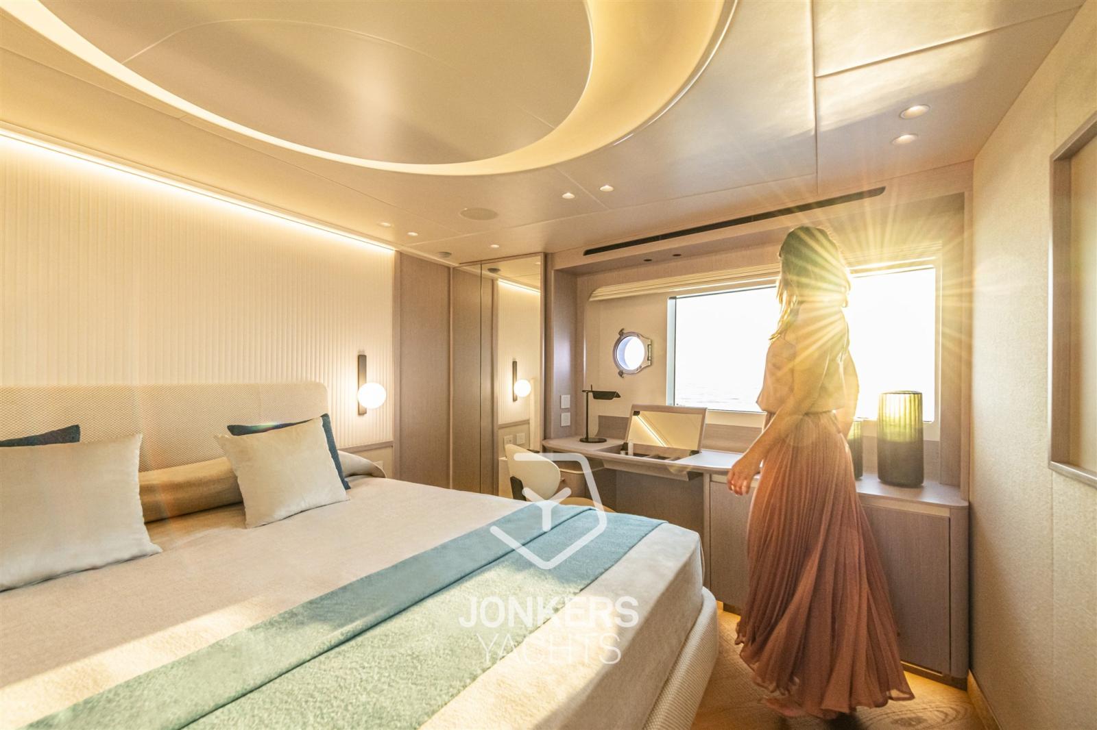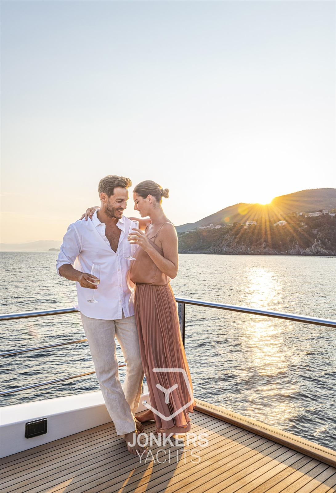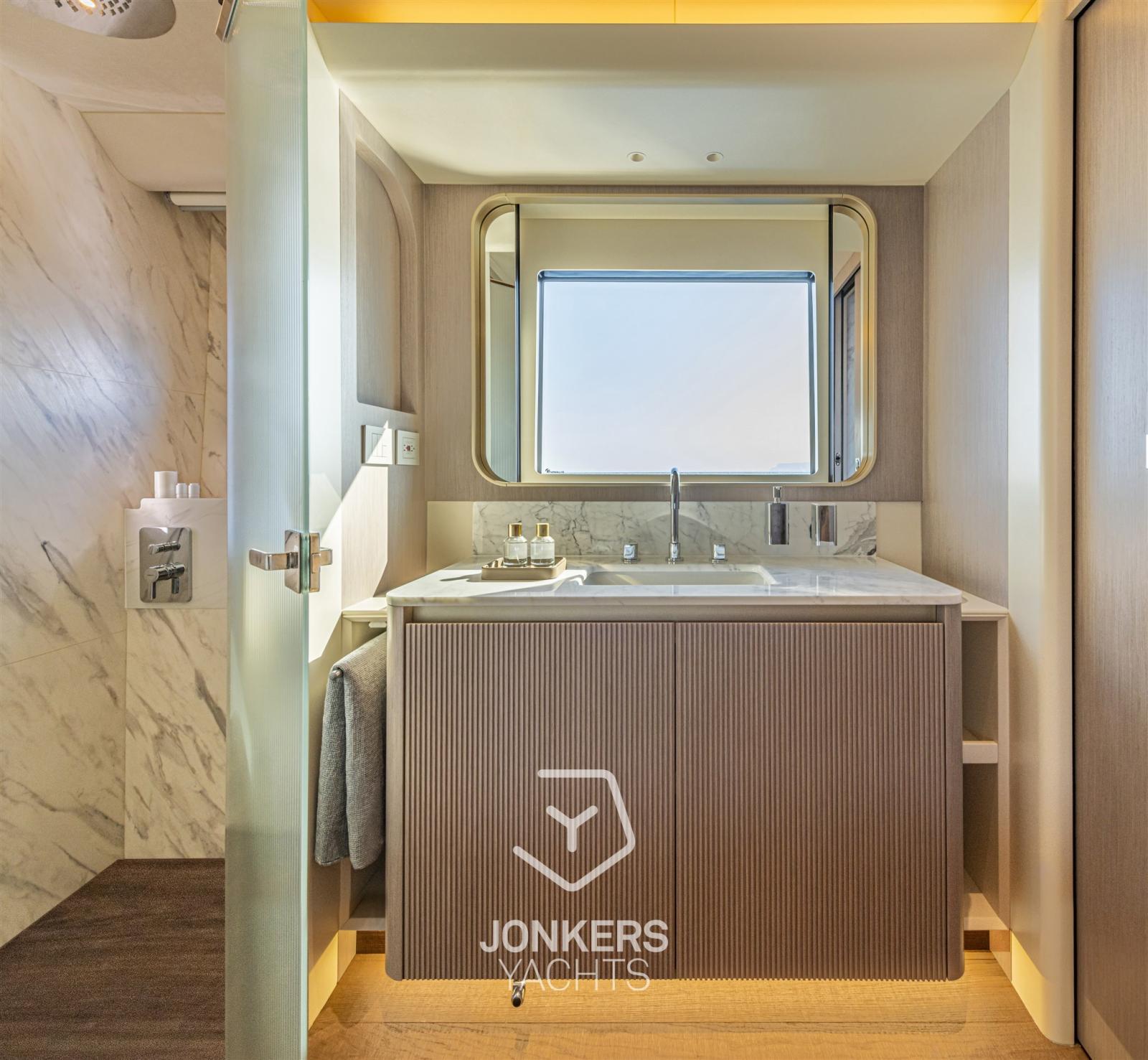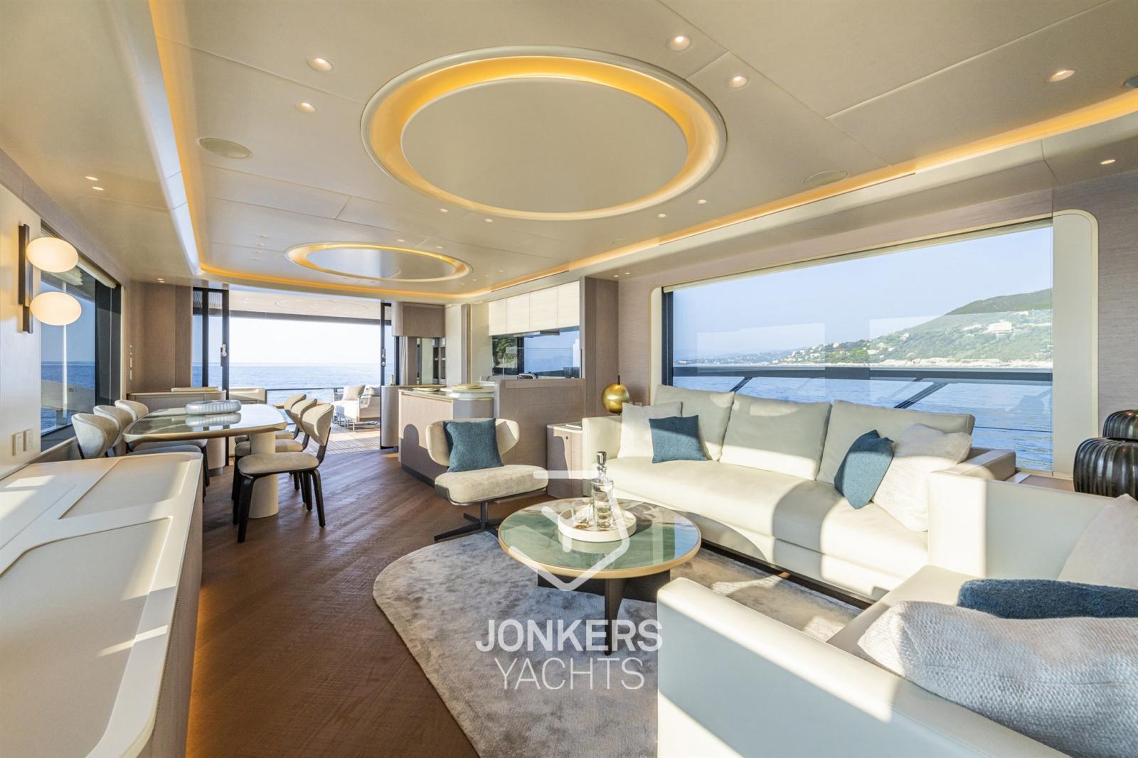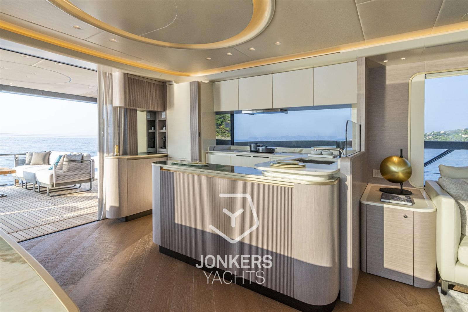 This yacht has also been designed to enjoy a 360-degree view of the sea on board, with the perception of being on a vessel with much larger volumes. The spacious kitchen and the ample lounge further contribute to the impression of even more generous spaces.