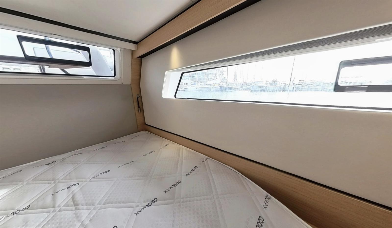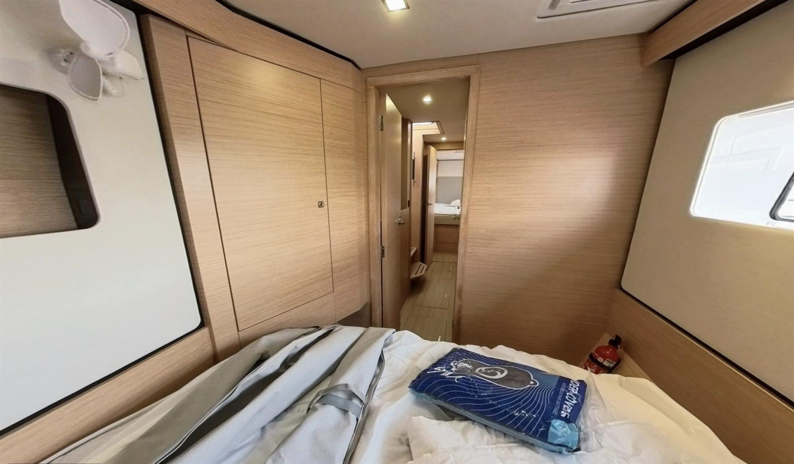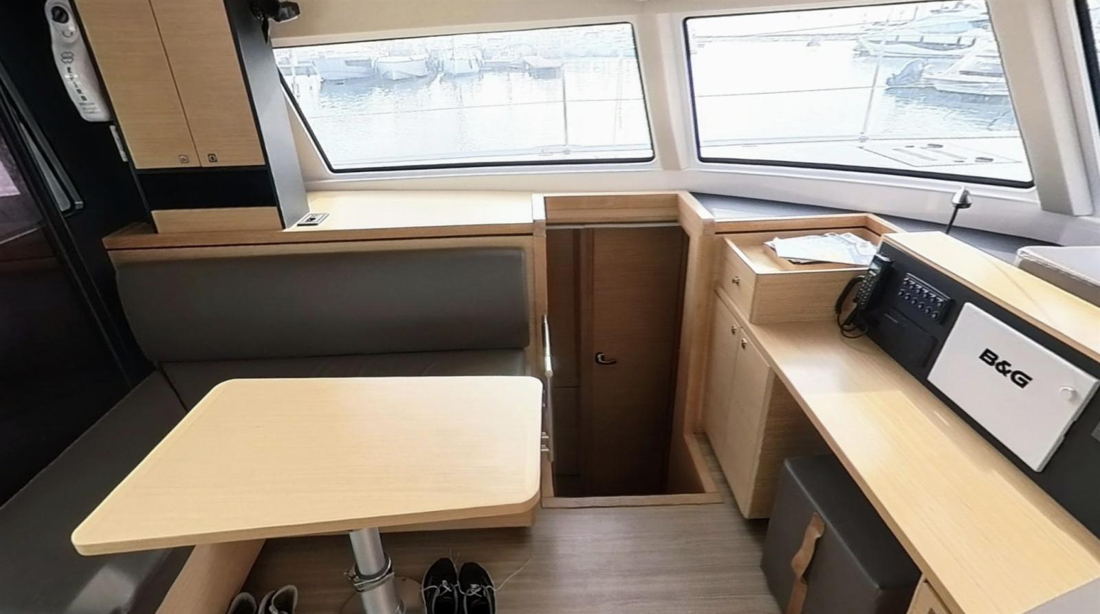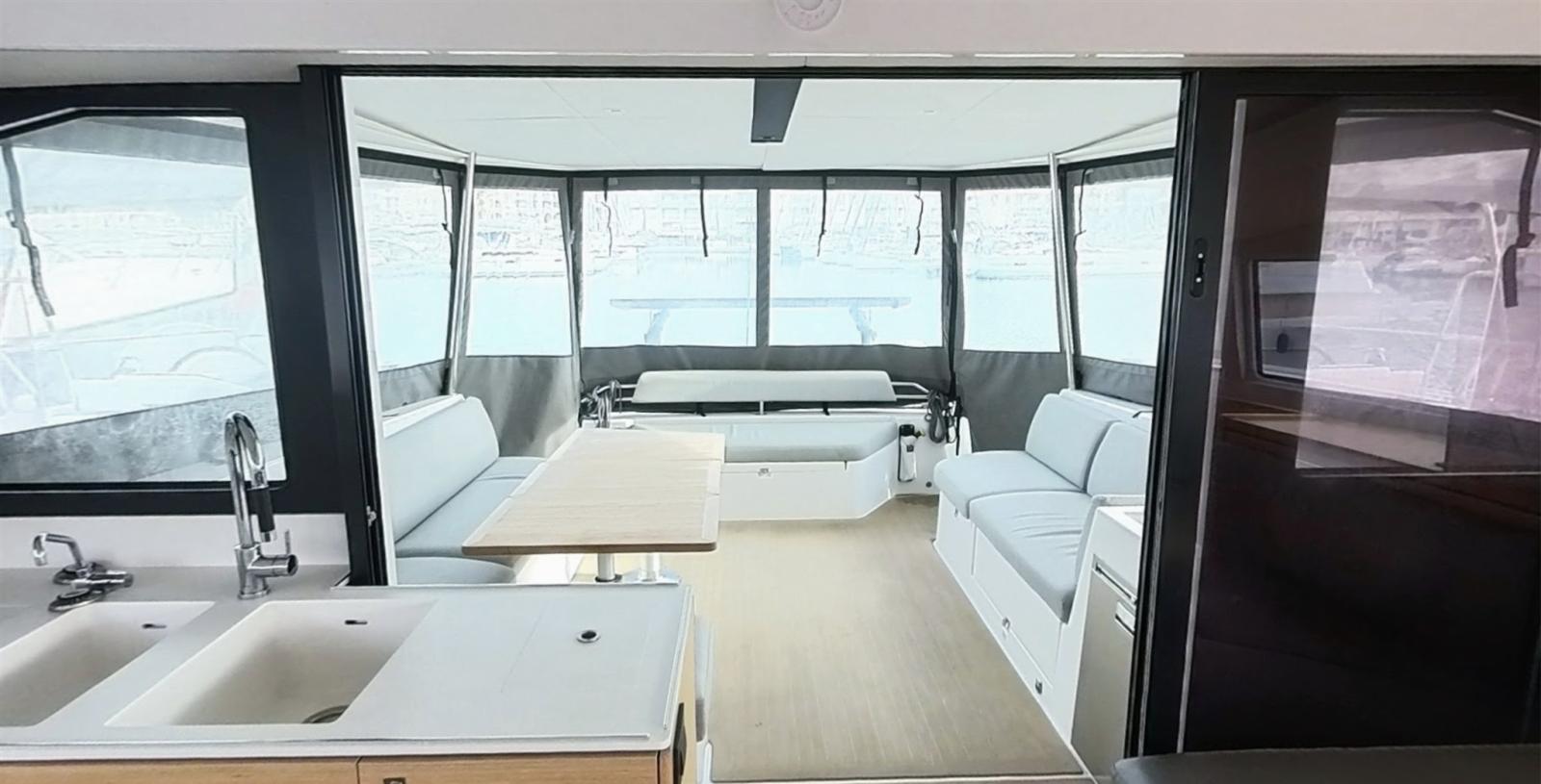 Engine Alarm, Anchor (SPADE 30kg et 70 de chaine de 10 avec pate d'oie), Selftailing winch, Water pressure pump (eau douce et eau de mer), Batteries (630 Amp Lithium), 6 Folding cleats, Draining System (par gravitation), Battery charger (VICTRON 120a), 2 Deck Shower (froide et chaude), Twin Steering, Tender Crane (alu noir), Anchor Chain Washdown (eau douce), Courtesy Lights, 2 Underwater lights (et 2 sous nacelle), Auxiliary Engine (Suzuki 10cv), Solar panels (1760 W), 2 Platform, Automatic Bilge Pump, Manual Bilge Pump, 2 Deck Wash Pump (eau de mer cockpit et pont avant), Teak Cockpit (et jupe (Flexiteek)), Shorepower connector, Electric Windlass (1500W), Strand rigging, 2 swimming ladder, cockpit table (Teck modulable), Living Room Foldable Table (convertible en lit), Tender (Semi Rigide 3D tender hypalon 3.10), 2 Winch Electric, Windex.