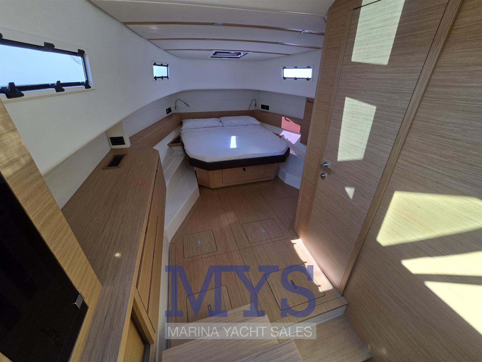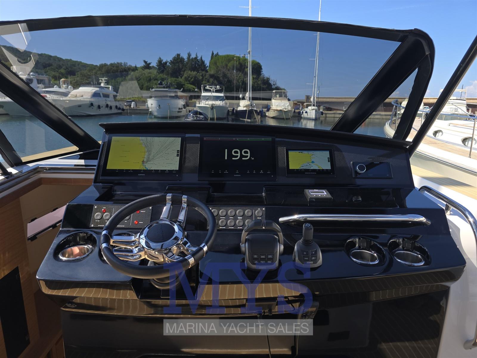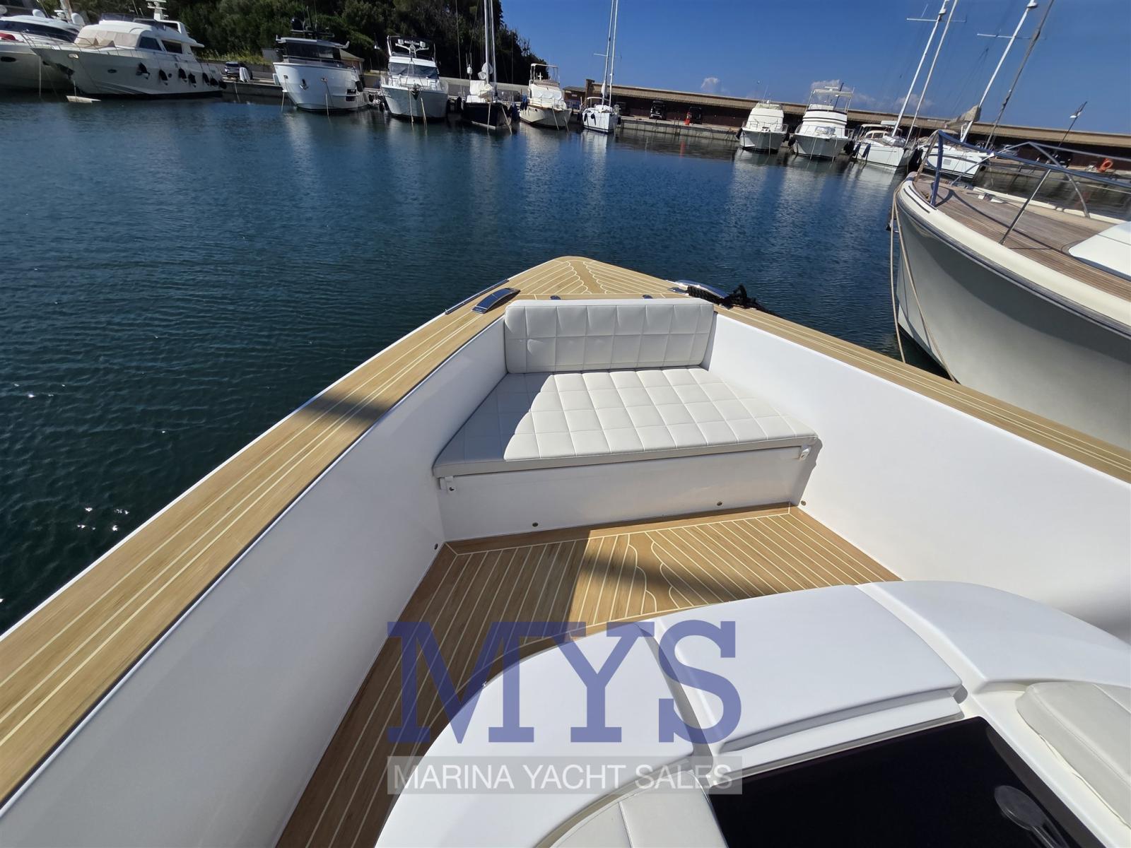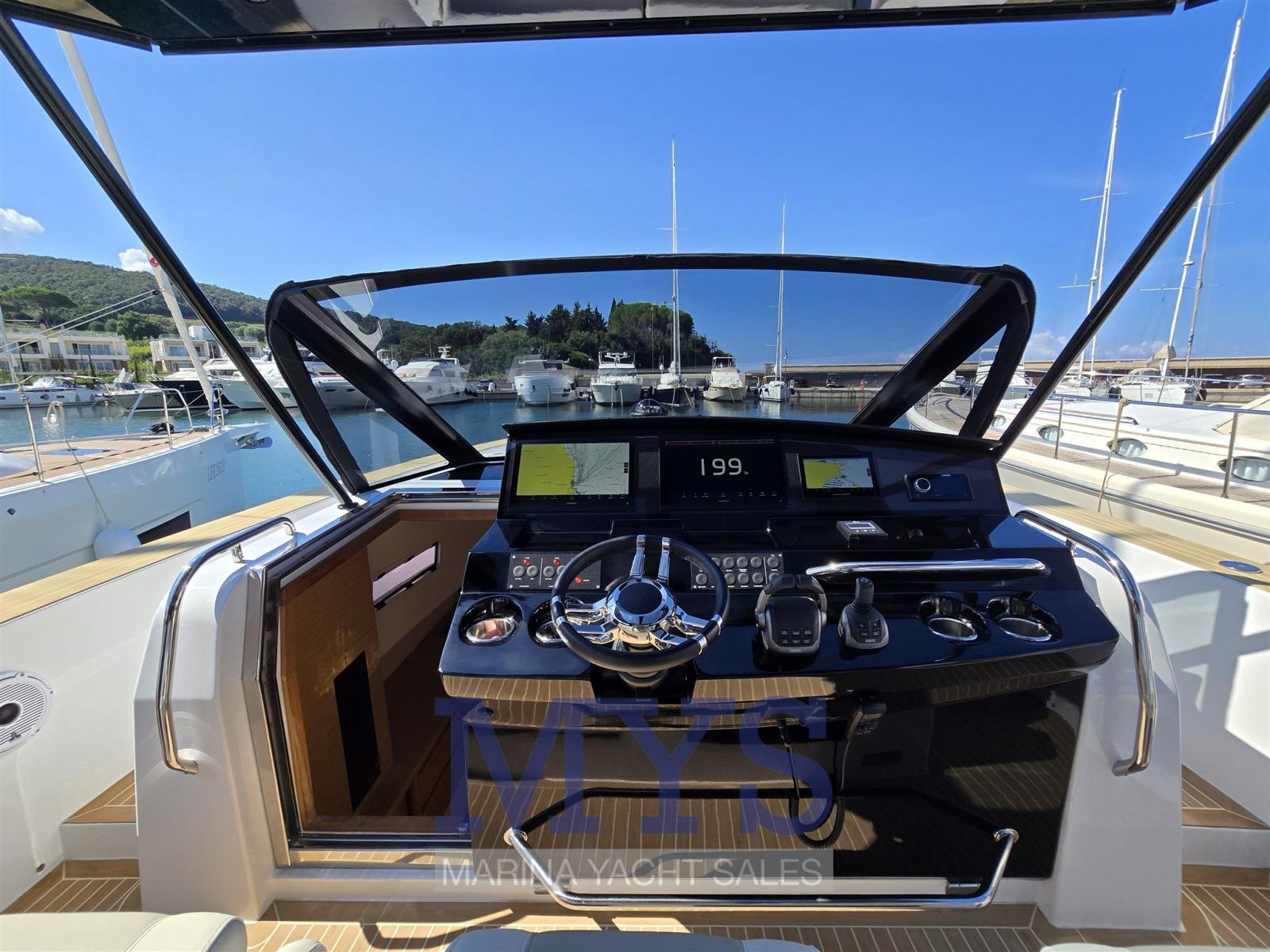 Engine Alarm, Bilge Alarm, Water pressure pump, Teak Side Decks (Teak Sintetico), Deck Shower, Electric Flaps, Hard top, Gangway, Platform (Con sistema idraulico sali/scendi), Automatic Bilge Pump, Entry door, Teak Cockpit (Teak sintetico), Shorepower connector, Electric Windlass, swimming ladder, cockpit table.