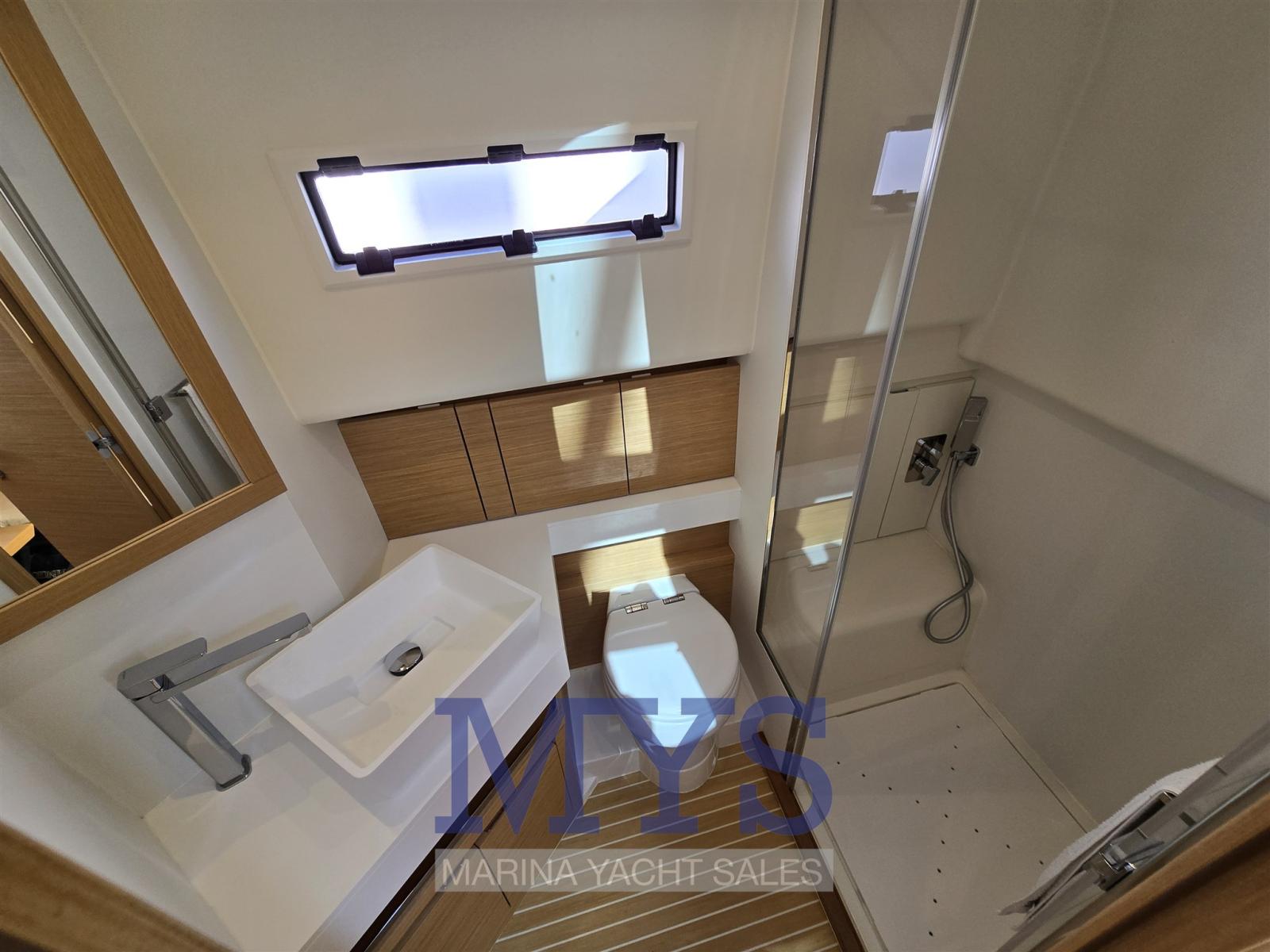 Deck, sidedecks and aft swim platform covered in synthetic teak Scrubbed White