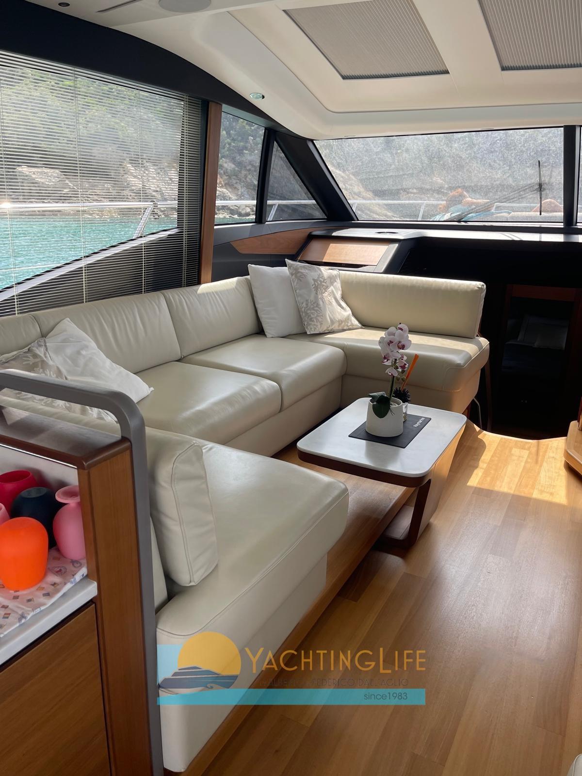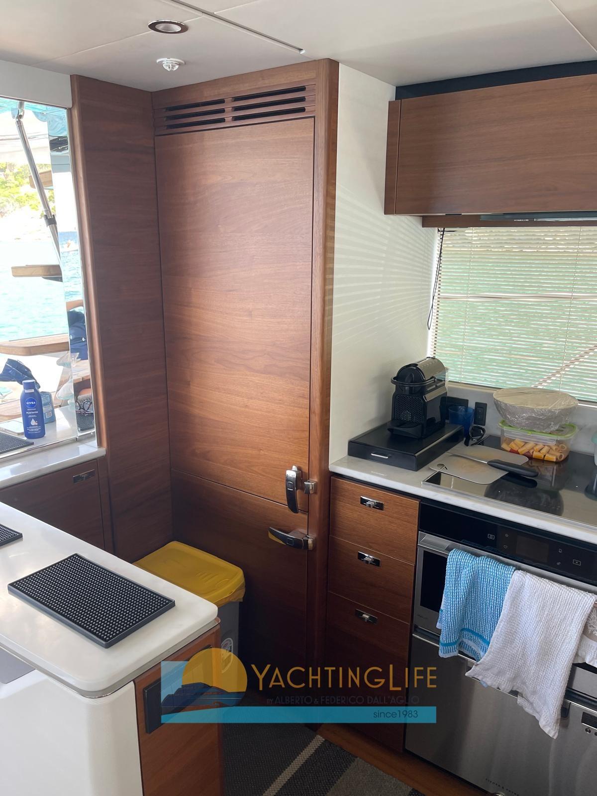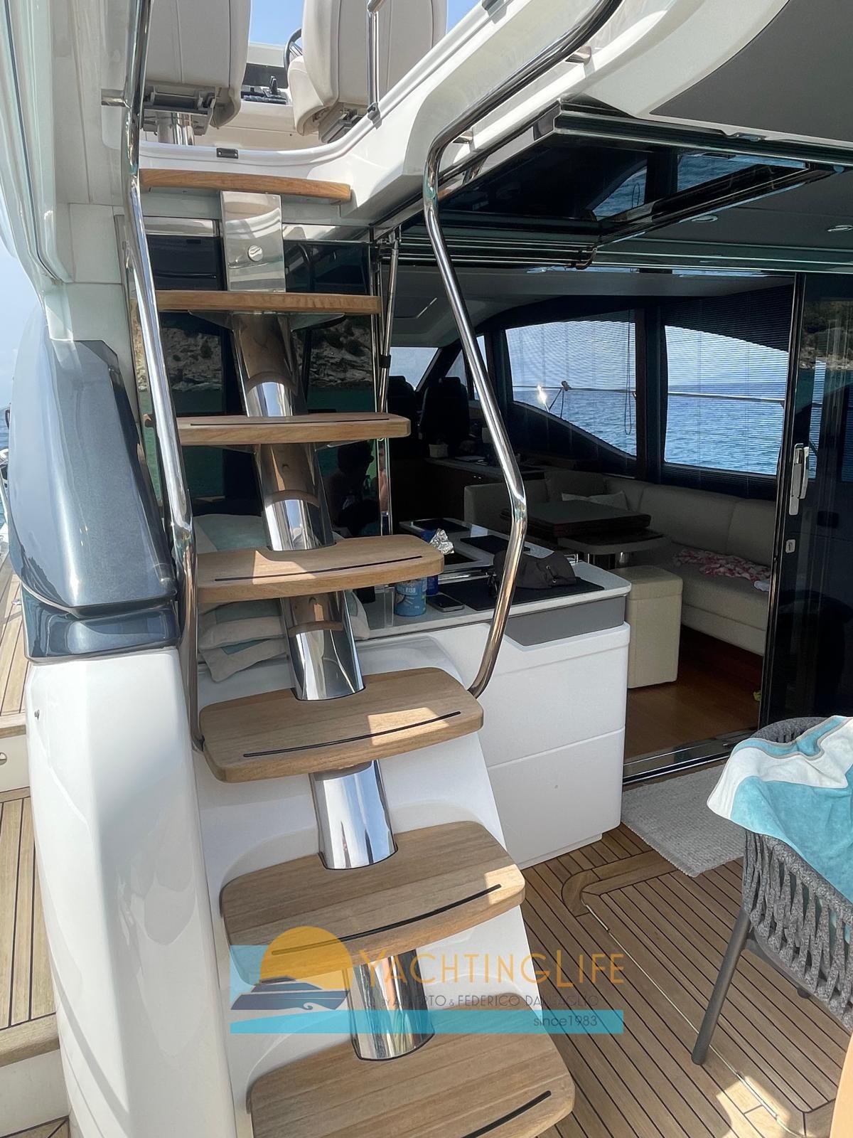 Leasing in progress - Walnut interiors with satin finishes - Upgrade of wooden floor in the saloon and console - Upgrade of the galley top in Carrara white - Upgrade of sofas in the saloon, dinette and owner's cabin in leather - Sportbridge flooring in Teak - Teak coffee table in the bow - Electric awning for the cockpit, gray color - Third control station in the cockpit - Upgrade of the external lighting package with additional lights on the side passages and stern - Cameras in the engine room and in the cockpit - Mosquito nets in all opening portholes - External covers in Grey canvas - Bimini Top in Grey canvas with adjustable light upgrade - Cockpit, sport fly and bow cushions in Comfort Exterior III Vogue