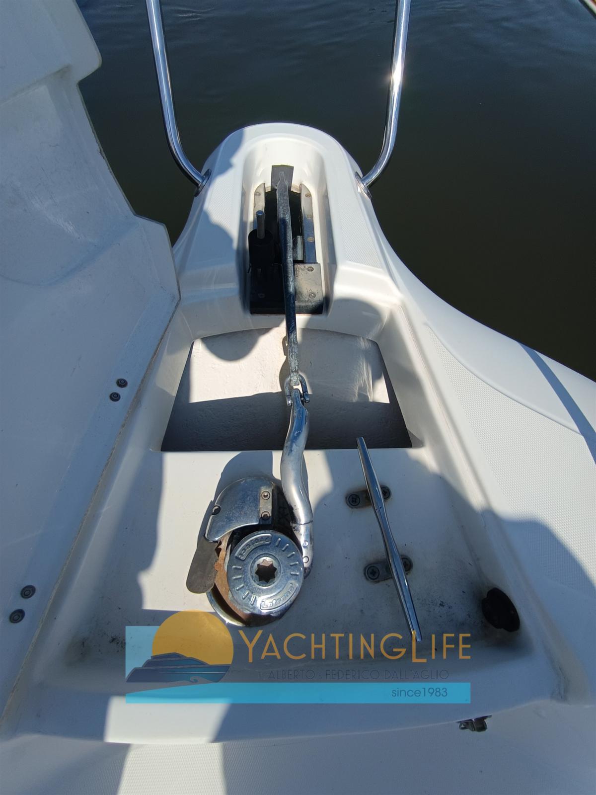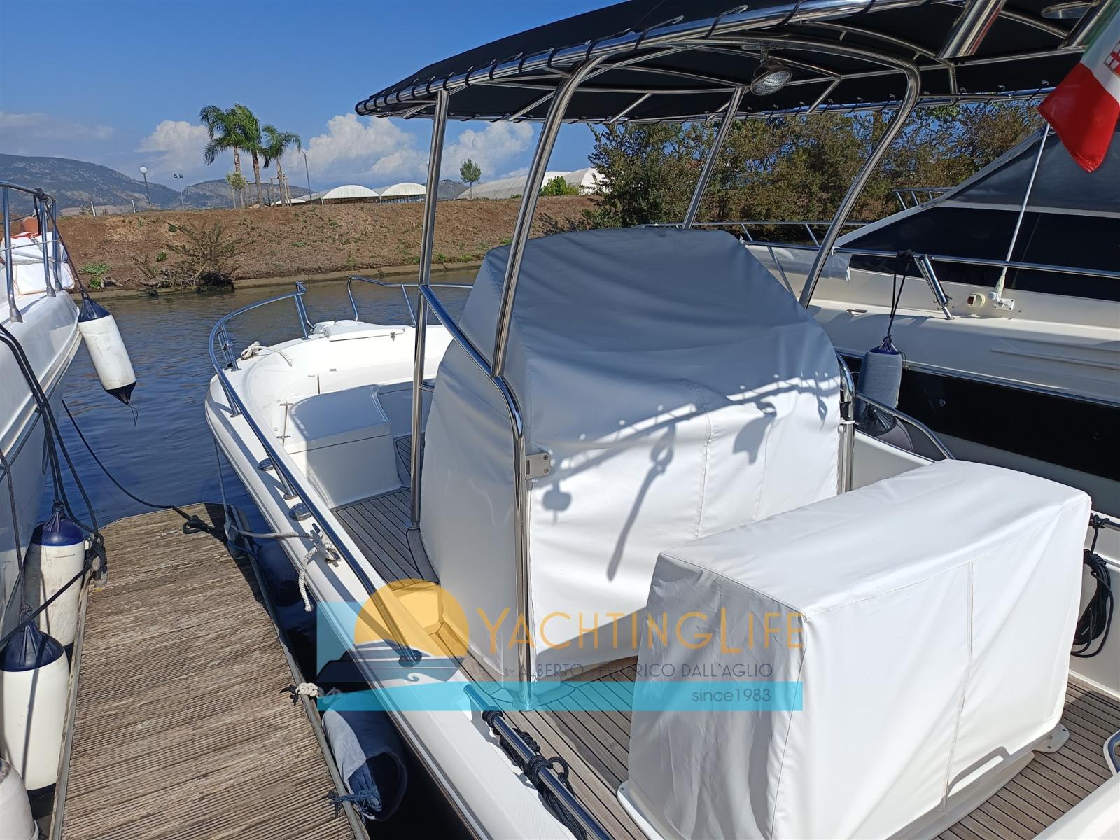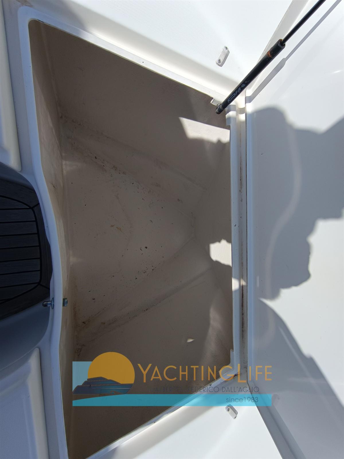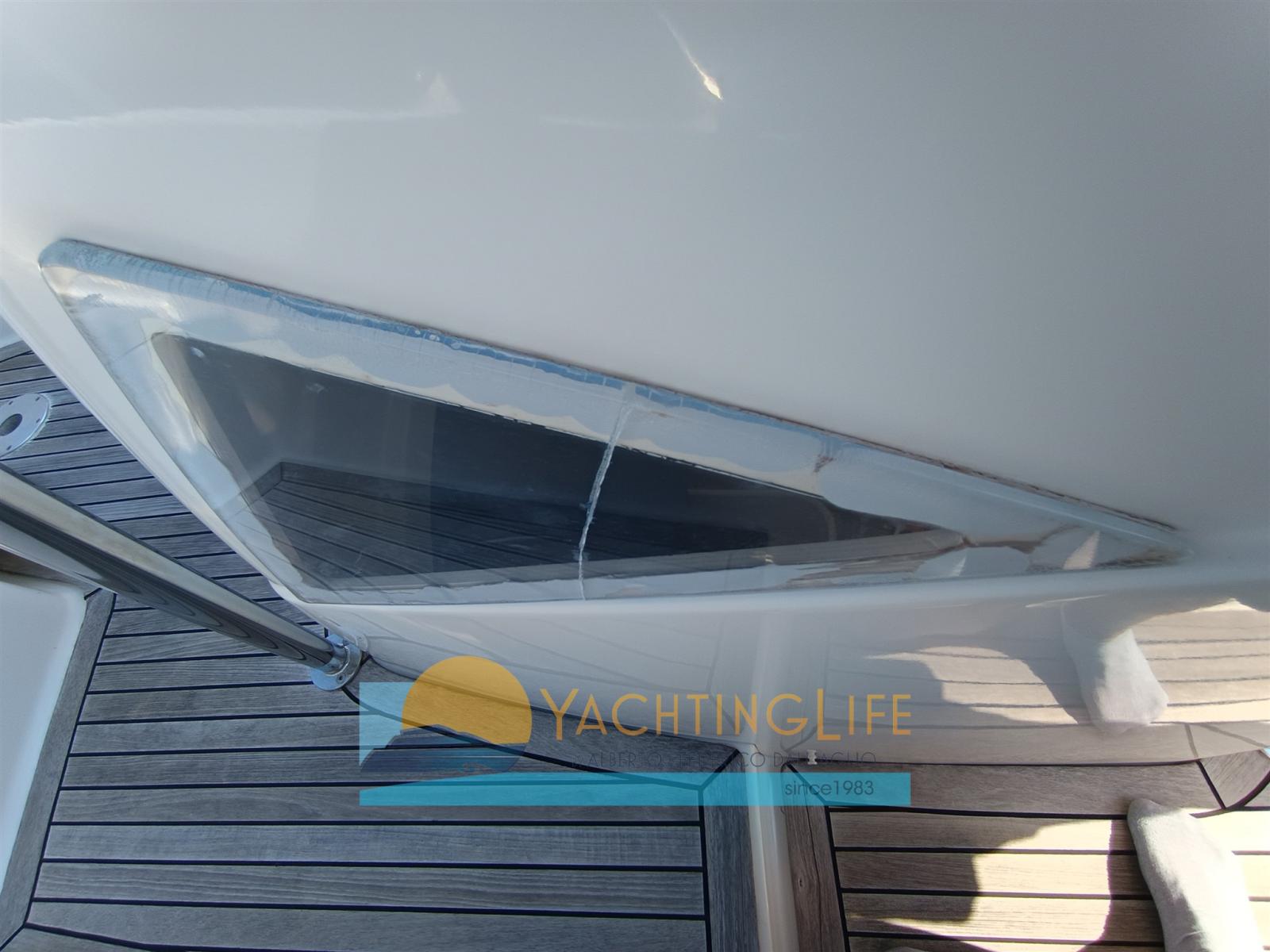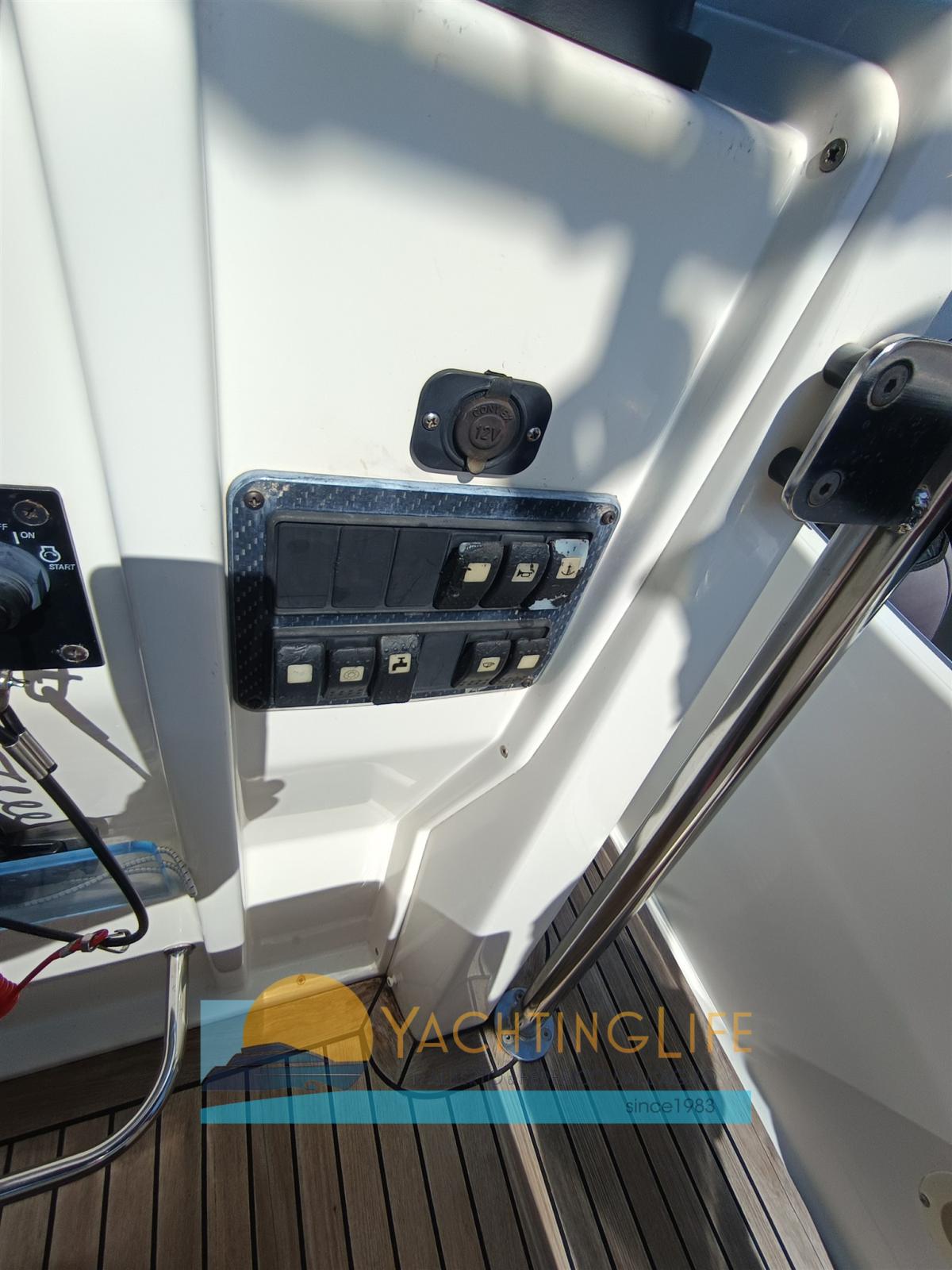 Engine Alarm, Water pressure pump, Batteries (Nuove 2025), Special Colour (Grigio 2025), Deck Shower, Headlights fixed on the stem, Washbasin in the cockpit, Fenders, Automatic Bilge Pump, Entry door, Teak Cockpit, Shorepower connector, Electric Windlass, swimming ladder, Horn, T-Top.