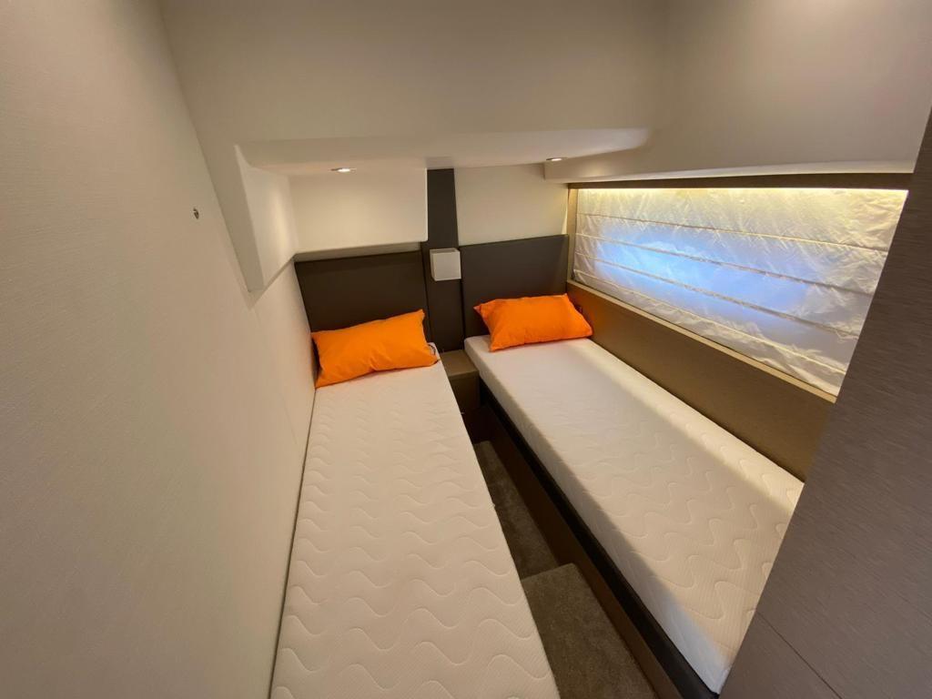 Engine Alarm, Bilge Alarm, Alternator, Water pressure pump, Shore power cable, Deck Shower, Twin Steering, Fenders, Platform (affondabile), Teak Cockpit, Shorepower connector, Water harbor connector system, Electric Windlass, swimming ladder, cockpit table, Stern Winches.