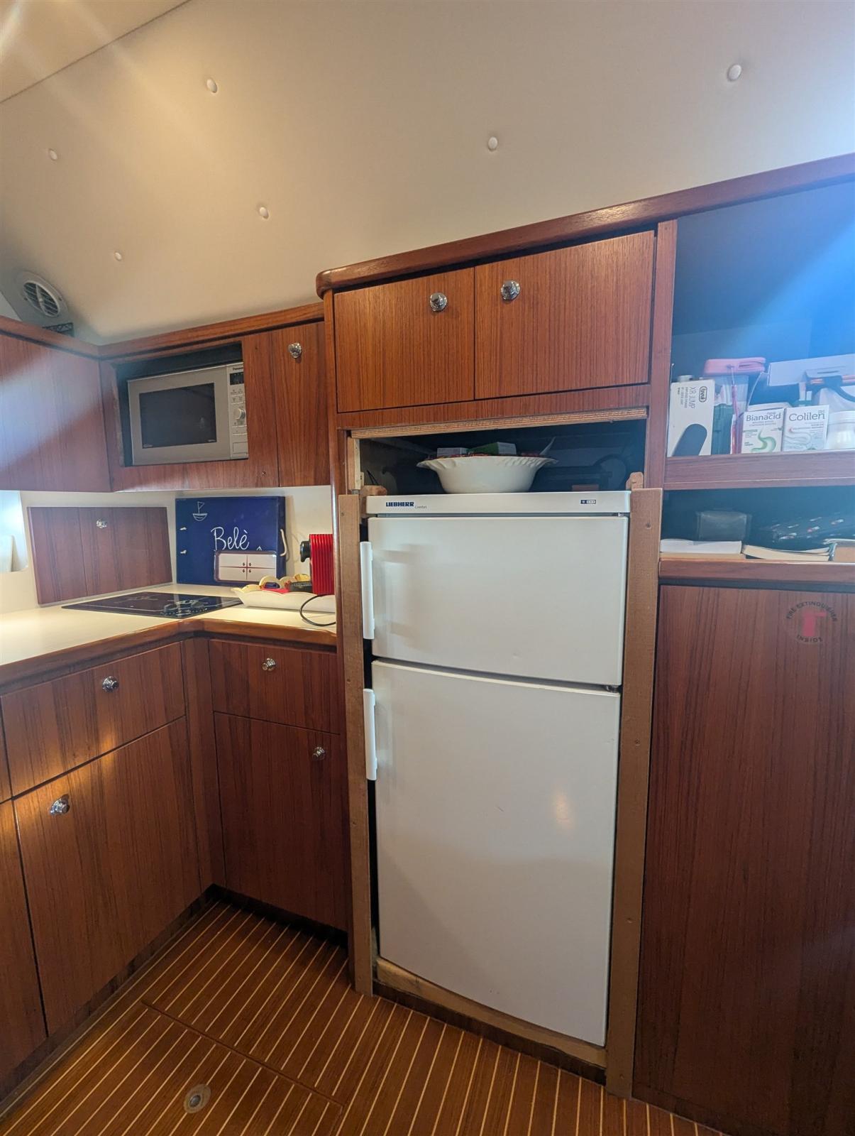 Galley, Deck Refrigerator, Electric hot plate.