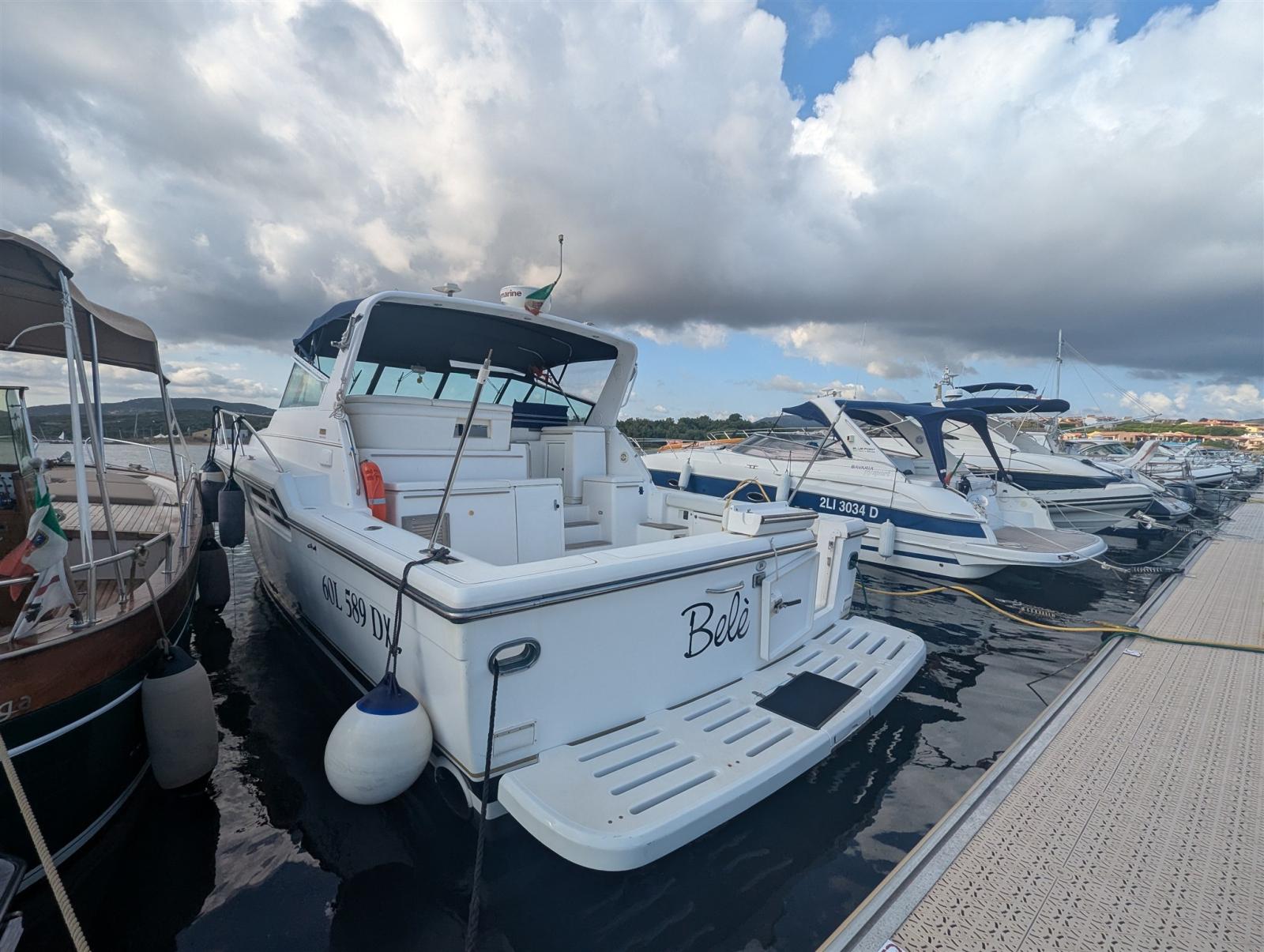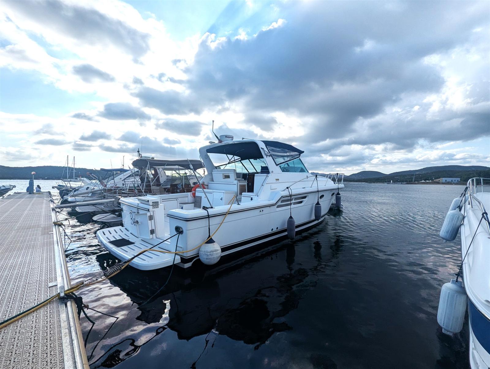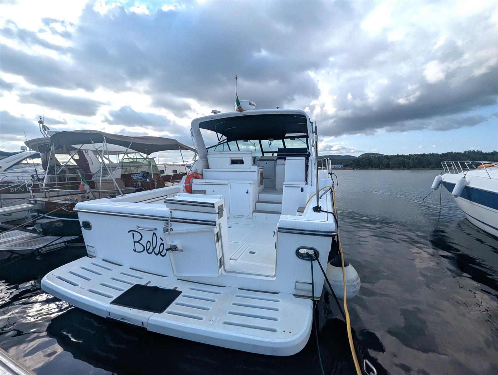 The Tiara 4100 Open produced between the mid/late 90s and early 2000s is a "heavy-duty" open cruiser designed to combine two souls: that of the comfortable cruiser for family cruises and that of the sport fishing boat for deep sea fishing. The line is classically American: solid superstructure, very large cockpit, generous stern platform and a Modified-V hull with 18° deadrise that guarantees seaworthiness and comfort at planing speeds. The interiors are comfortable and spacious with a large dinette, a full galley, a bathroom with separate shower cubicle and, finally, a master cabin comparable to that of larger boats. We can say that BELE' is a boat like no other, aimed at a type of owner looking for high quality boats, with excellent marine performance. Contact us for every detail.