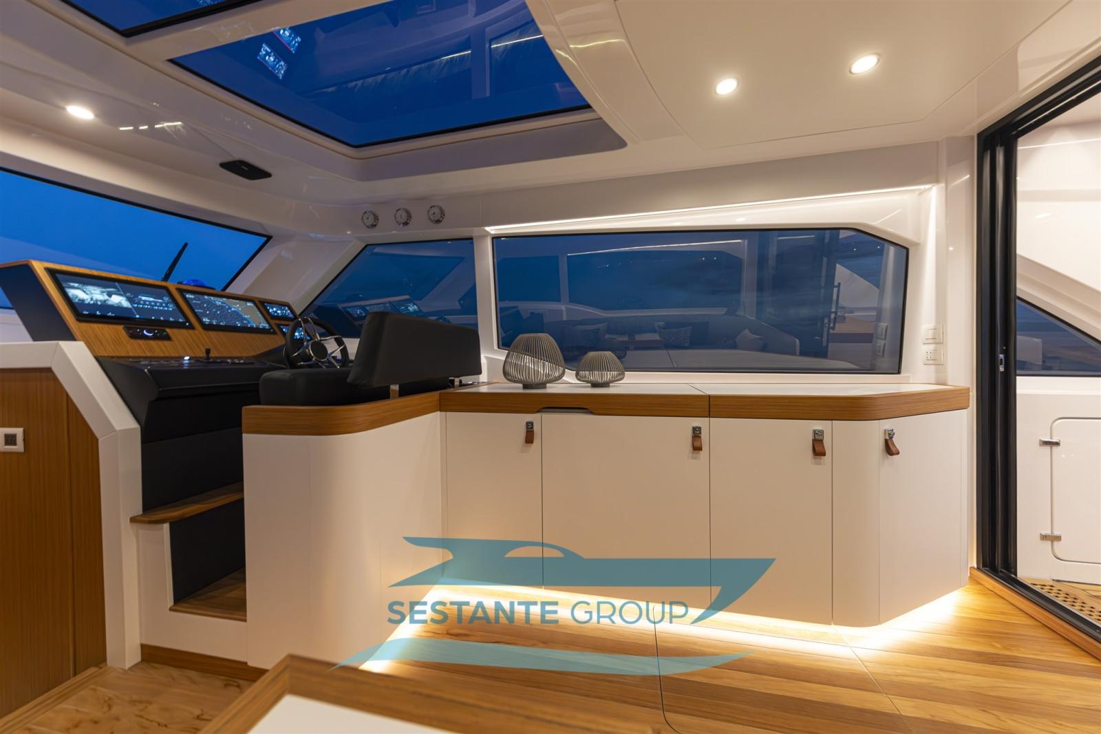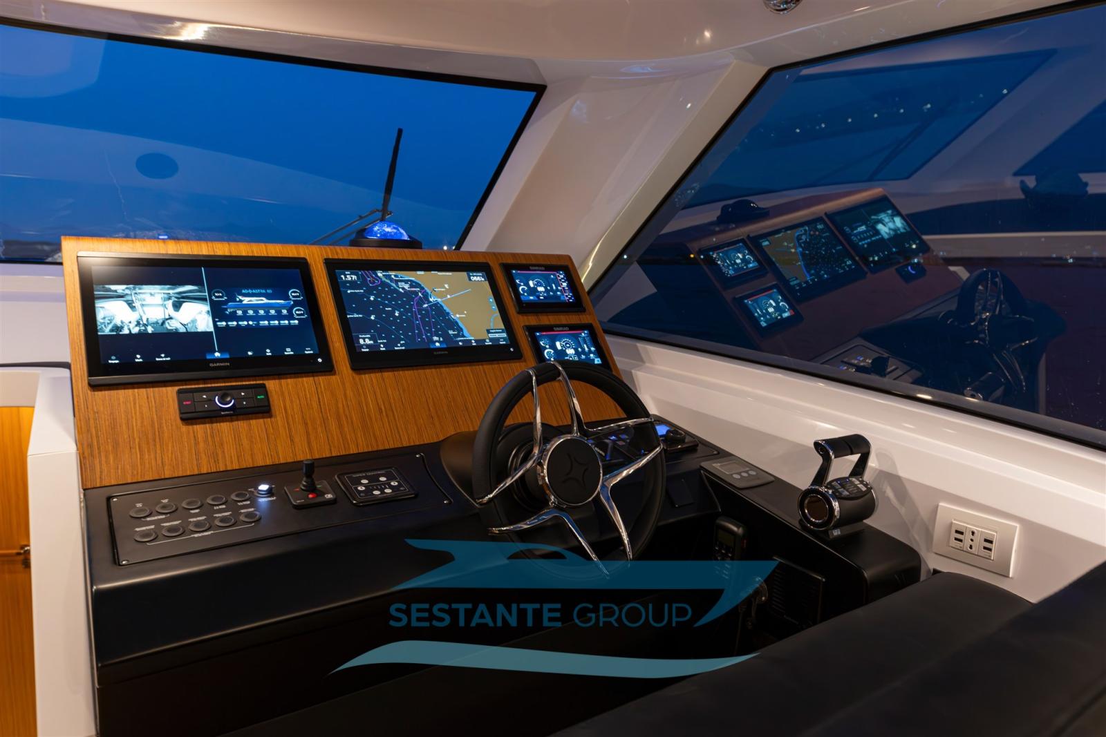 Rudder angle indicator, Radar Antenna (Garmin), 2 Electronic engine control (Marex OS III), 2 On-Board Computer (7" per controllo motori e invertitori), Chain counter, 2 Display (16"GARMIN GPSMAP 8416), Consumption monitor, 2 Plotter with GPS antenna (Garmin multifunzione 16"), Radar (GARMIN Radome 24x GMR Fantom), Co-pilot seat.