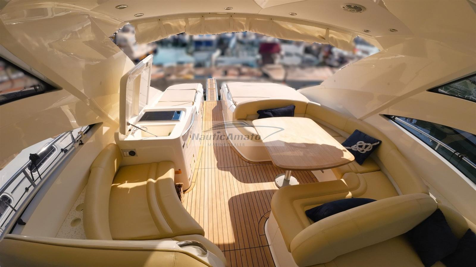 Engine Alarm, Water pressure pump, Deck Shower, Directional Spotlight, Hydraulic Flaps, Tender Garage, Fire Extinguishing System, Flaps Indicators, Washbasin in the cockpit, Courtesy Lights, Gangway (Idraulica a scomparsa), Platform, Automatic Bilge Pump, Manual Bilge Pump, Teak Cockpit, Shorepower connector, Voltage Rectifier, Rollbar, Electric Windlass, swimming ladder, cockpit table, Stern Winches.