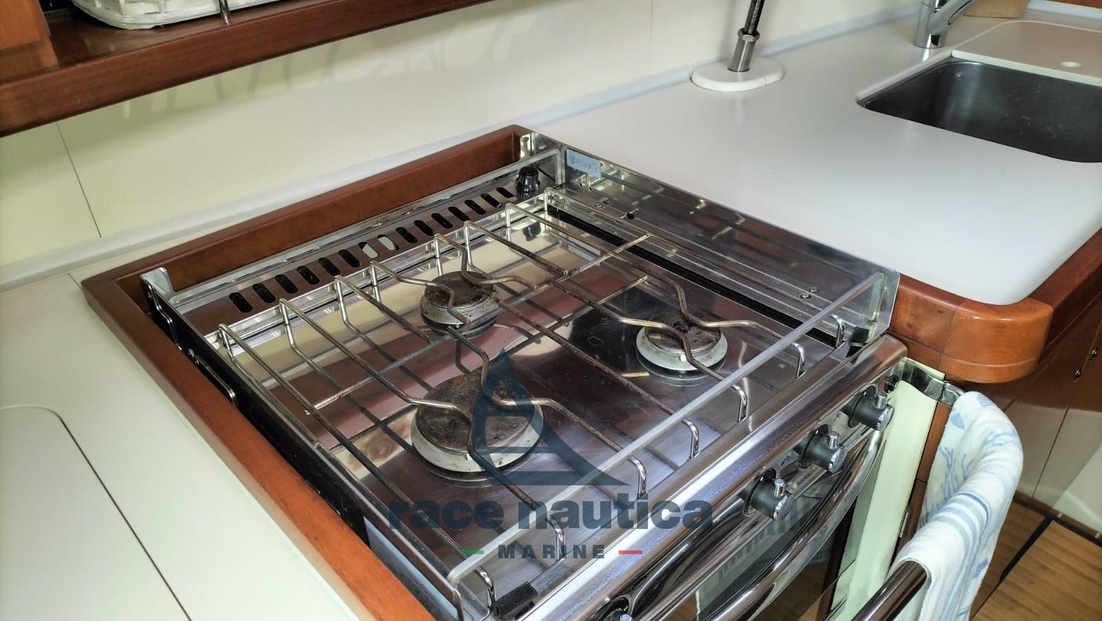 Works performed: Sails (2021), Osmosis preventive treatment (2021), Seacocks (2021), Lazy Bag (2021), Bow mattress (2021), Wheelhouse wheel covers (2021), Engine overhaul with riser replacement (2022), Sofa upholstery in dinette (2022), Sail-Drive headset replacement (2022), Raft (within 12 miles) (2024), Battery kit (2024), HIFI audio system with Hertz amplifier (2024), Fires and rockets (2025), Rocna 25KG (2025), Cuscineria Pozzetto (2025), Rina (2025).