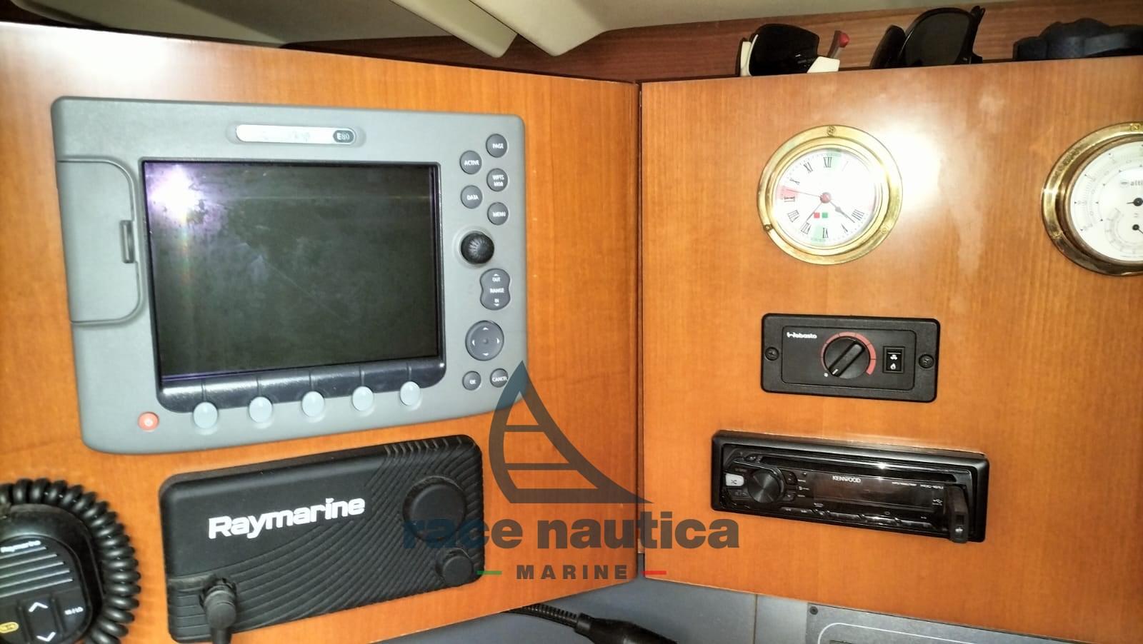 AIS, Chain counter, chronometer, DSC vhf (Raymarine (2018) al tavolo di carteggio), 2 GPS (Cartografico Raymarine E80 - 1 al tavolo di carteggio ed 1 in pozzetto), Autopilot (Raymarine ST 6000), Radar (Raymarine).