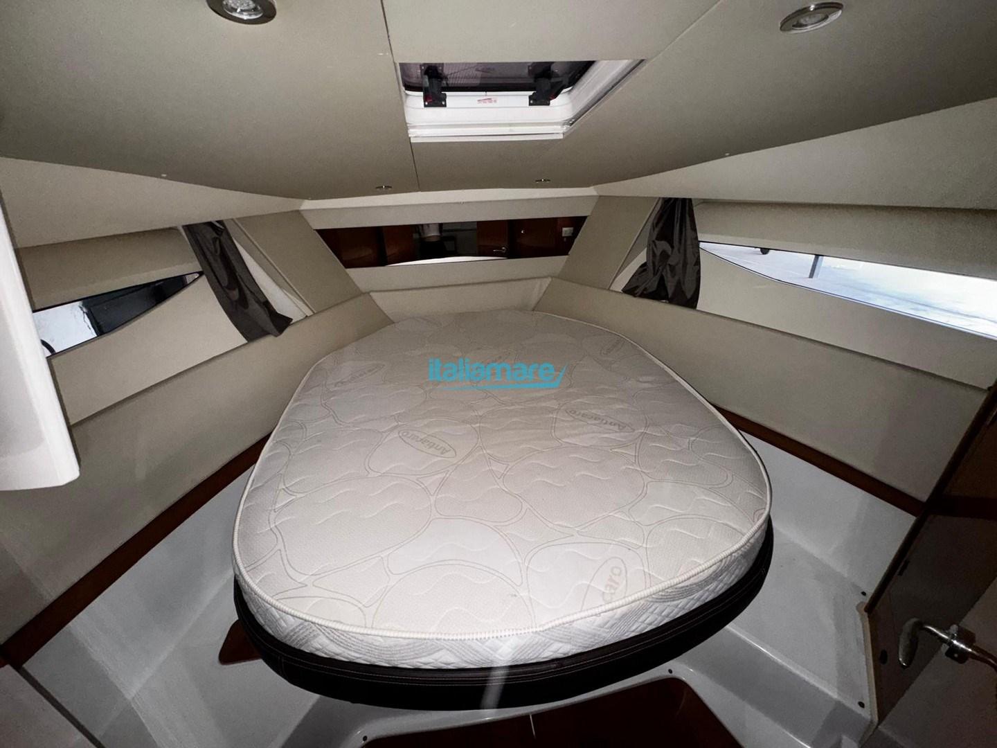 It stands out for its ample interior brightness, achieved thanks to large windows on the hull and a hatch sliding towards the saloon, which guarantee a panoramic marine view and plenty of natural light.