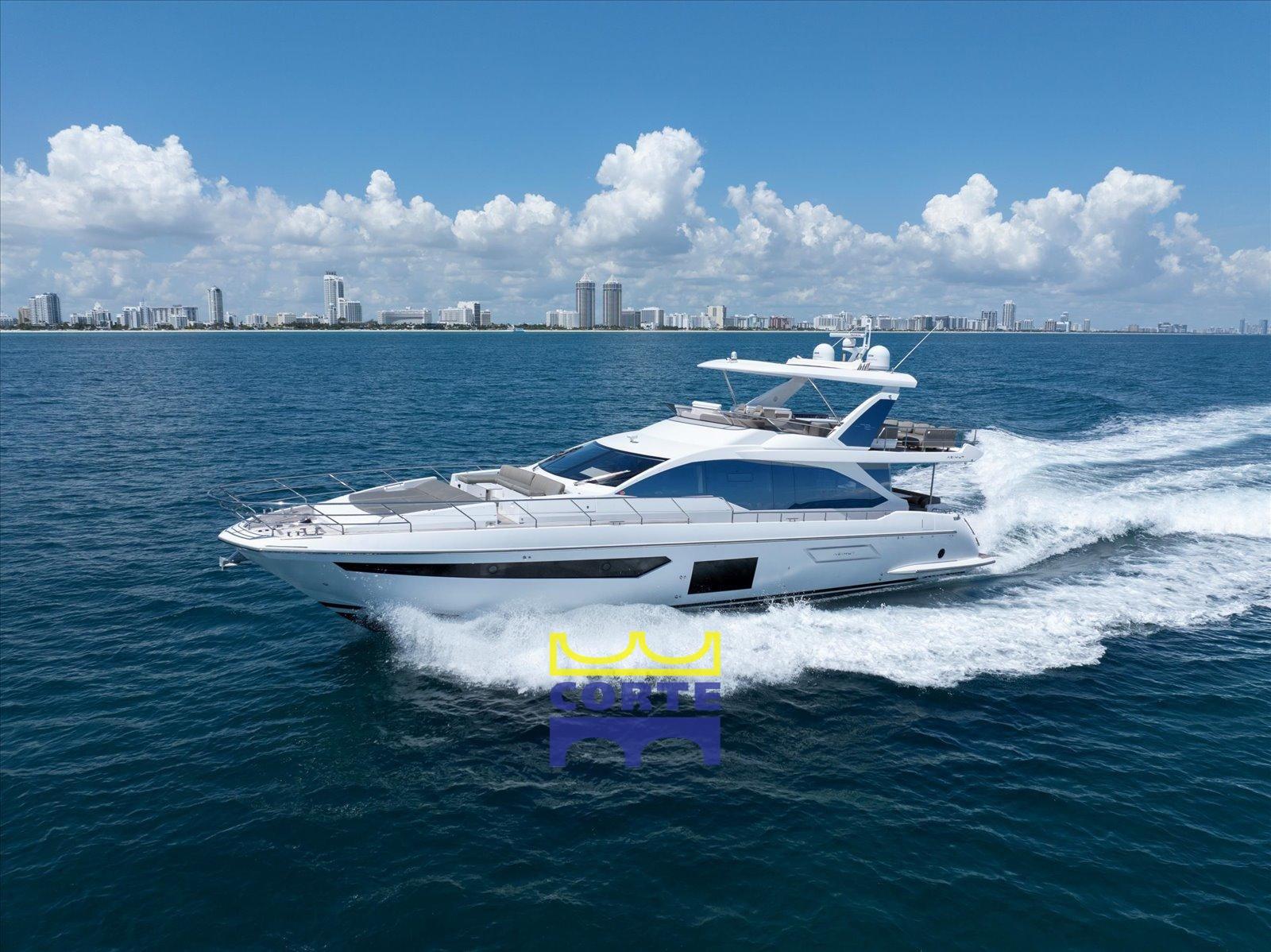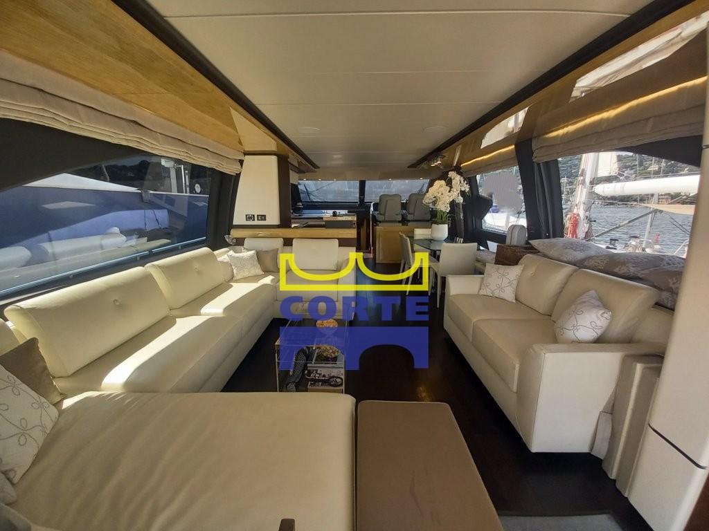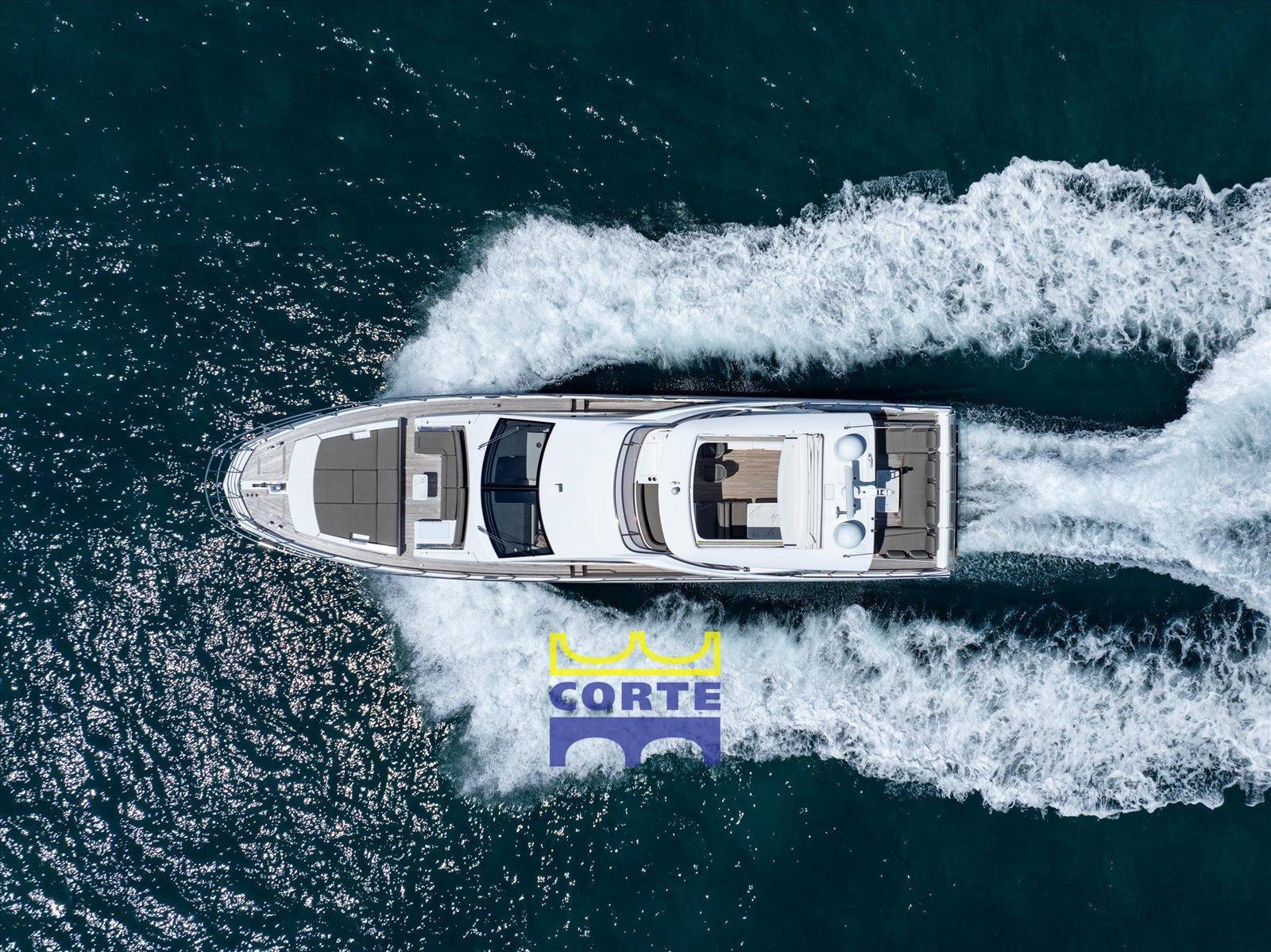 Fume/Gas Detector, Engine Alarm, Bilge Alarm, 2 Auto Dynamic Trim Interceptor (Humphree), Water pressure pump, Teak Side Decks, Deck Shower, Twin Steering, Directional Spotlight, Hard top, Fire Extinguishing System, Courtesy Lights, Gangway (elettroidraulica a scomparsa), Platform (di poppa tender lift), Automatic Bilge Pump, Teak deck, Entry door, Side door, Teak Cockpit, Shorepower connector, Water harbor connector system, Electric Windlass, swimming ladder, Stabilizers (Seakeeper), cockpit table, Tender, Horn, T-Top, 2 Stern Winches, Bow Winches.