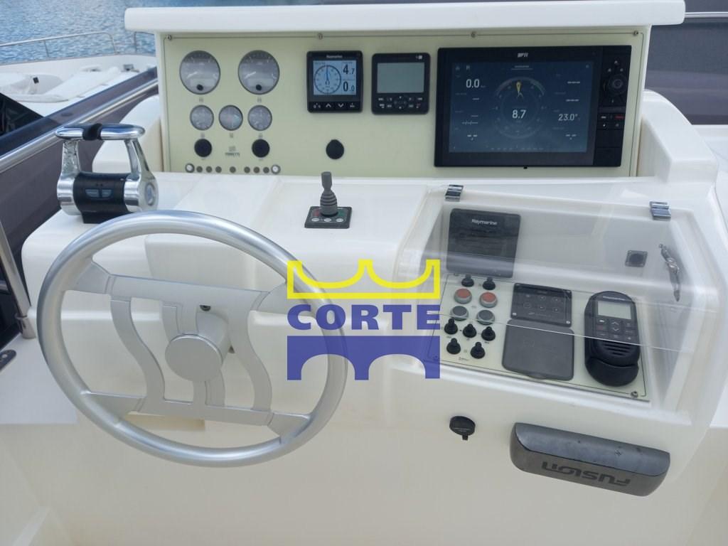 Engine Alarm, Bilge Alarm, Water pressure pump, Batteries (2024 - 2025), Teak Side Decks, Deck Shower, Twin Steering, Directional Spotlight, Hydraulic Flaps, Tender Garage (jet ski), Davits for tender on fly, Fire Extinguishing System, Flaps Indicators, Anchor Chain Washdown, Washbasin in the cockpit, Courtesy Lights, Underwater lights, Gangway (elettro idraulica), Platform (di poppa in teak), Automatic Bilge Pump, Manual Bilge Pump, Entry door, Side door, Teak Cockpit, Shorepower connector, Water harbor connector system, Electronic instrumentation repeater, Rollbar, 2 Electric Windlass, swimming ladder (a scomparsa), Stabilizers (Antirolling mitsubishi Gyro), cockpit table, Horn, 2 Stern Winches, 2 Bow Winches.