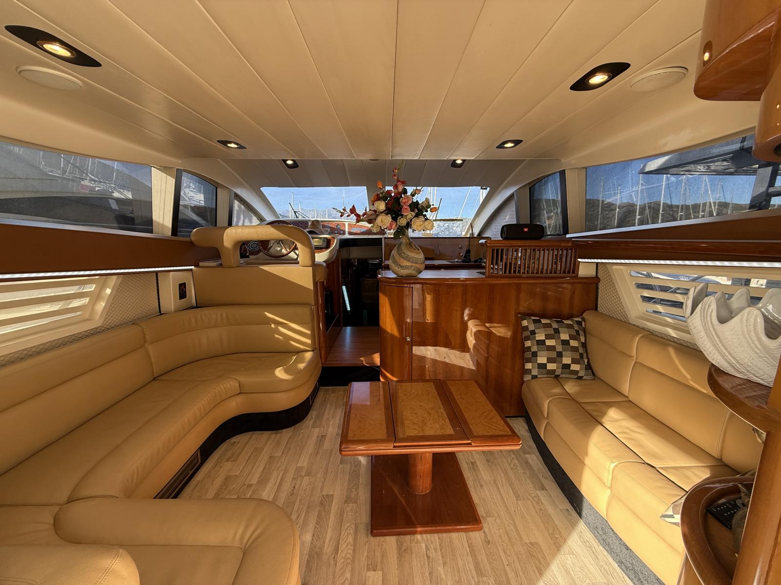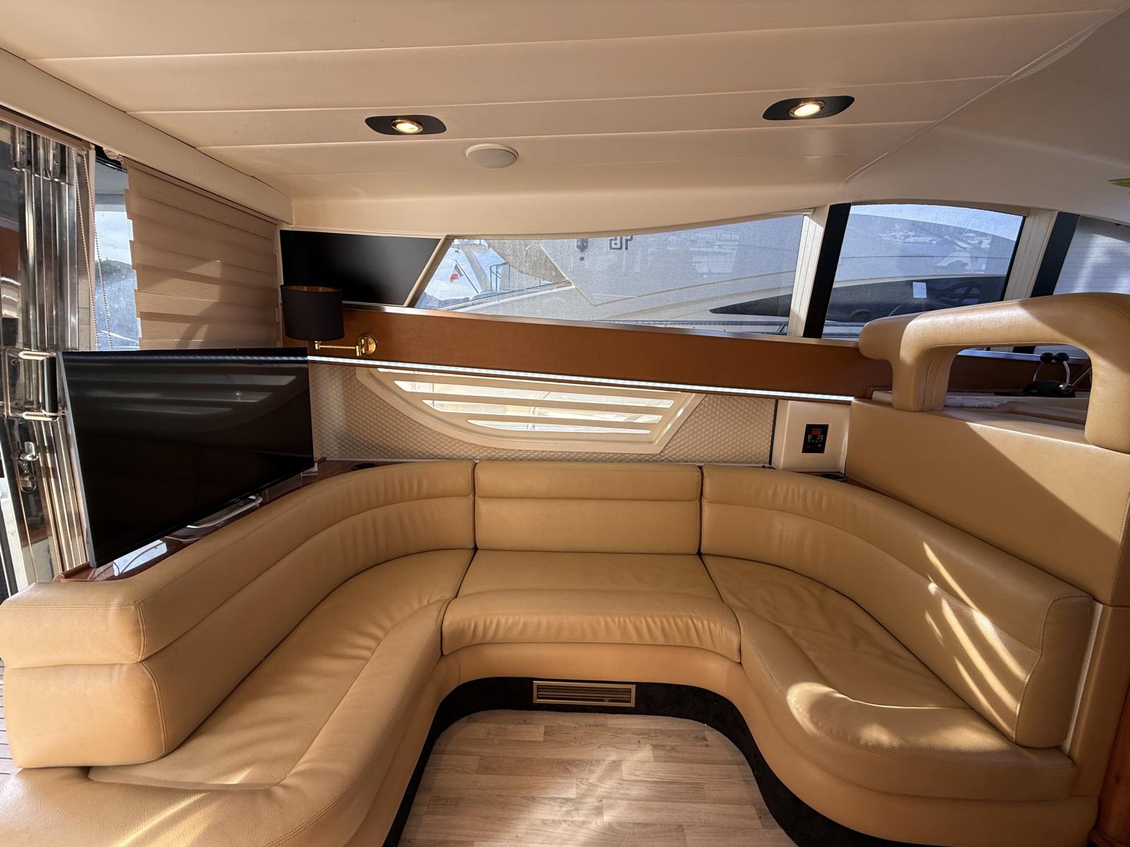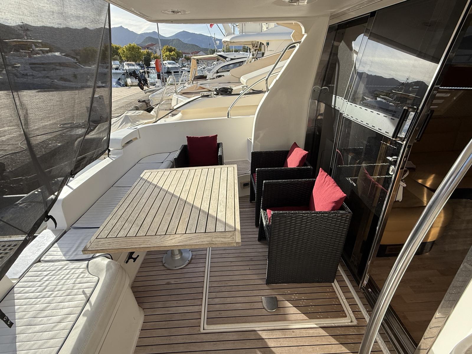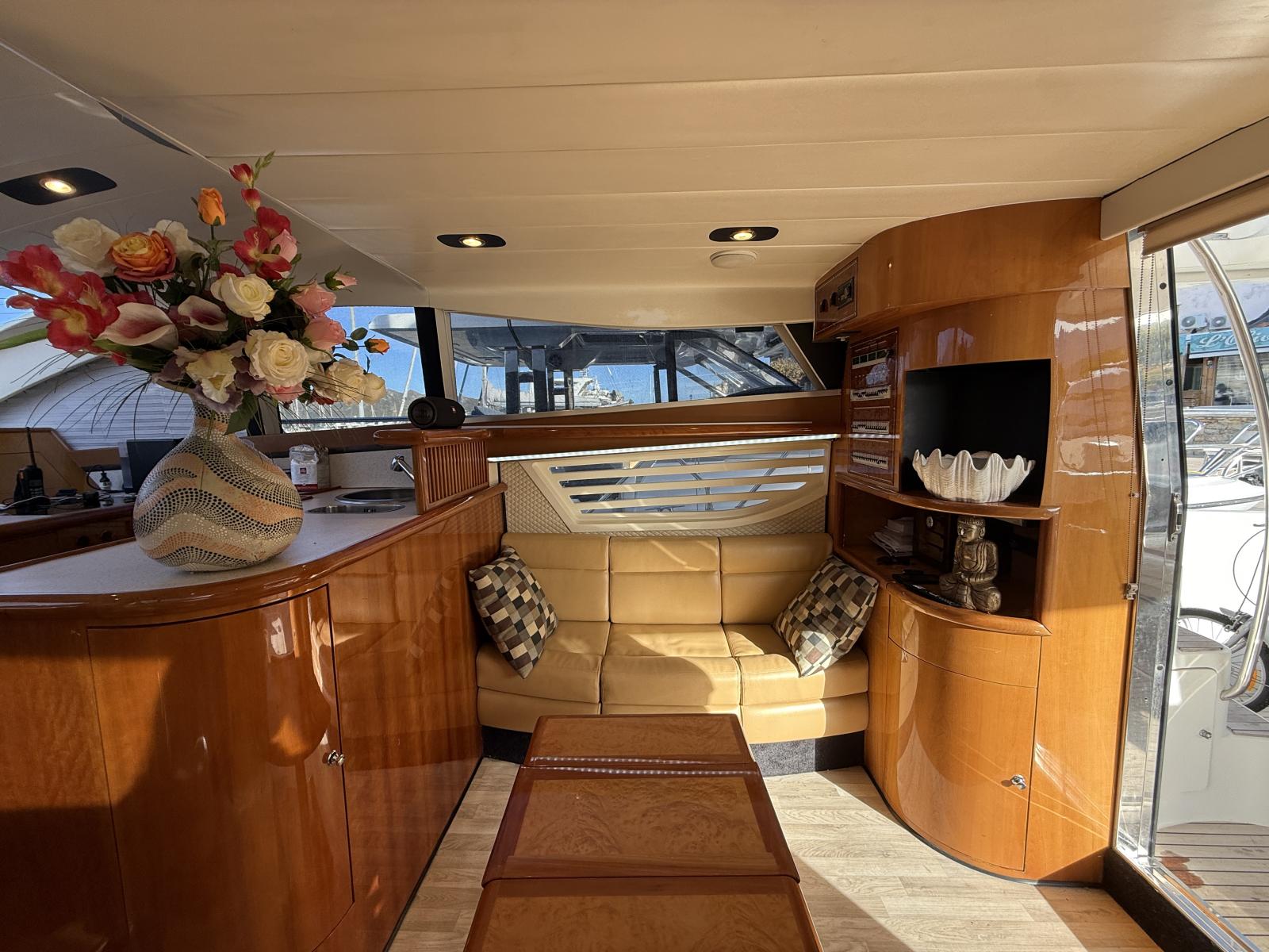 Outside, you'll find a large cockpit, a forward sundeck with a bimini, and a pleasant flybridge covered with a hard top at the front and a bimini at the rear.