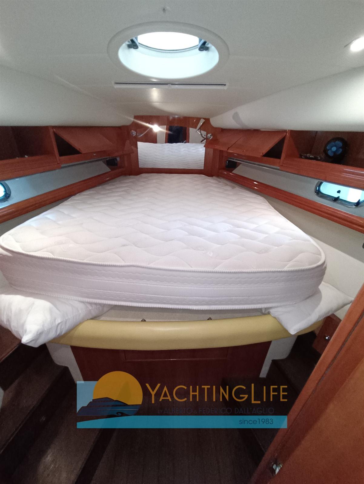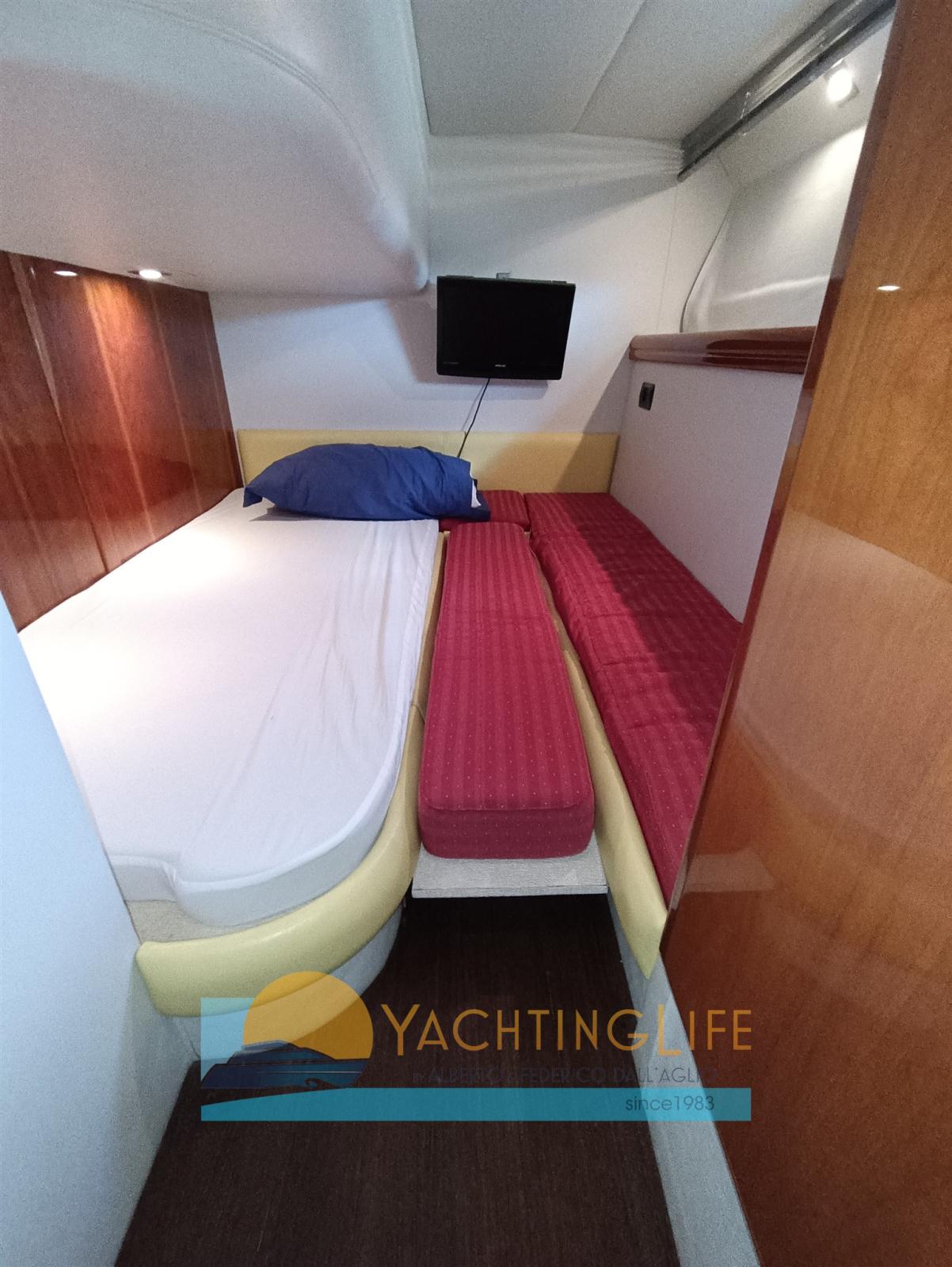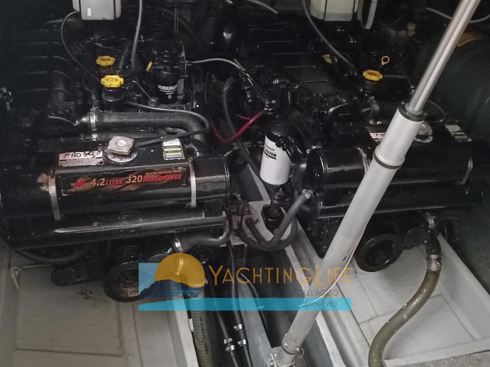Engine Alarm, Electric Engine Compartment Opening, Water pressure pump, Deck Shower, Directional Spotlight, Hydraulic Flaps, Hard top, Flaps Indicators, Courtesy Lights, Underwater lights, Gangway (a scomparsa), Platform, Manual Bilge Pump, Teak Cockpit, Shorepower connector, Electric Windlass, swimming ladder, cockpit table, Horn.